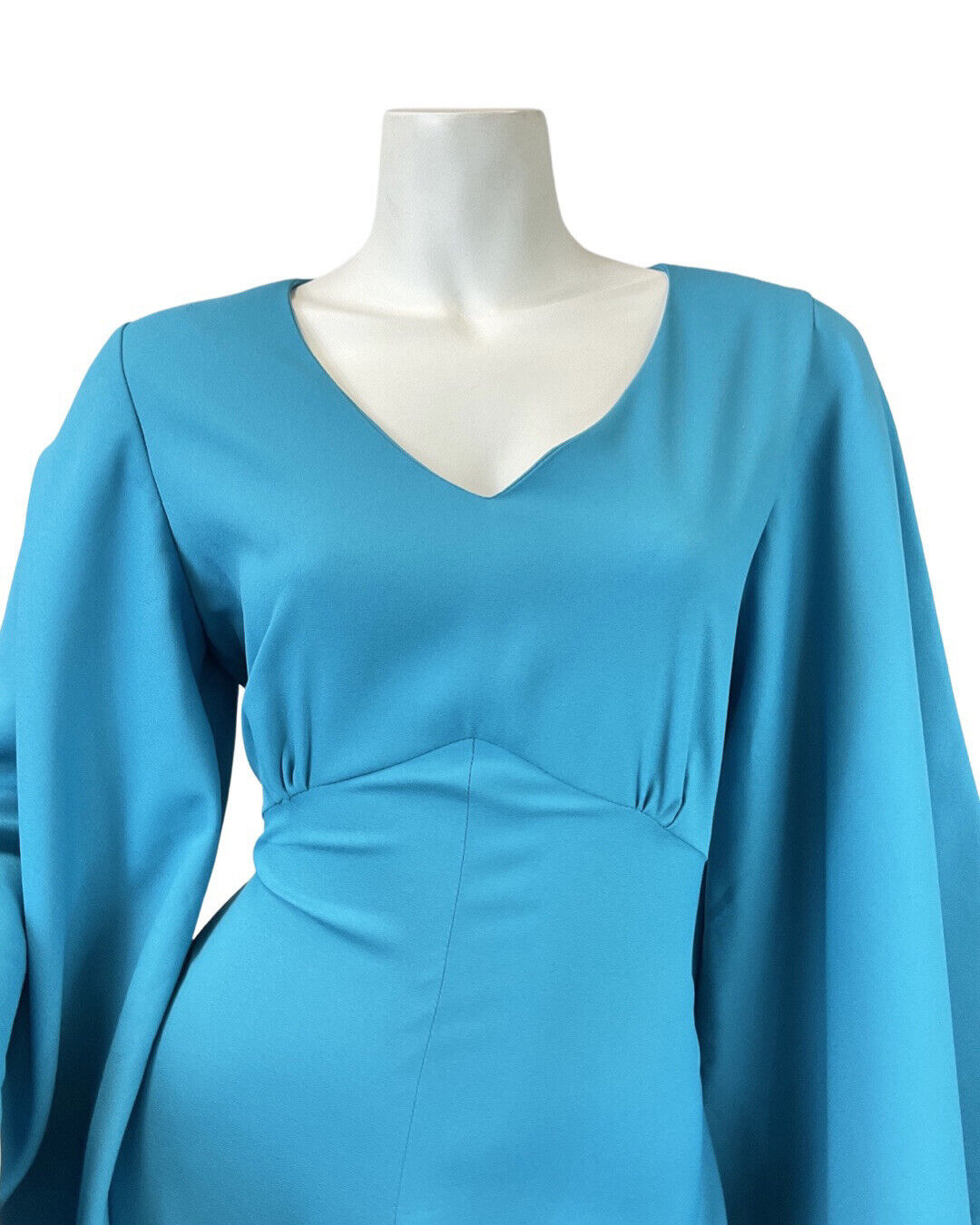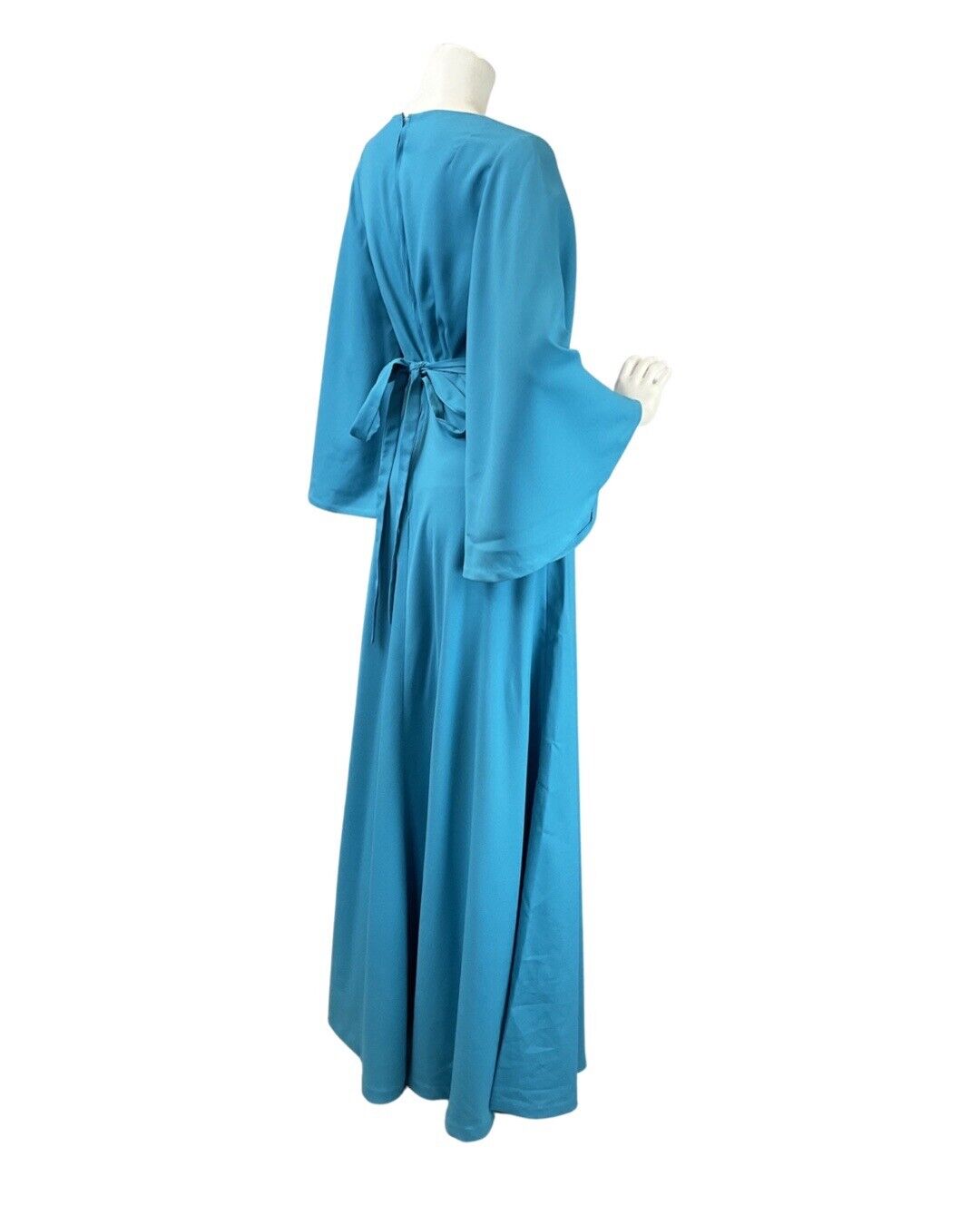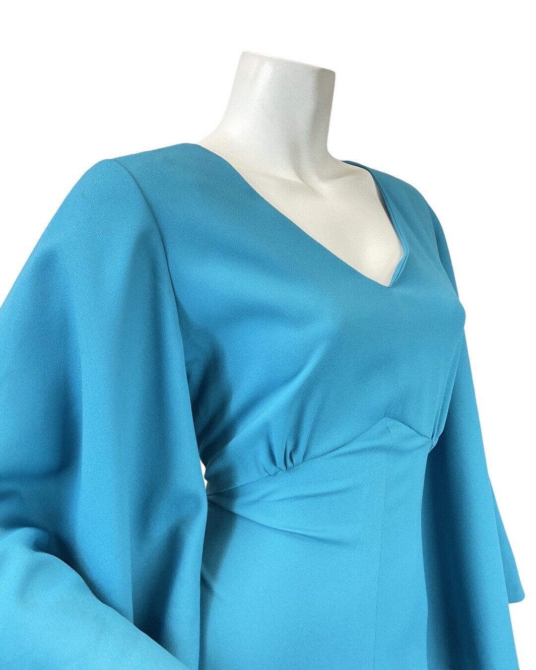 VINTAGE 60s 70s BRIGHT BLUE FLARED SLEEVE ELEGANT GOWN MAXI DRESS 8 10