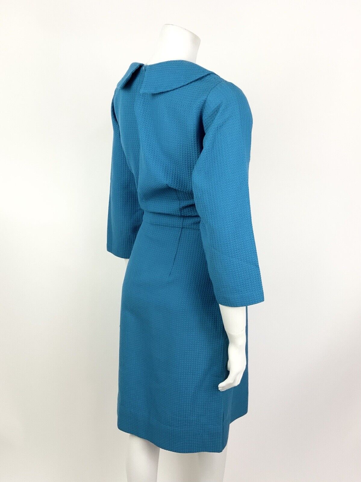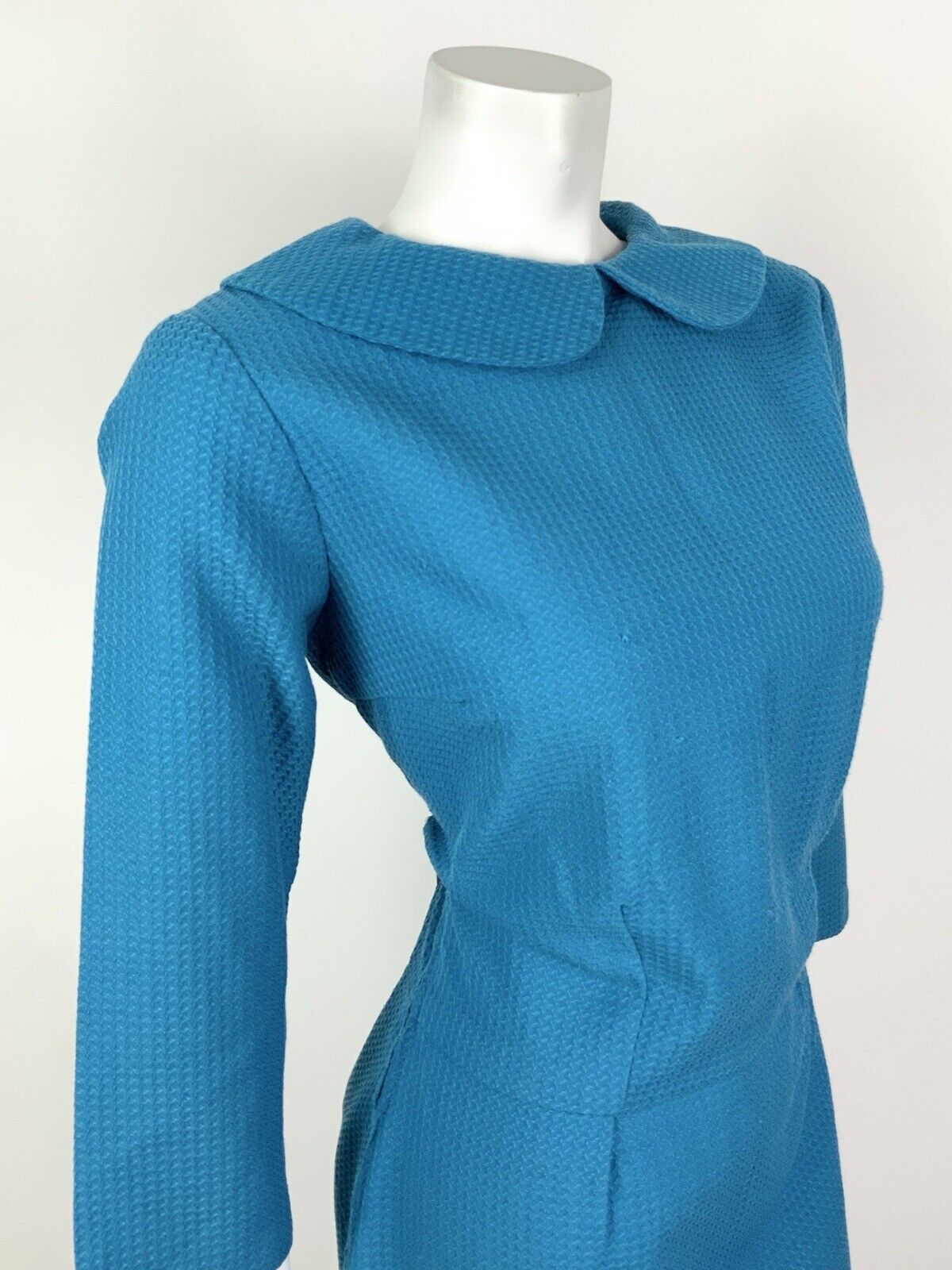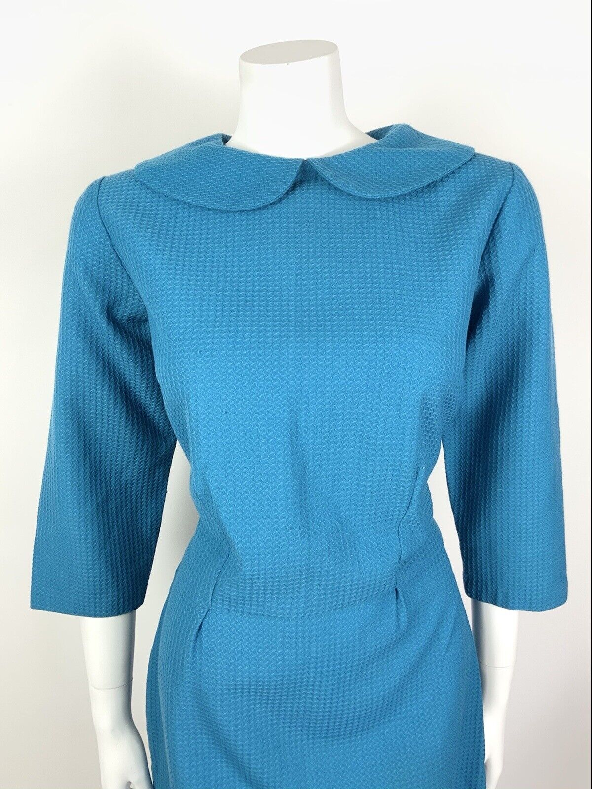 VINTAGE 60s 70s BRIGHT BLUE PETER PAN COLLAR WAFFLE MOD DRESS 12