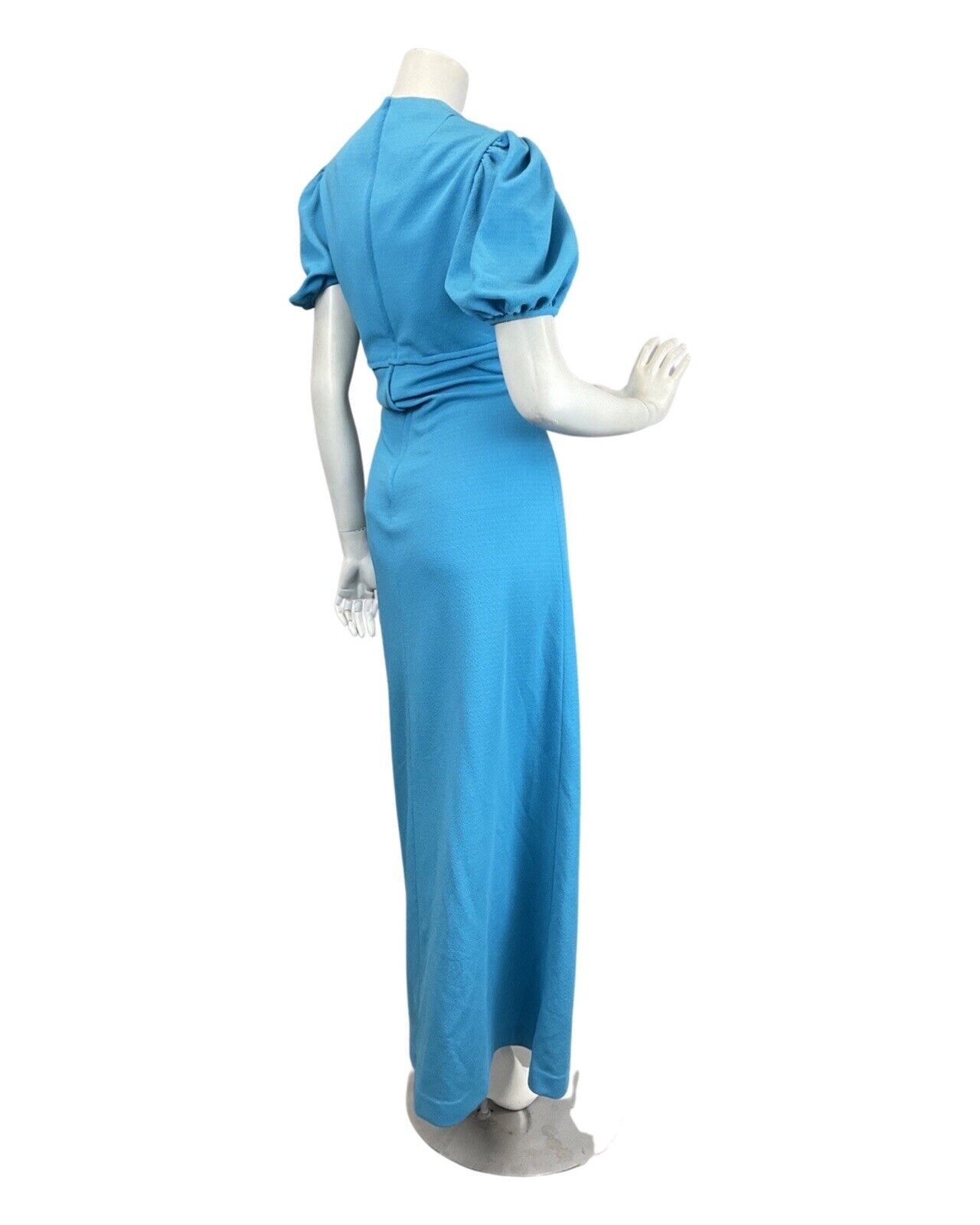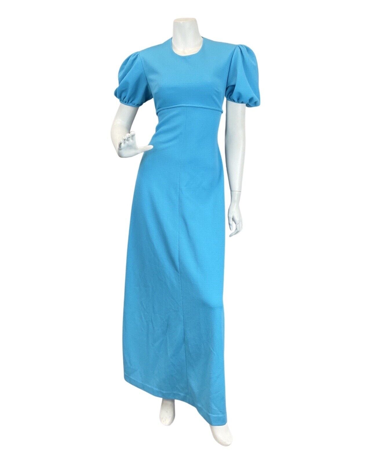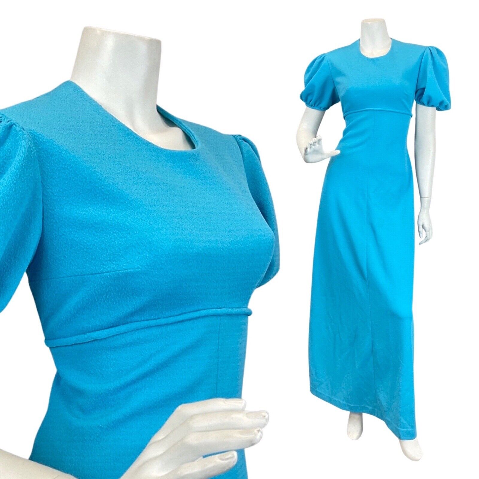 VINTAGE 60s 70s BRIGHT BLUE PUFF SLEEVE MOD MAXI DRESS 10 12
