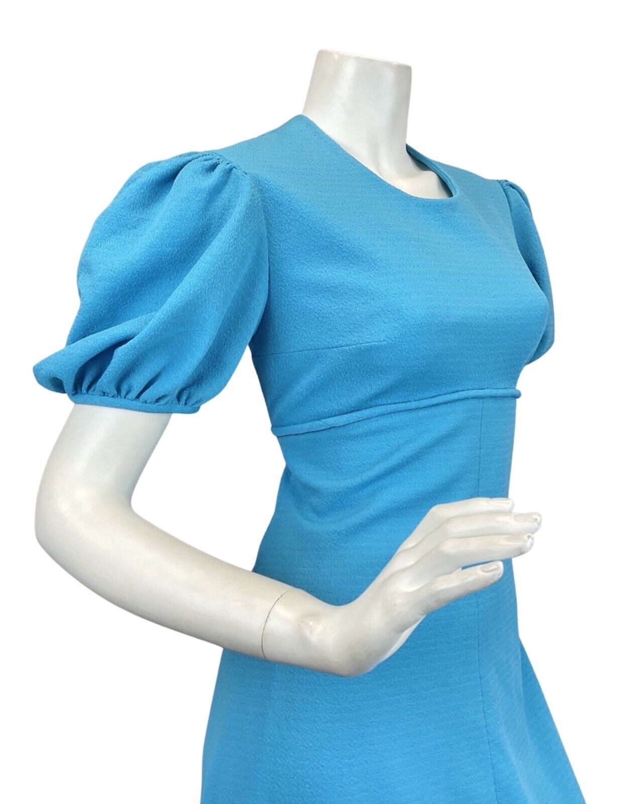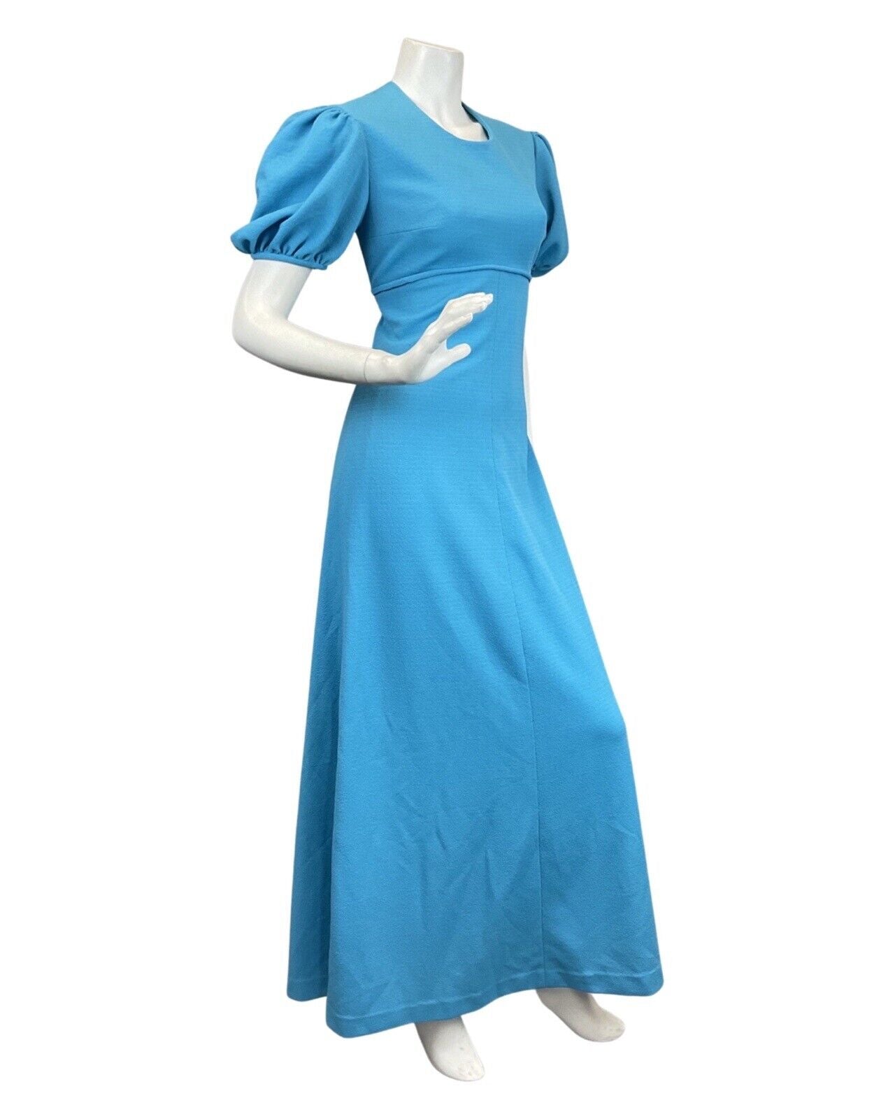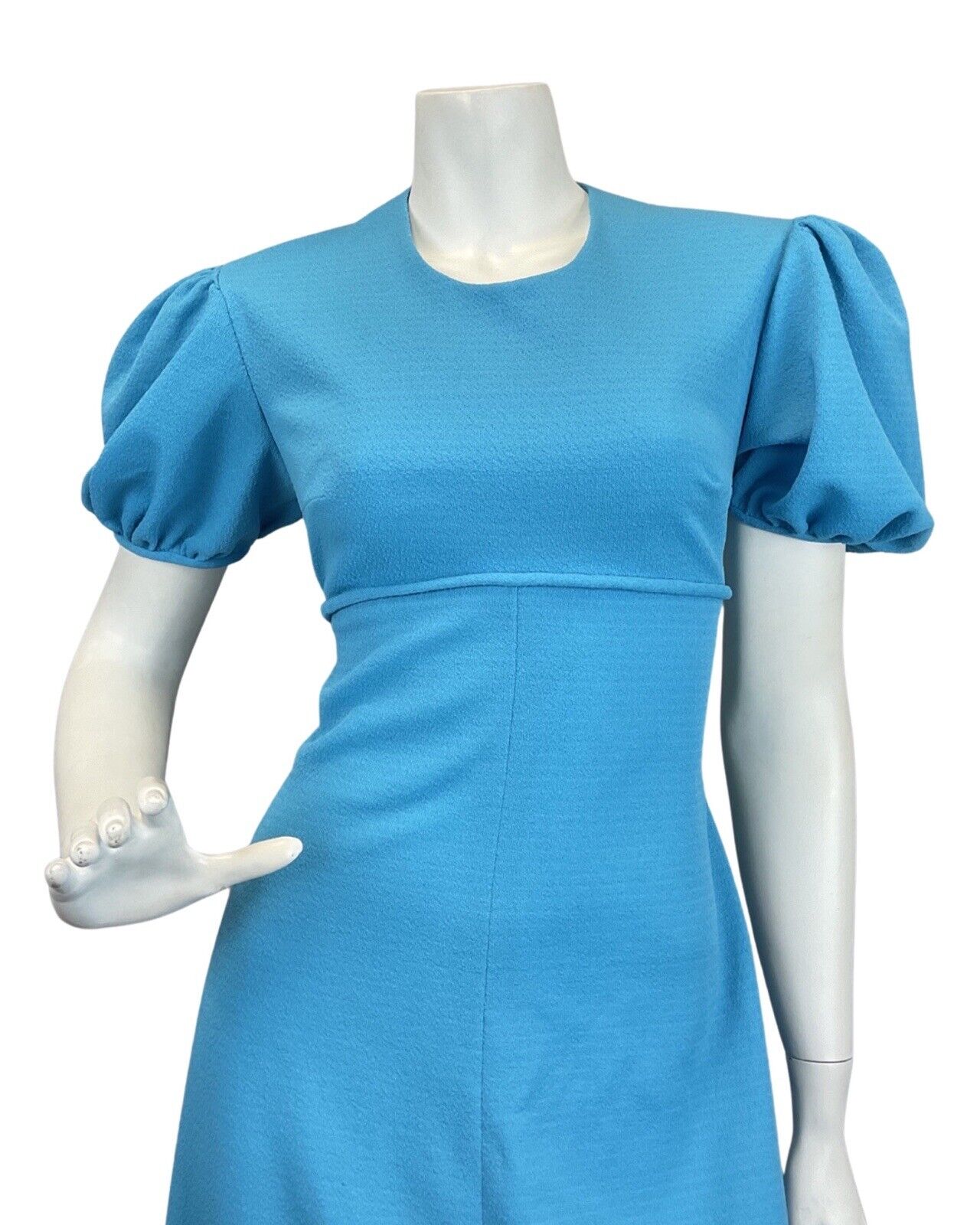 VINTAGE 60s 70s BRIGHT BLUE PUFF SLEEVE MOD MAXI DRESS 10 12