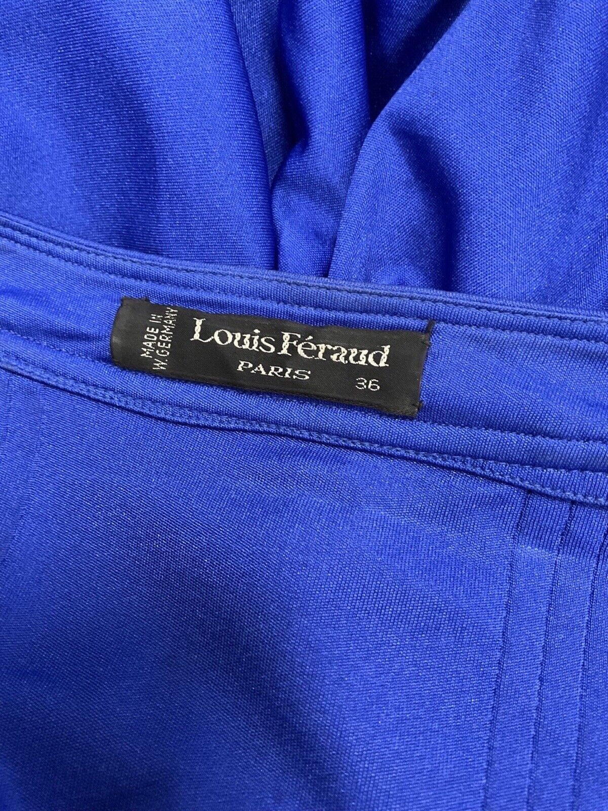VINTAGE 60s 70s BRIGHT BLUE SILVER BELTED LOUIS FERAUD LONG SLEEVE SWING DRESS 6
