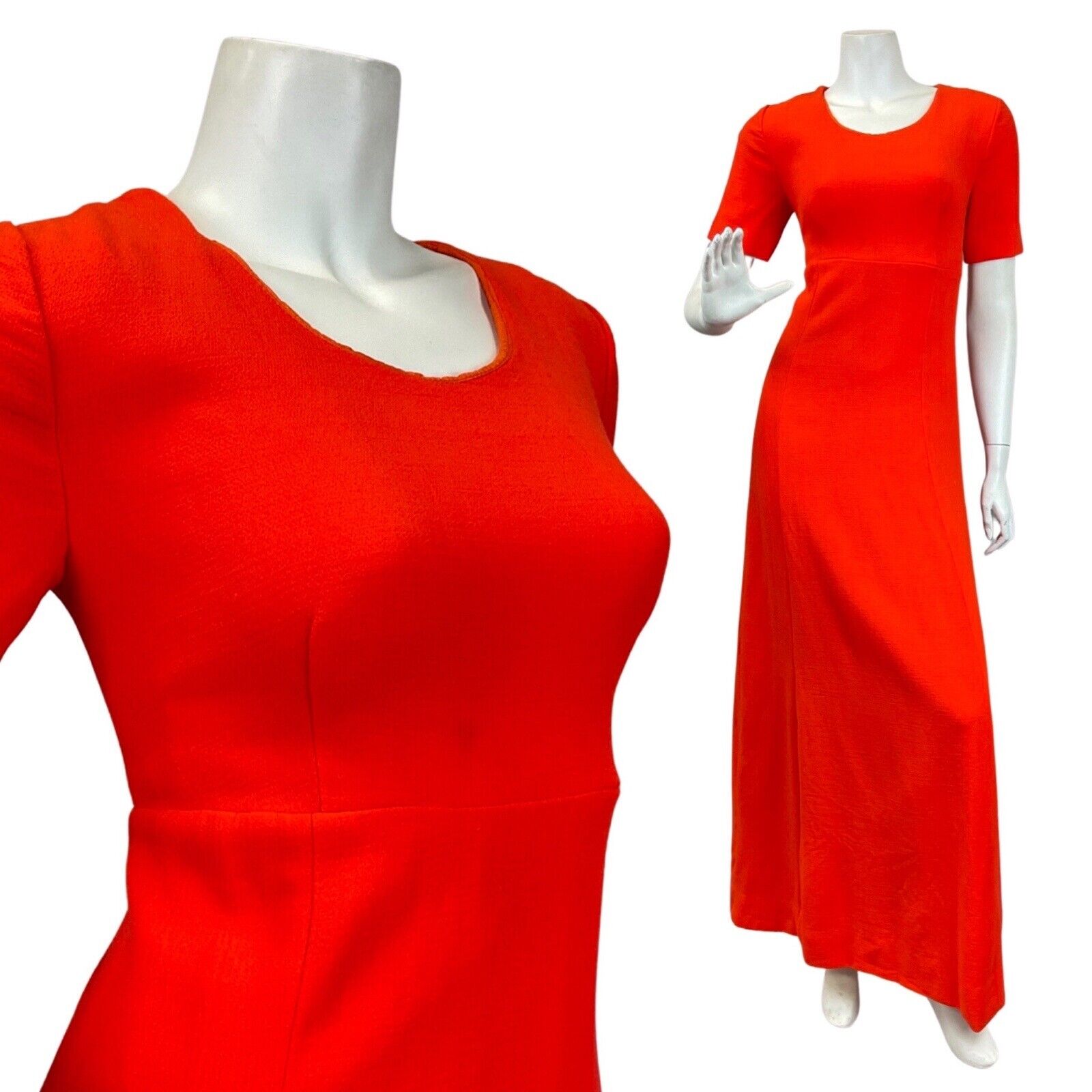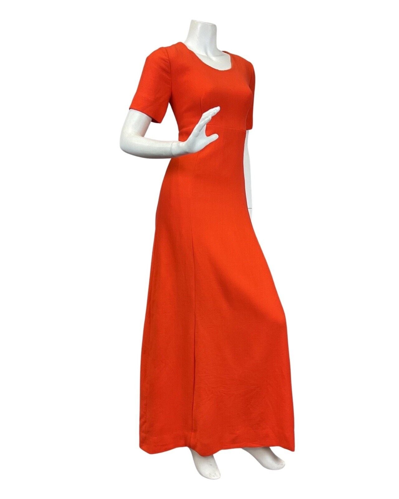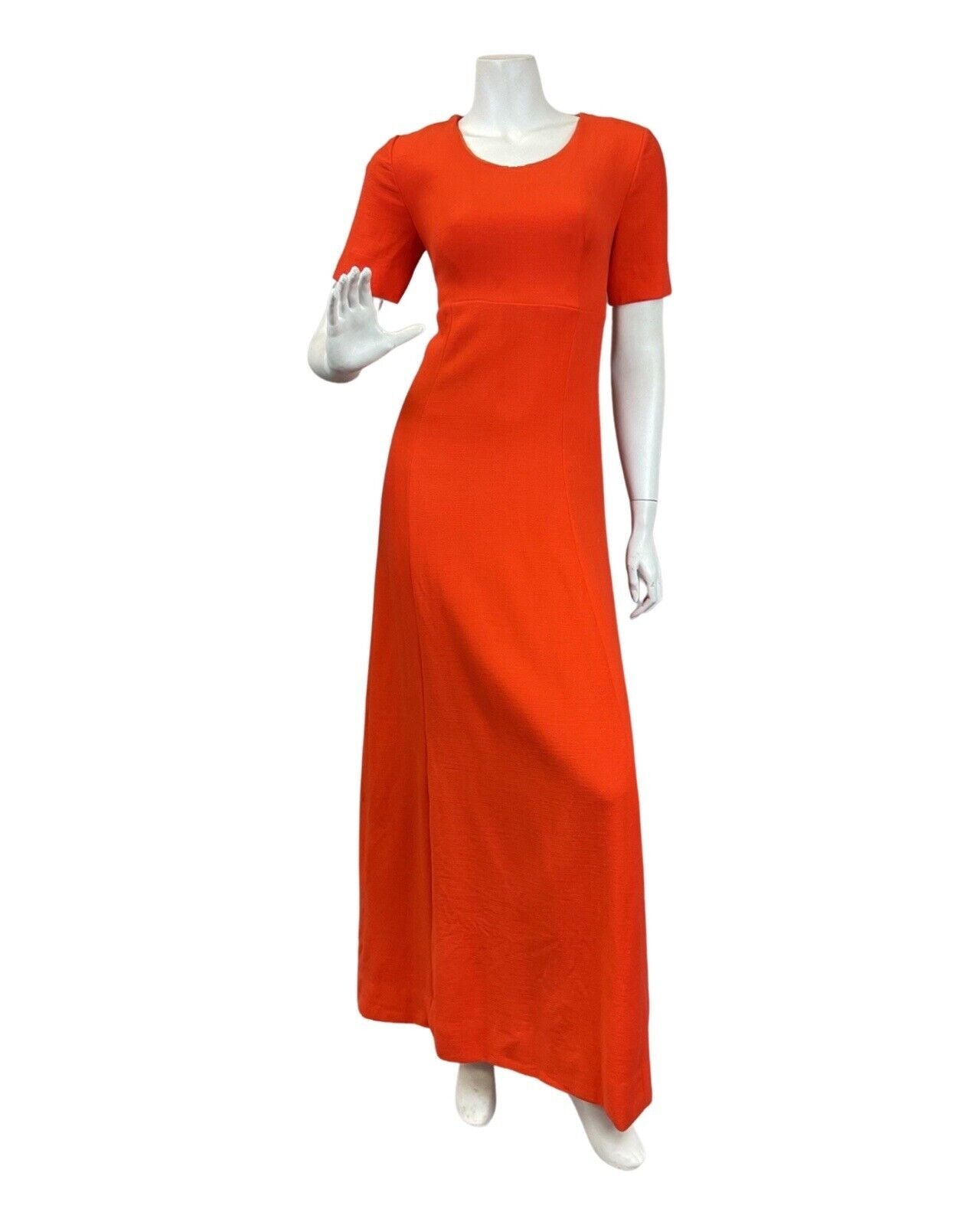 VINTAGE 60s 70s BRIGHT ORANGE MOD SHORT-SLEEVE MAXI DRESS 8