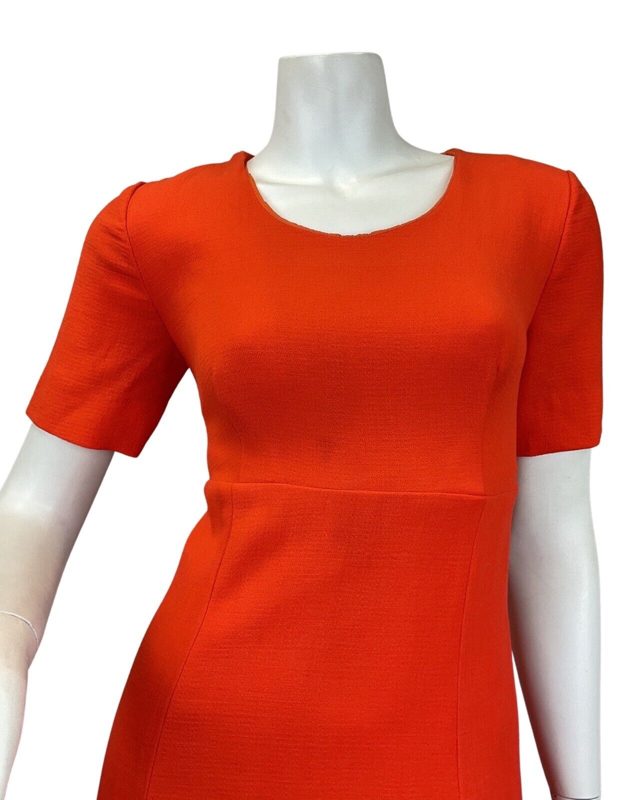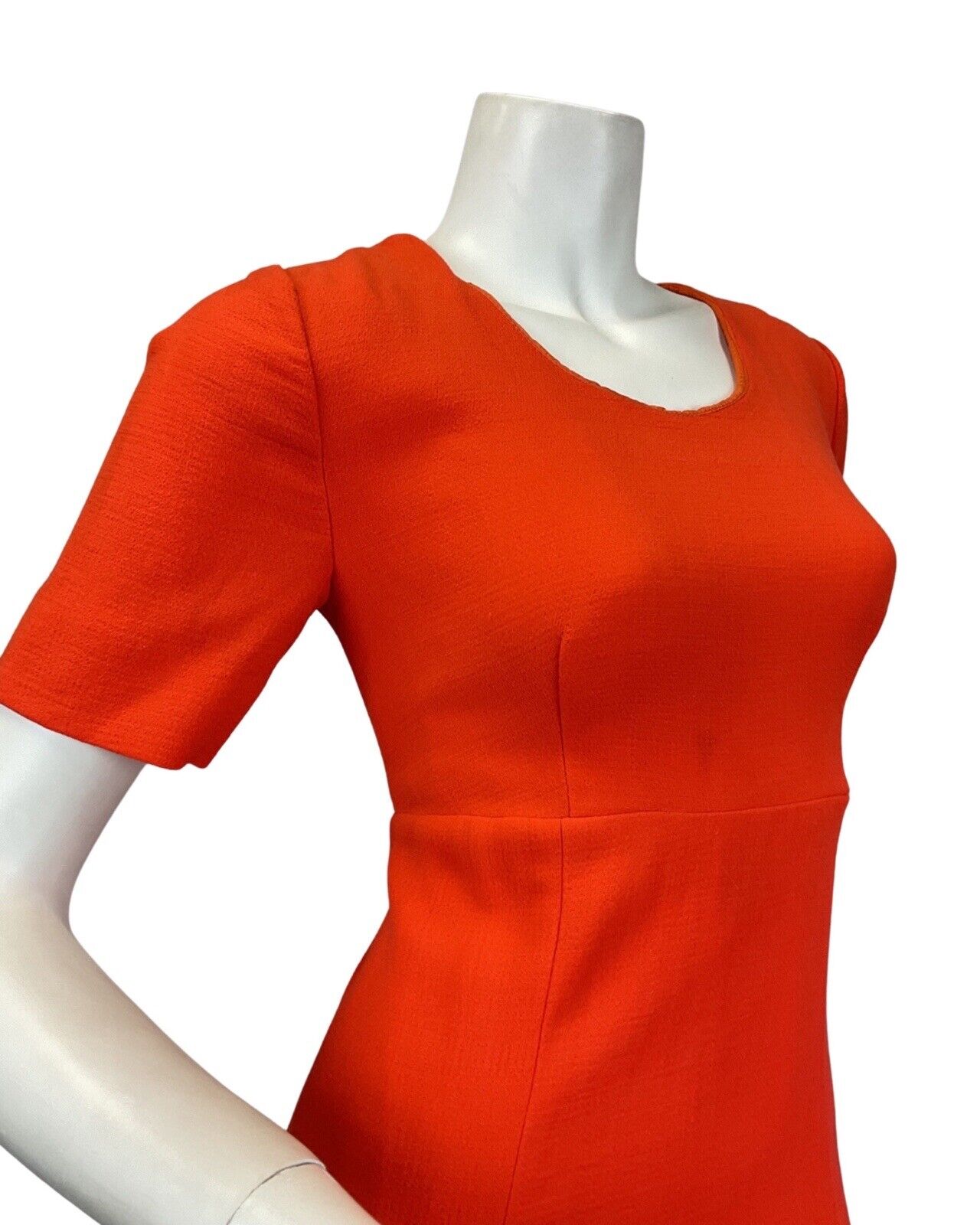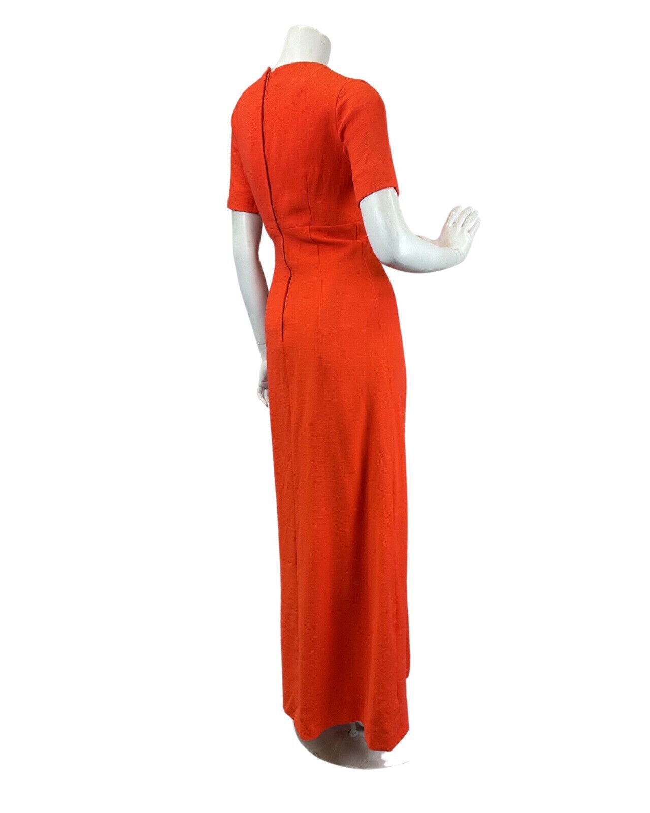 VINTAGE 60s 70s BRIGHT ORANGE MOD SHORT-SLEEVE MAXI DRESS 8