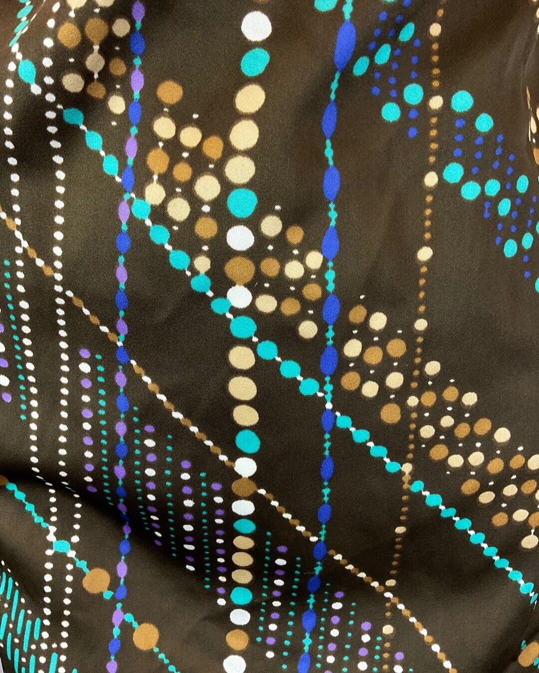 VINTAGE 60s 70s BROWN BLUE PURPLE BEAD REED DOTTY MOD SHORT SLEEVE DRESS 12