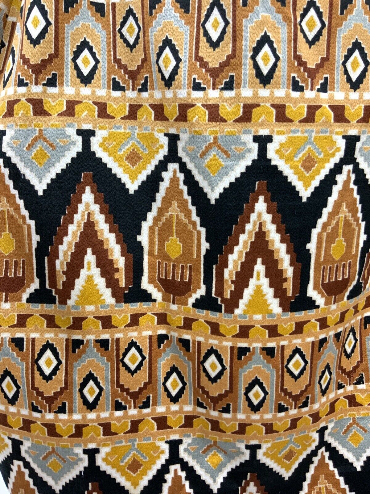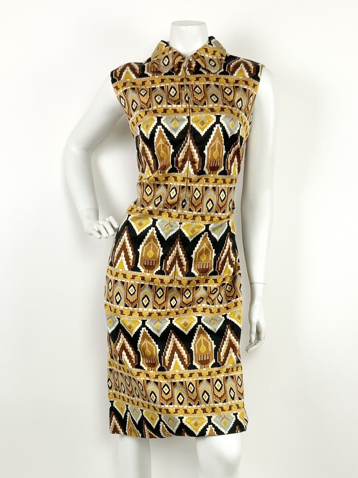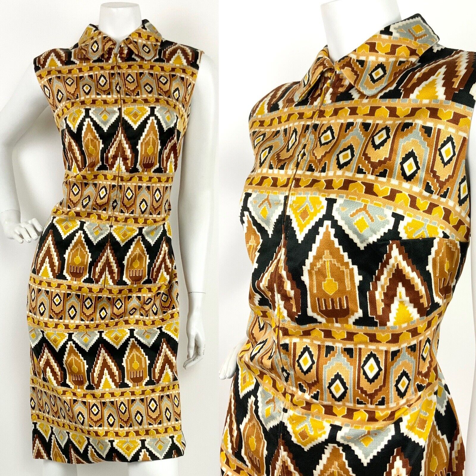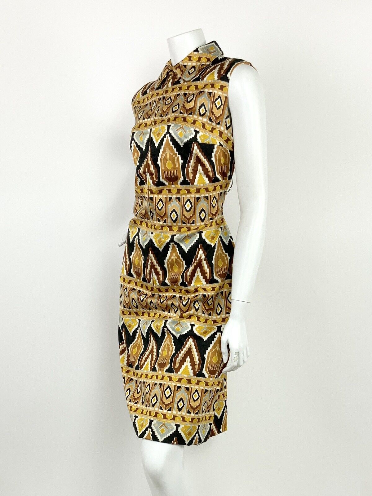 VINTAGE 60s 70s BROWN BRONZE GOLD BLACK WHITE AZTEC GEOMETRIC DRESS 12 14 16