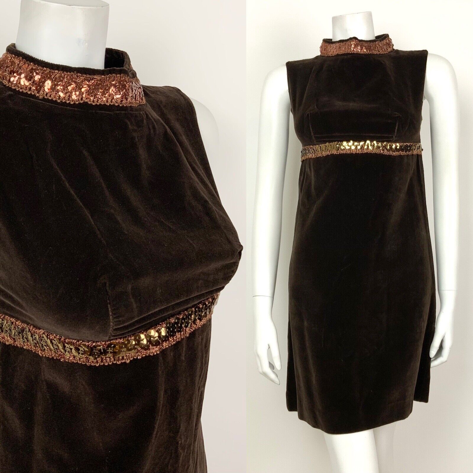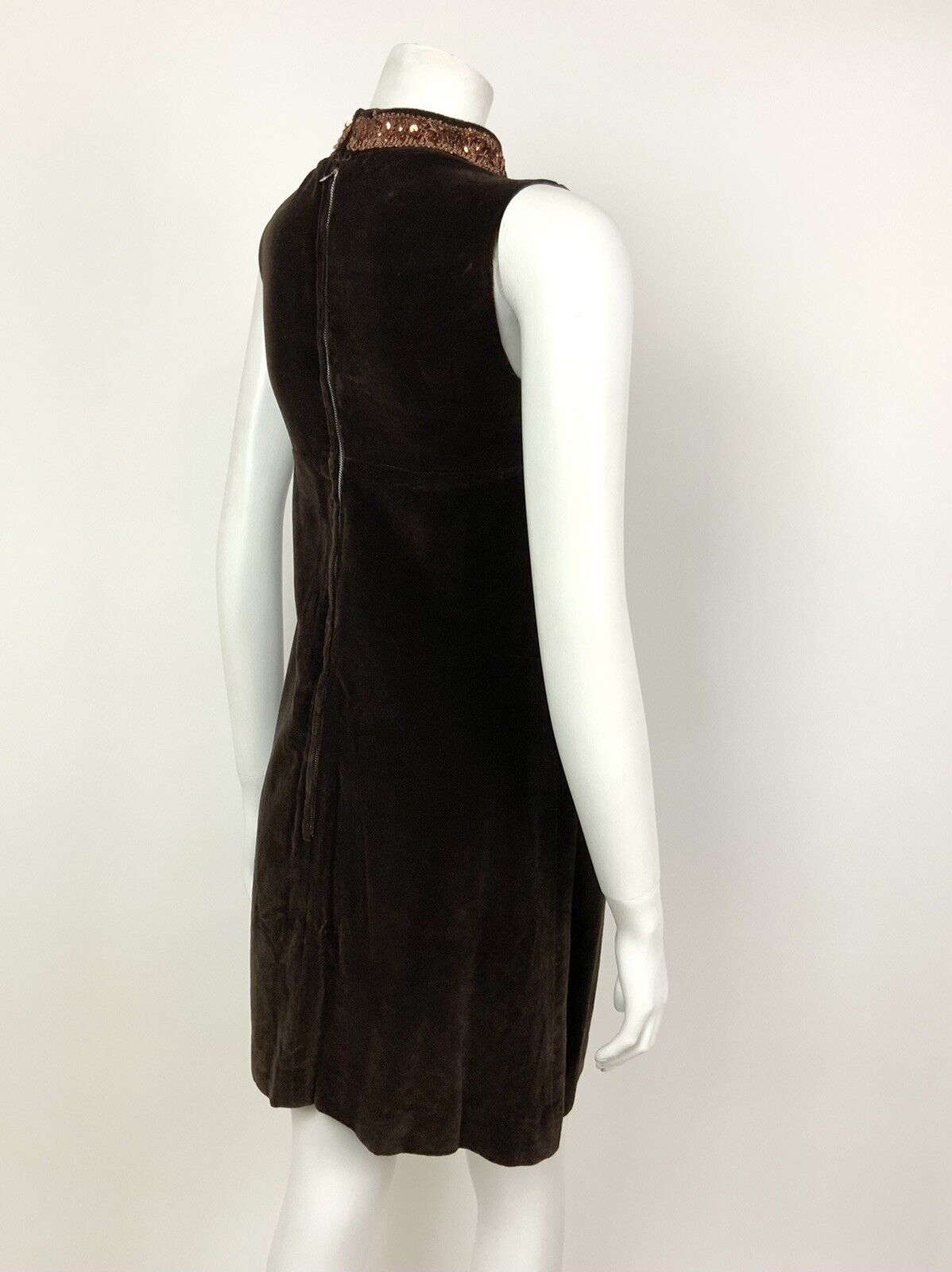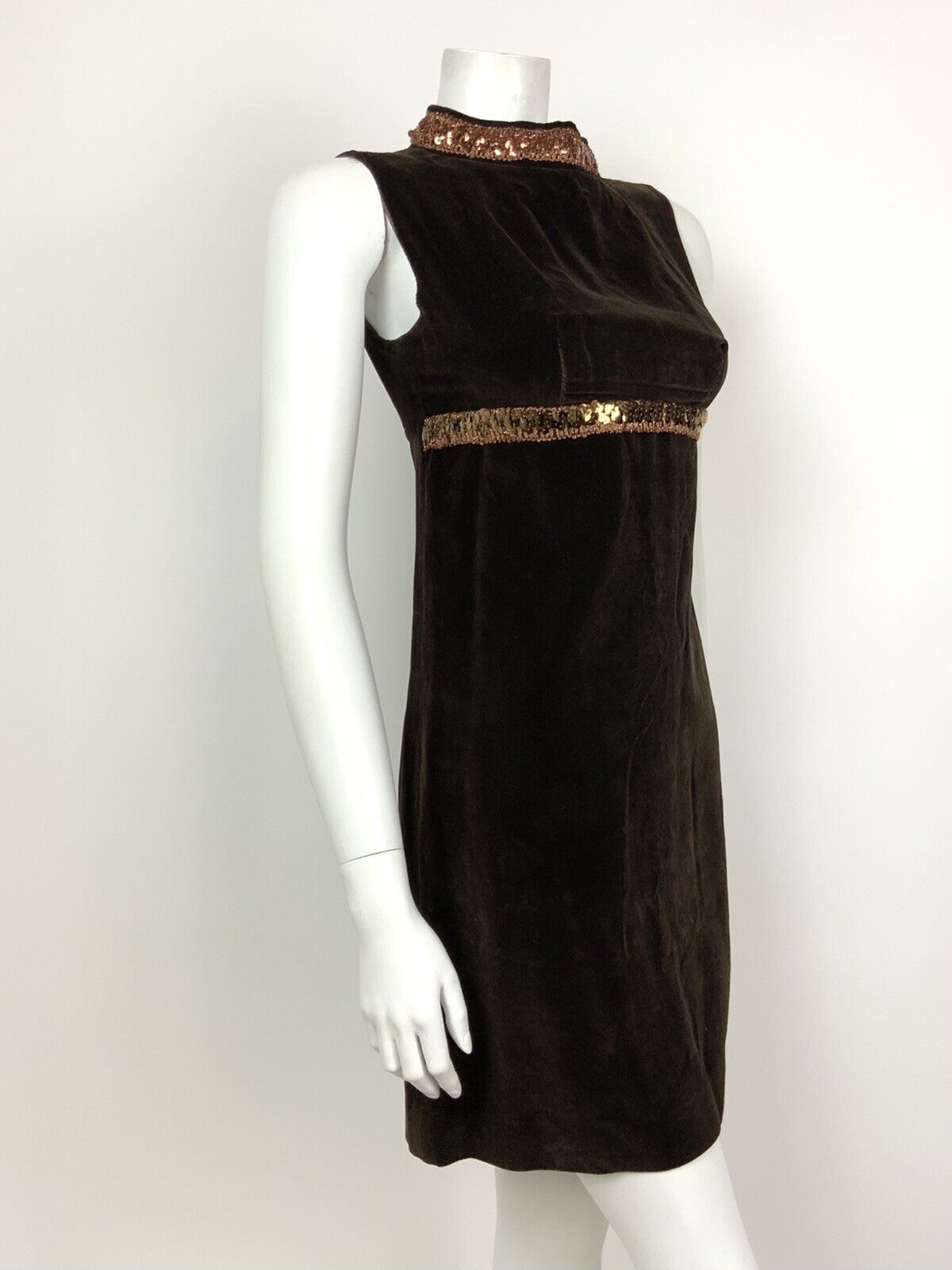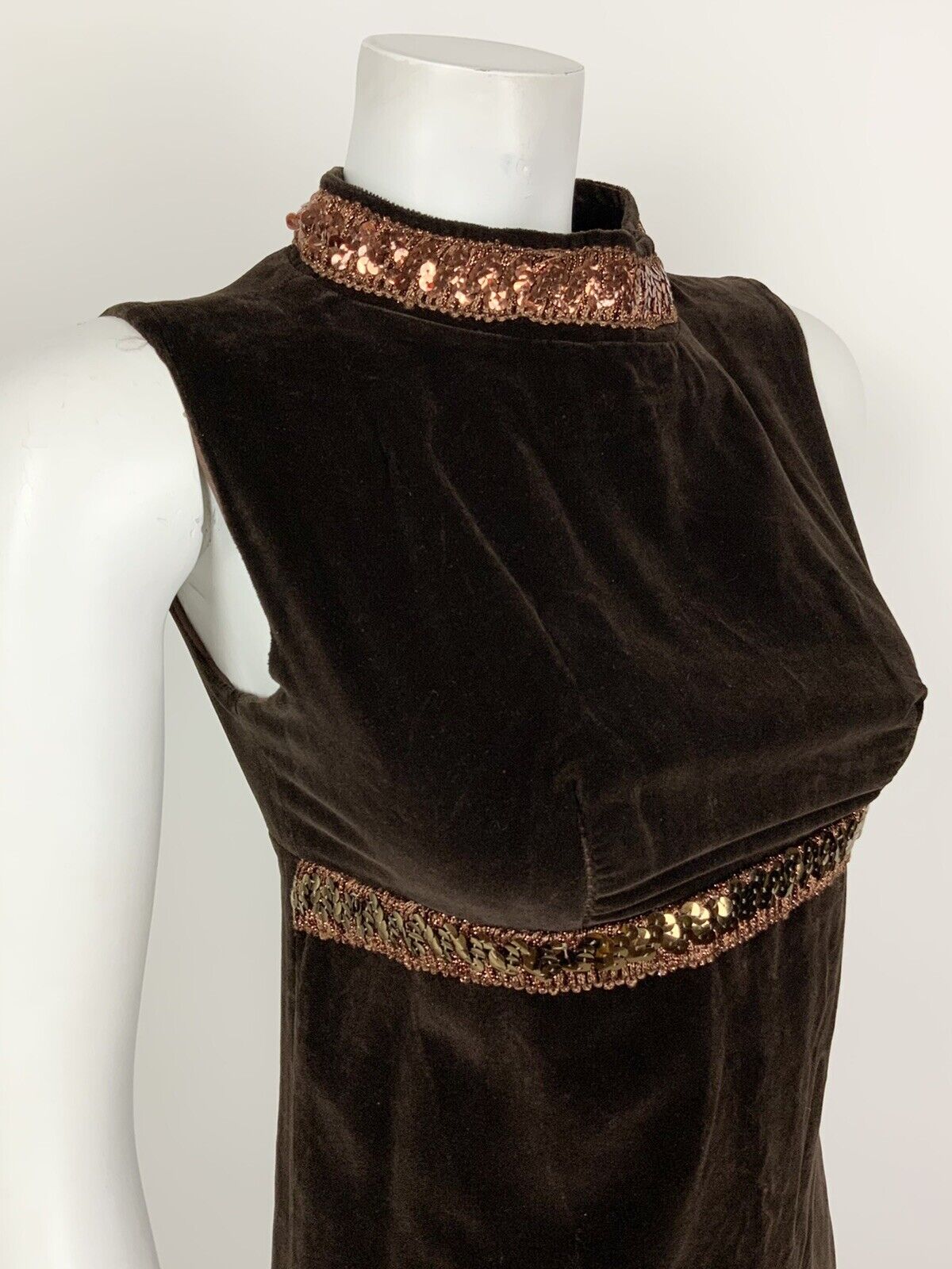 VINTAGE 60s 70s BROWN BRONZE METALLIC SEQUIN VELVET MOD DISCO STUDIO 54 DRESS 4