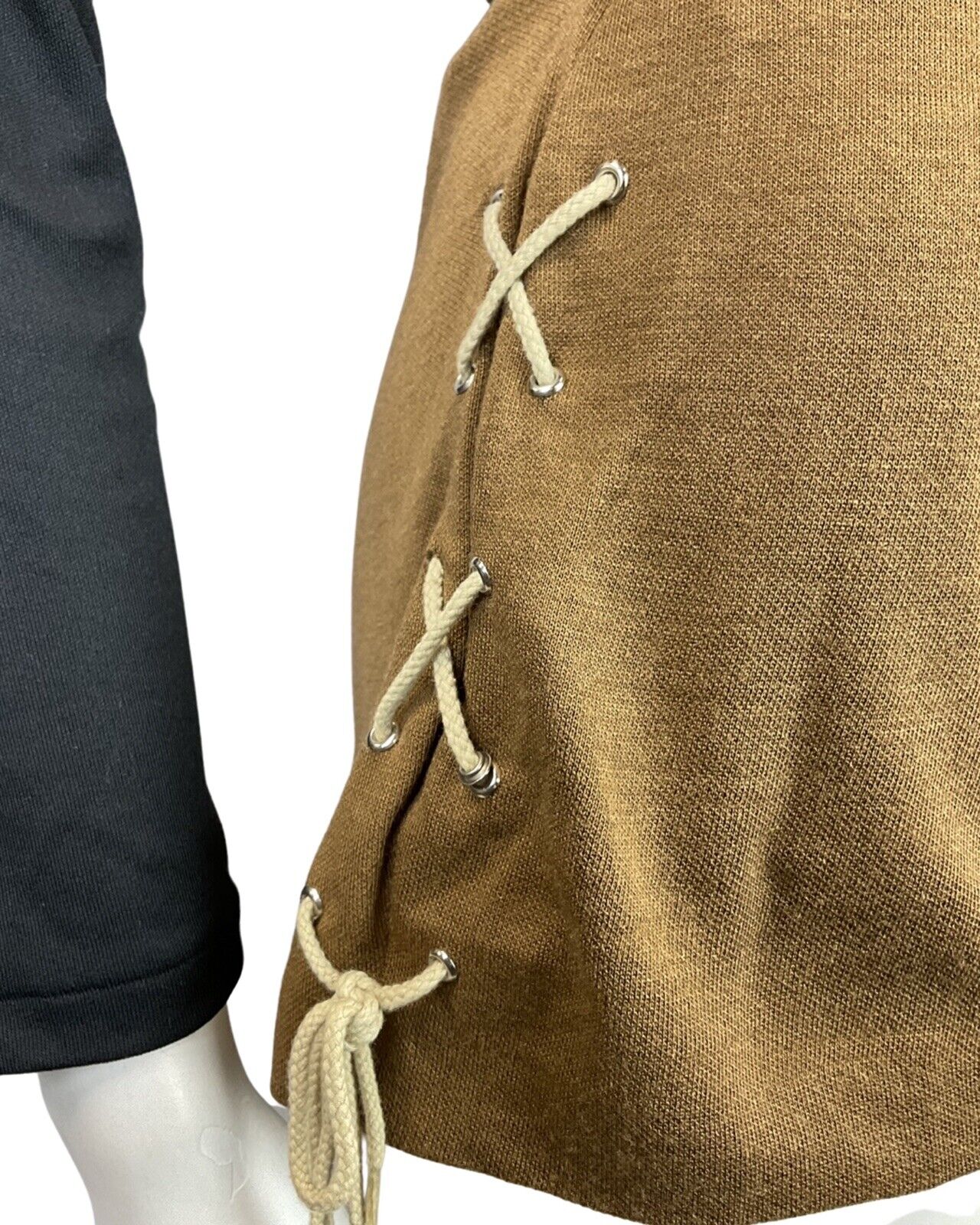 VINTAGE 60s 70s BROWN CREAM LACE-UP HOT PANTS GOGO MOD SHORTS 6 8