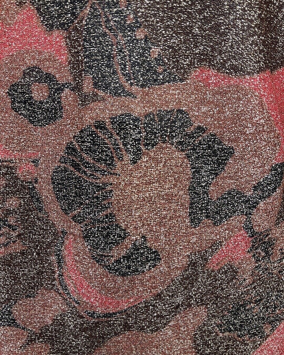 This is a gorgeous vintage blouse made from a mid-weight, knitted polyester lurex blend fabric with no stretch and no additional lining.