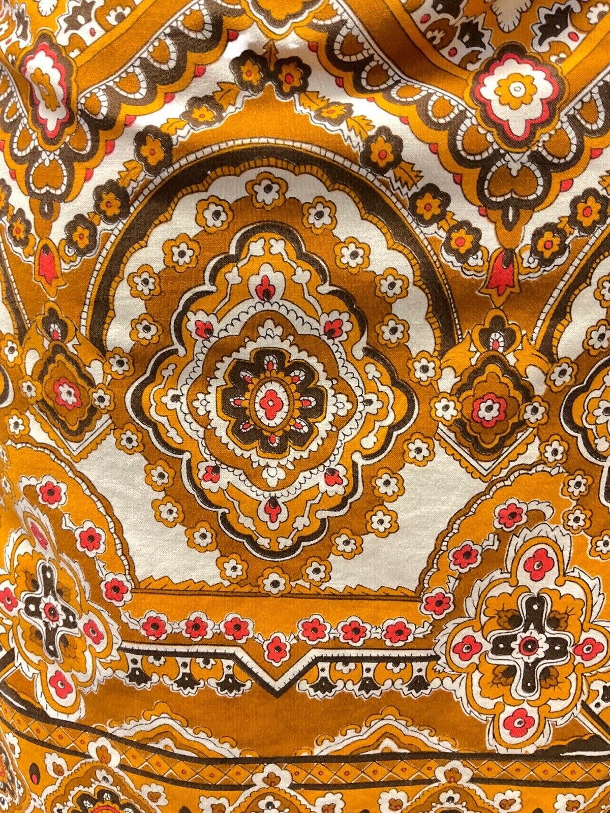 VINTAGE 60s 70s BROWN YELLOW WHITE FLORAL MANDALA BOHO MOD SHIRT DRESS 10