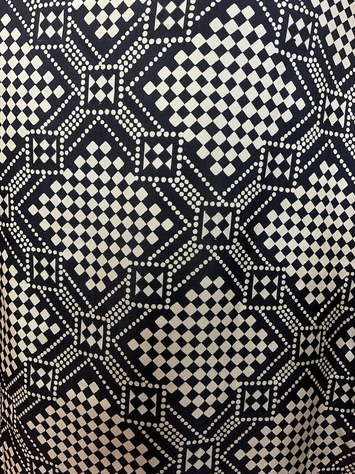 VINTAGE 60s 70s CREAM BLACK GEOMETRIC CHECKERBOARD MOD DAGGER SHIRT DRESS 8 10