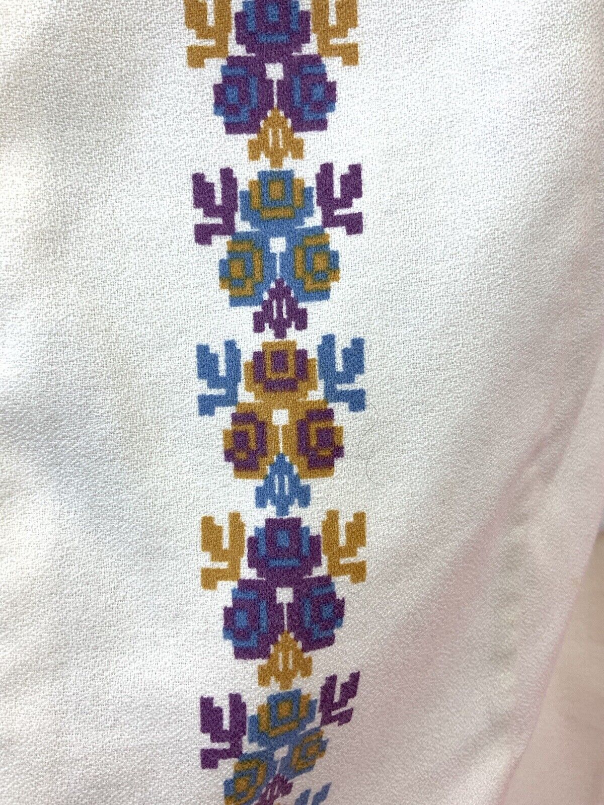 VINTAGE 60s 70s CREAM BLUE PURPLE PIXEL ROSE FLORAL REVERS SHIRT DRESS 12 14