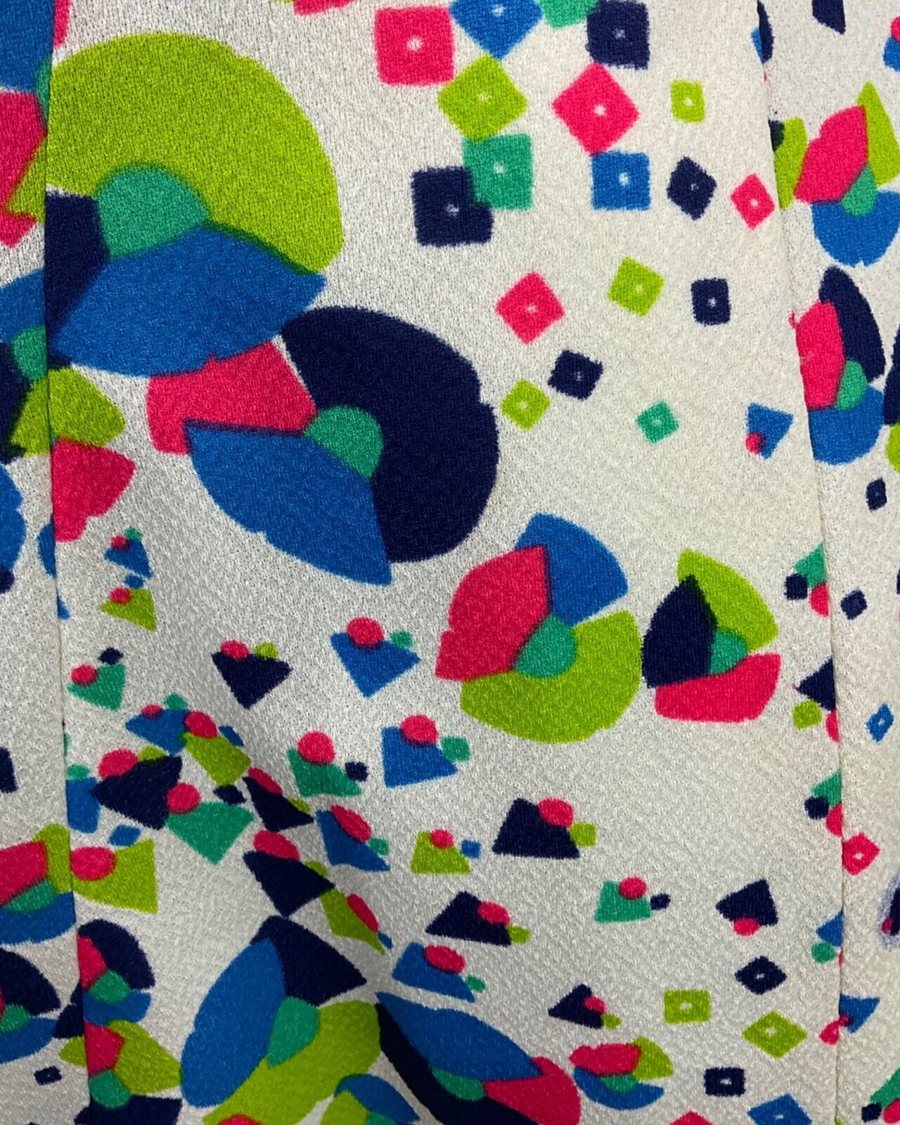 VINTAGE 60s 70s CREAM GREEN PINK GEOMETRIC PSYCHEDELIC SLEEVELESS SWING DRESS 12