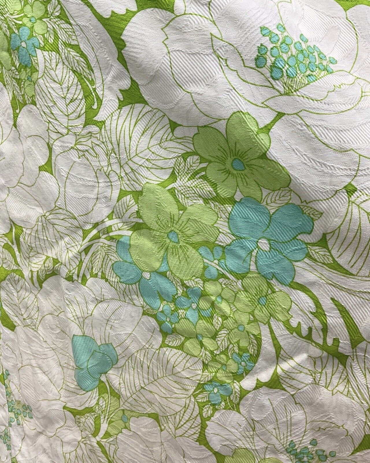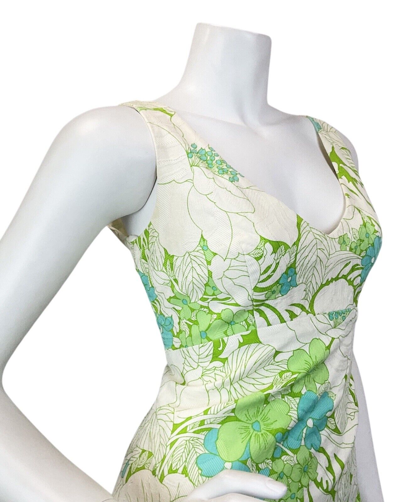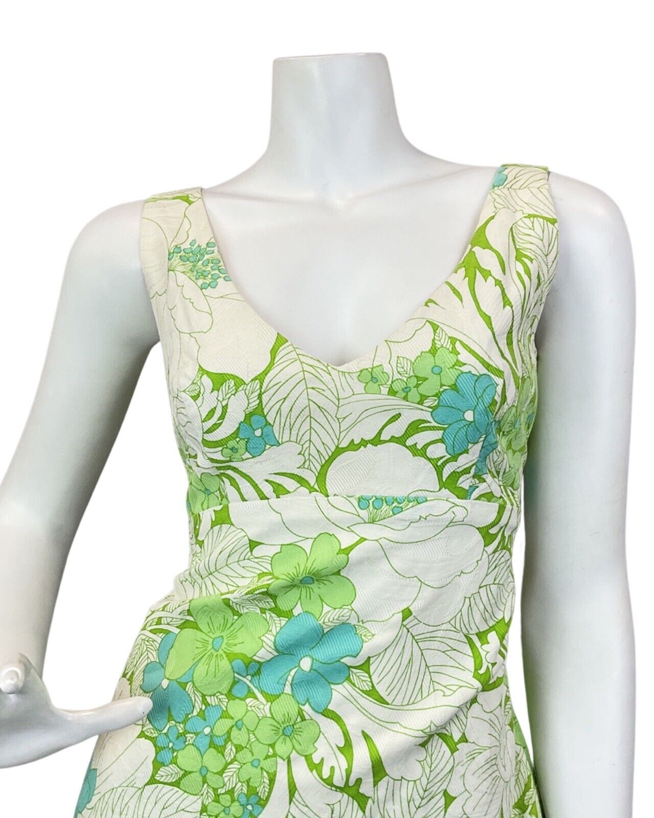 VINTAGE 60s 70s CREAM LIME GREEN FLORAL LEAFY SLEEVELESS MAXI DRESS 10