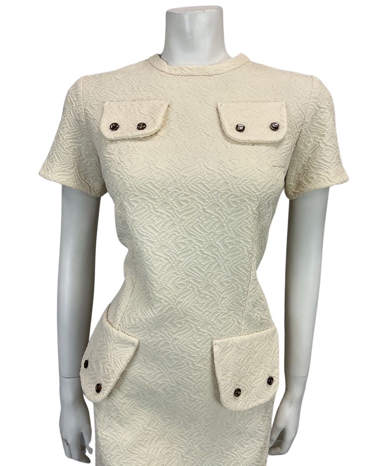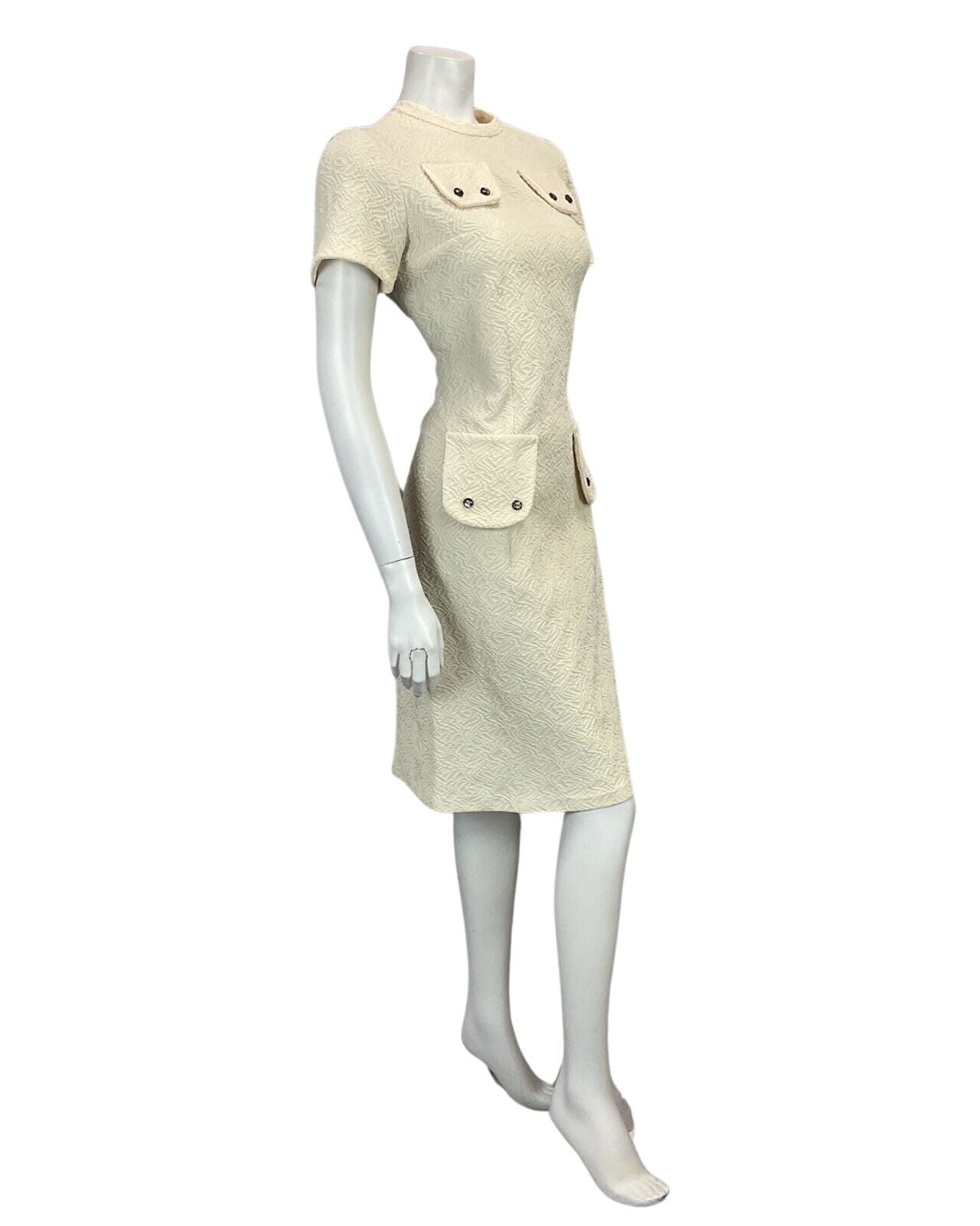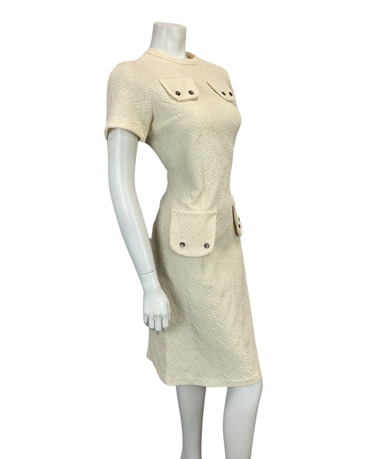 VINTAGE 60s 70s CREAM OFF WHITE TEXTURED MOD MIDI OCCASION DRESS 12