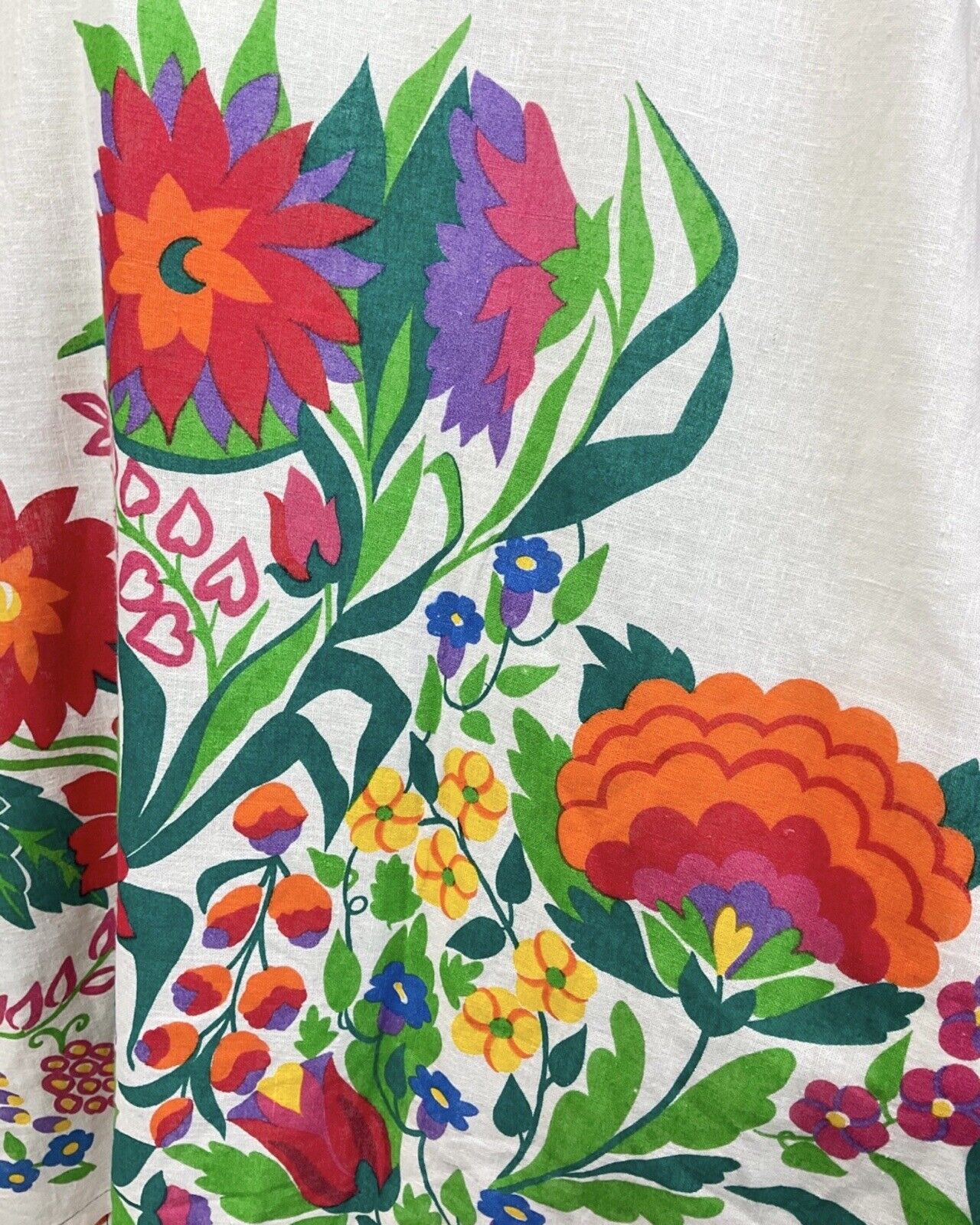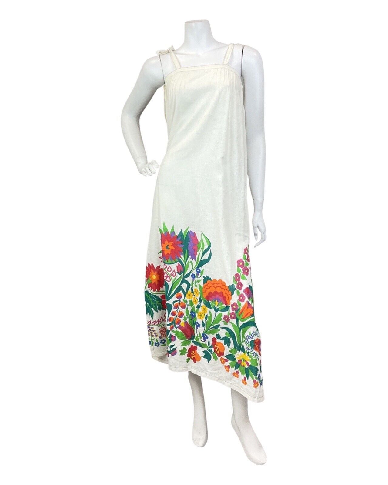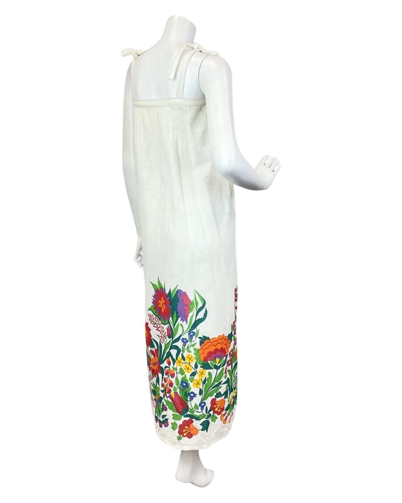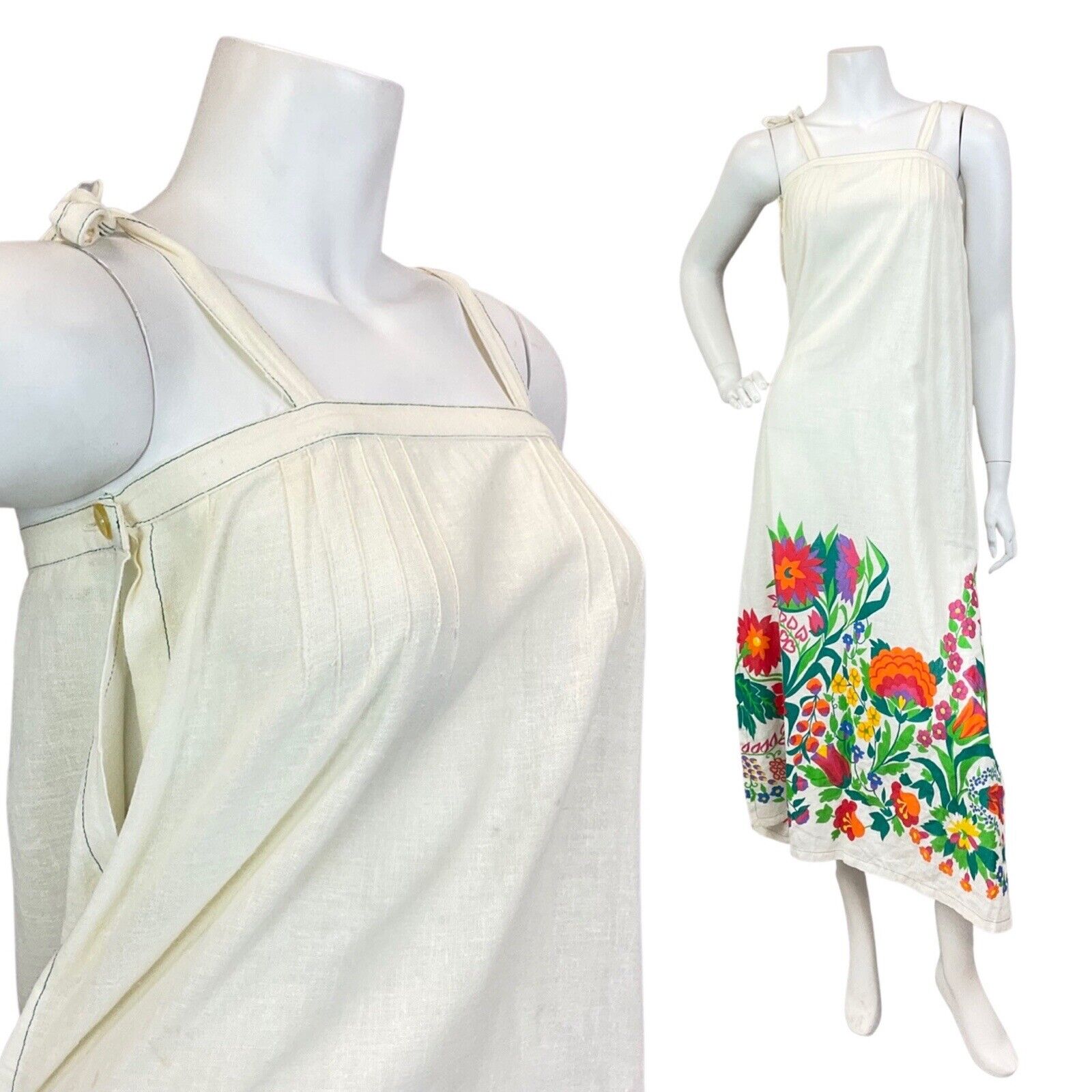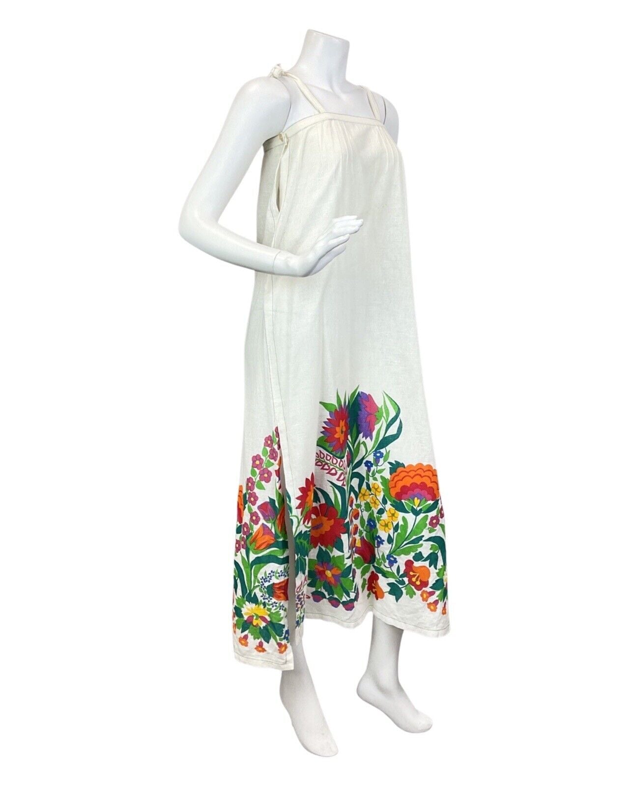 VINTAGE 60s 70s CREAM RED GREEN FLORAL COTTON STRAPPY SUMMER MAXI DRESS 4
