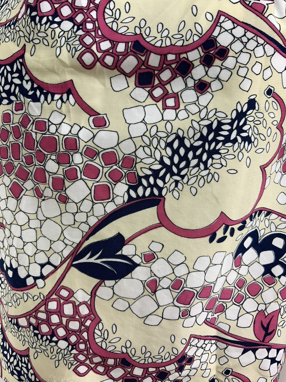 VINTAGE 60s 70s CREAM WHITE PINK BLUE LEAF SQUARE DAGGER SHIRT SHIFT DRESS 12 14