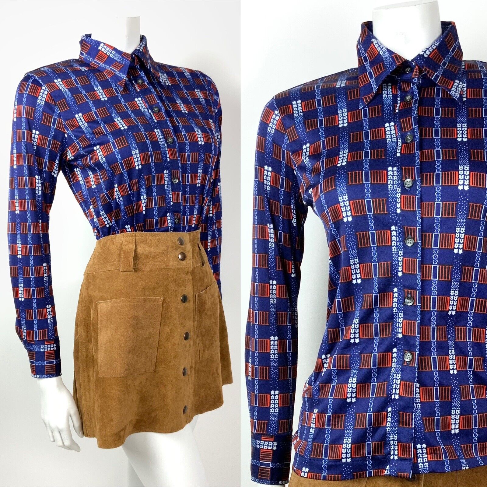 This fab shirt would look great paired with a vintage suede skirt or pinafore dress, so check out our other listings to complete your perfect vintage outfit.