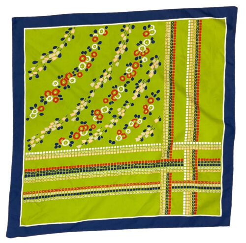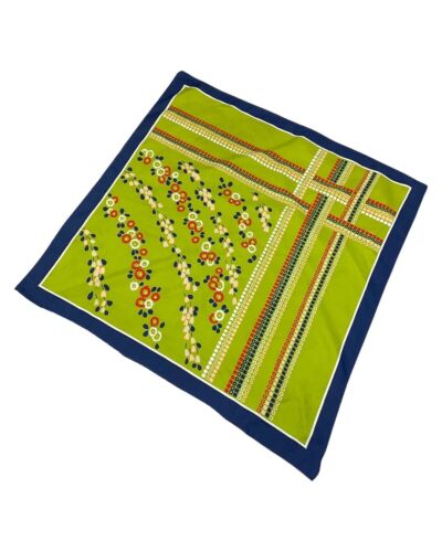VINTAGE 60s 70s GREEN BLUE DAISY CHAIN FLOWER GEOMETRIC MOD SQUARE SCARF