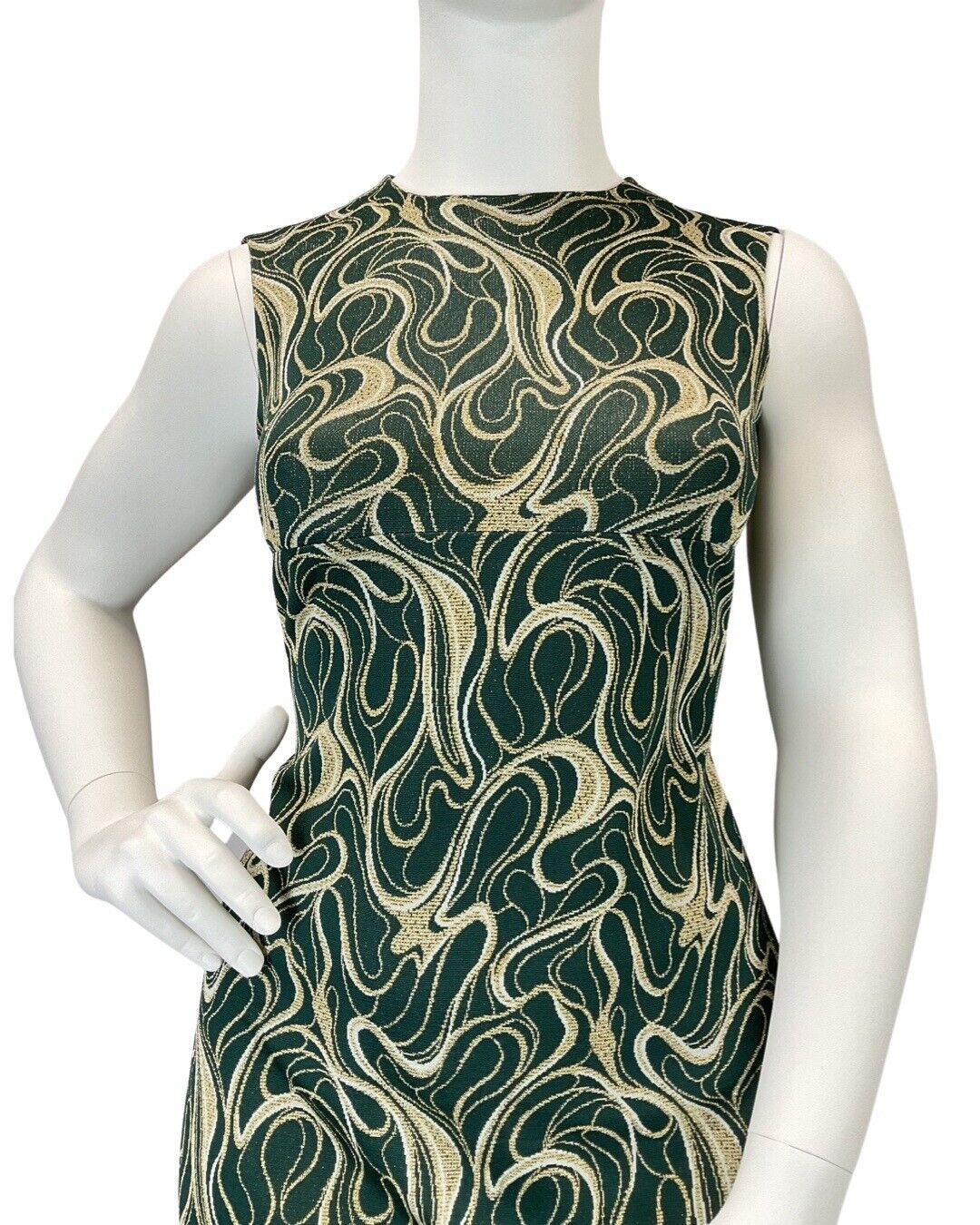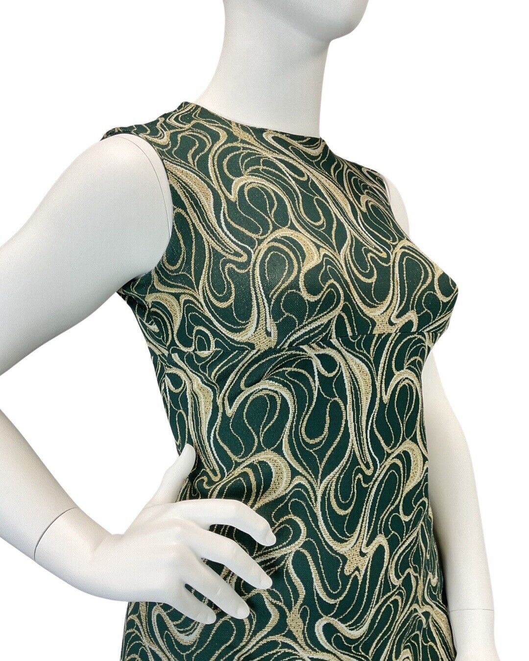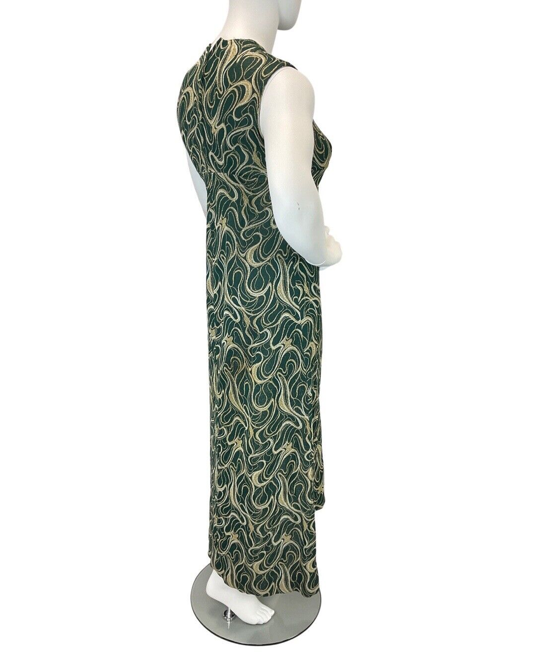 VINTAGE 60s 70s GREEN GOLD WHITE SWIRLING STUDIO 54 SLEEVELESS MAXI DRESS 14 16