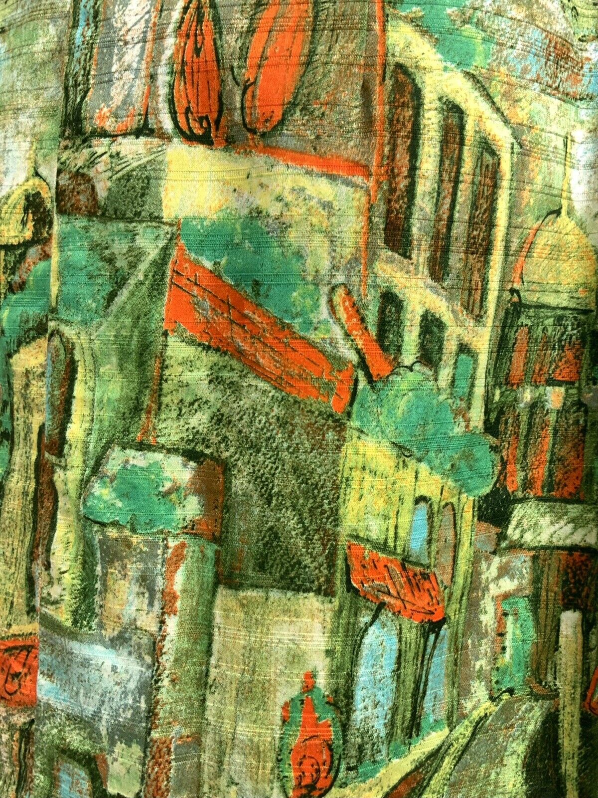 VINTAGE 60s 70s GREEN ORANGE BLUE ABSTRACT ARCH WING COLLAR SHIFT DRESS 14
