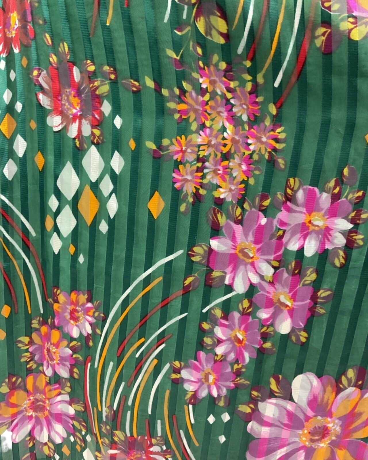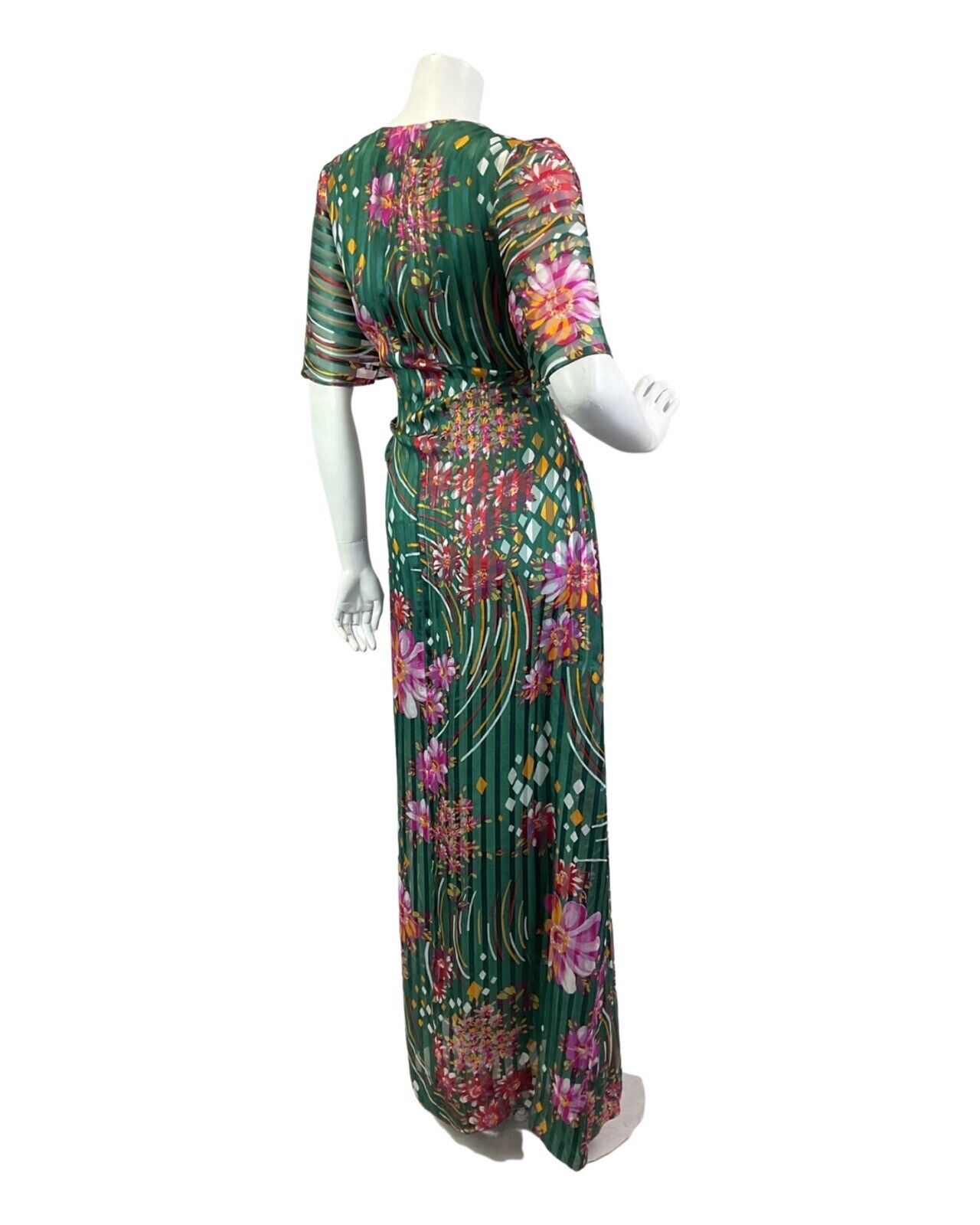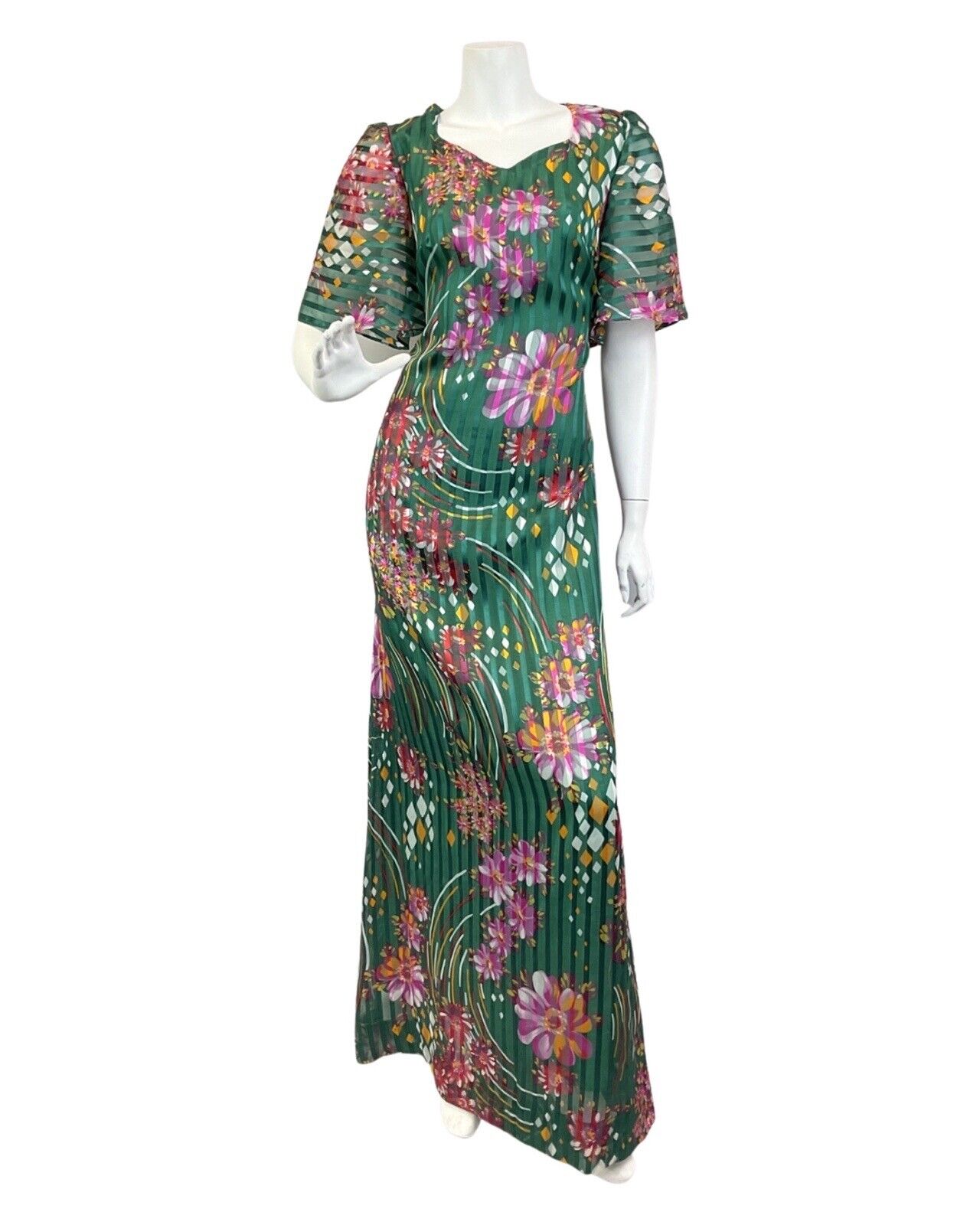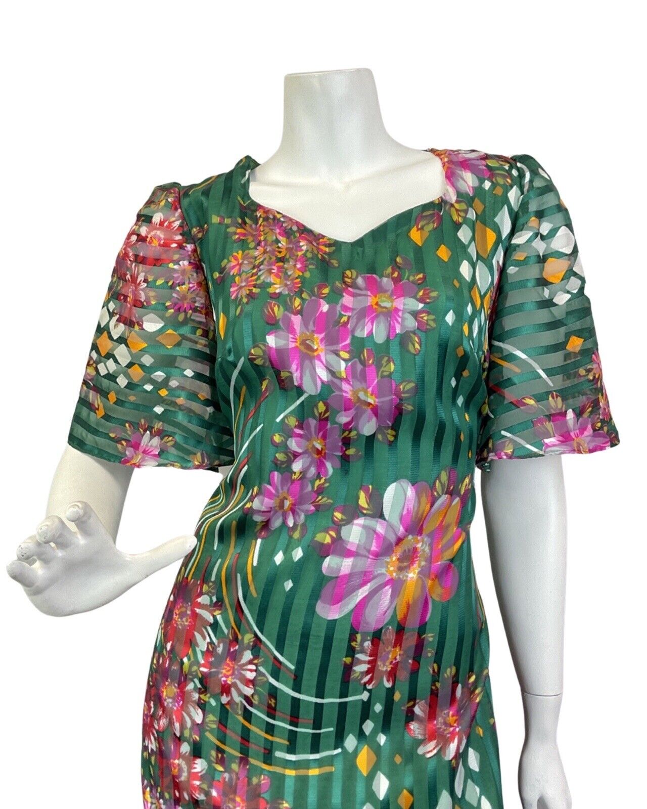 VINTAGE 60s 70s GREEN PURPLE ORANGE FLORAL STRIPED SHEER SUMMER MAXI DRESS 10 12