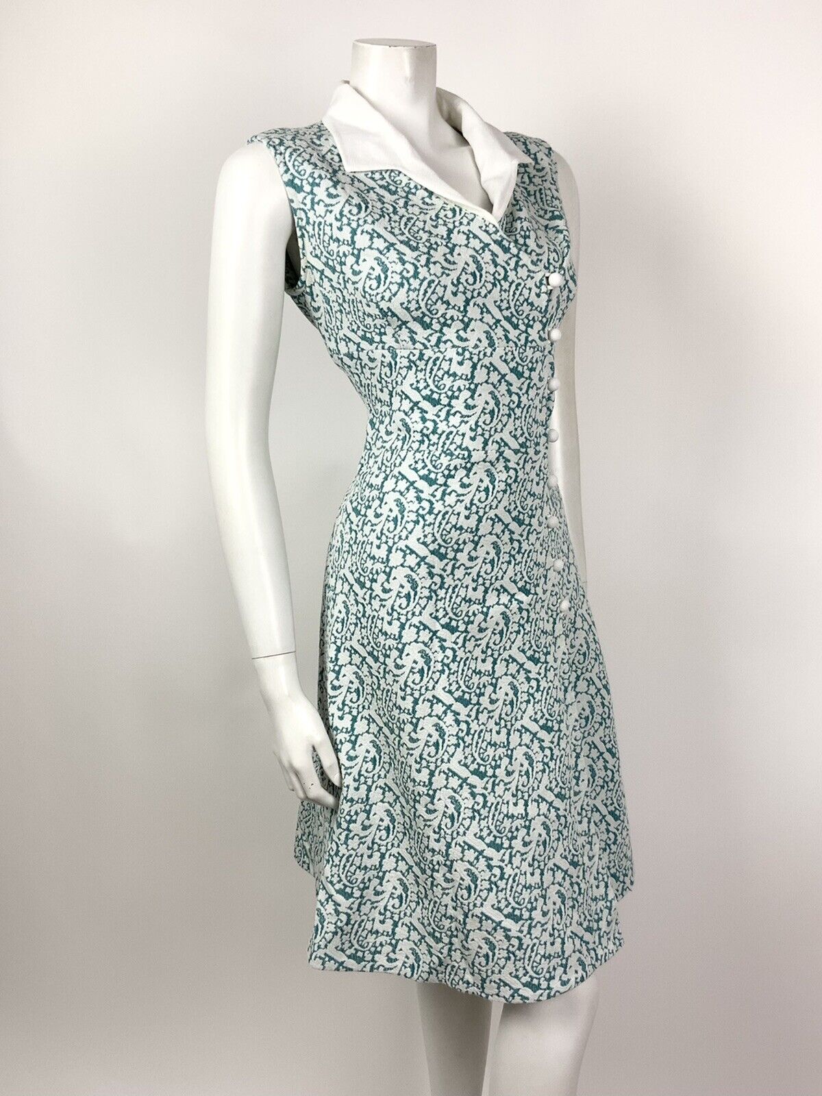 VINTAGE 60s 70s GREEN WHITE PAISLEY FLORAL WRAP DRESS 14