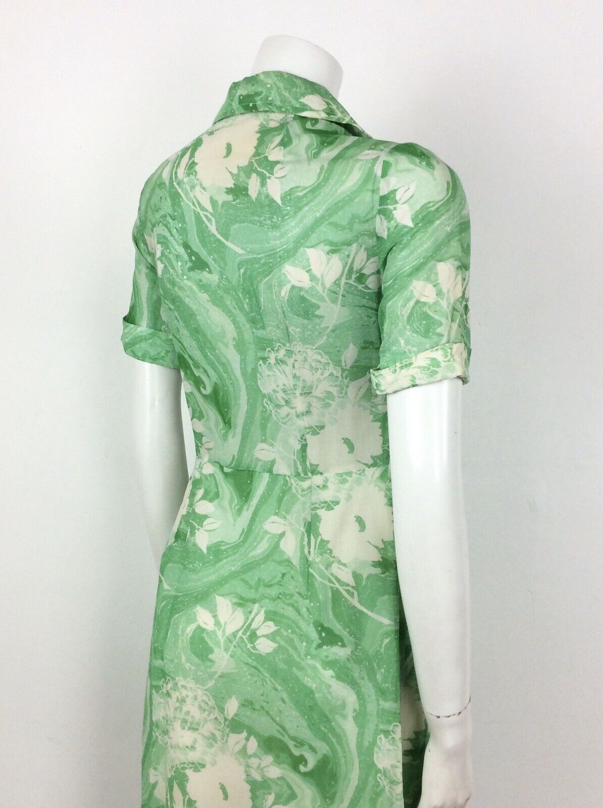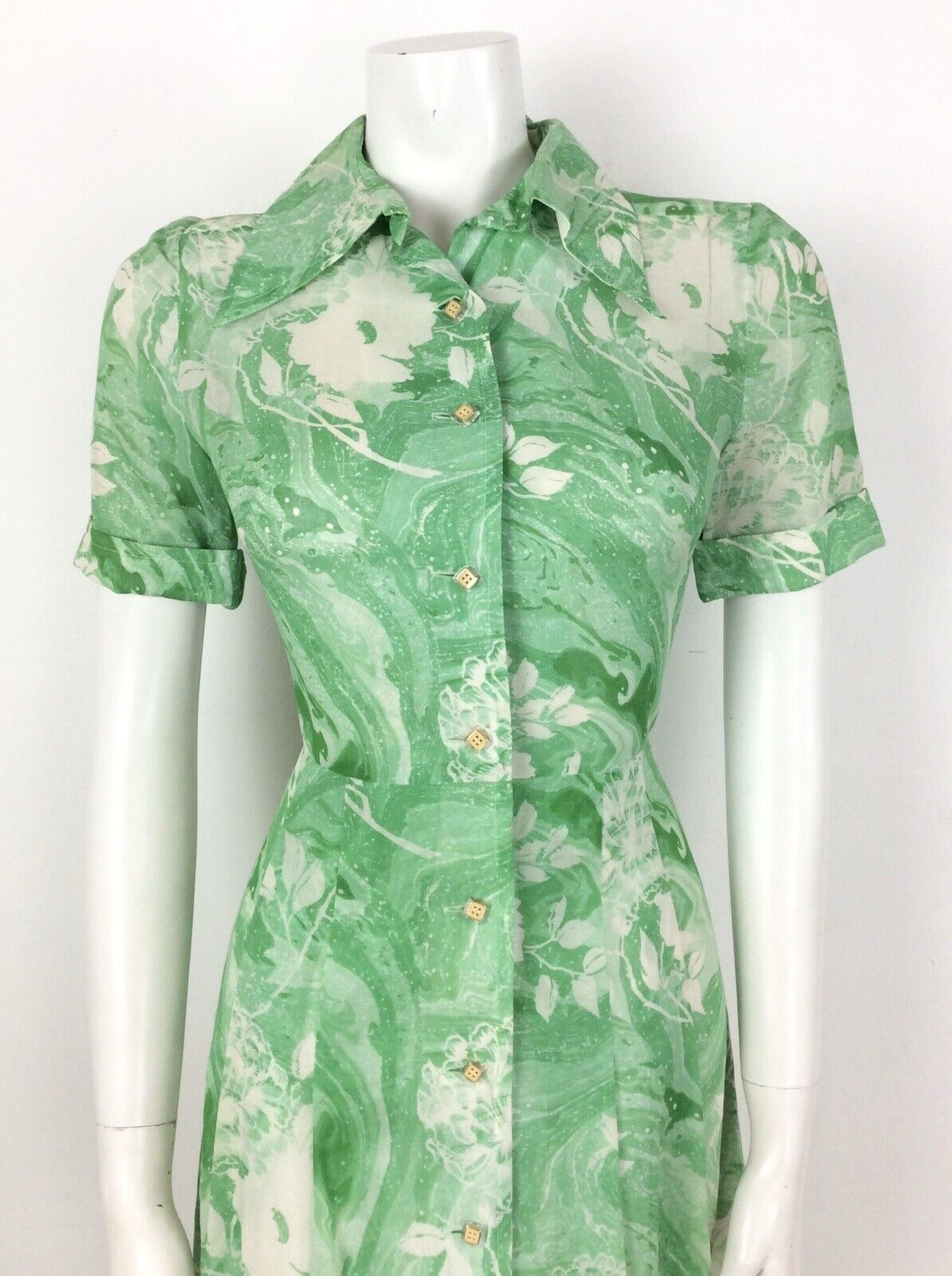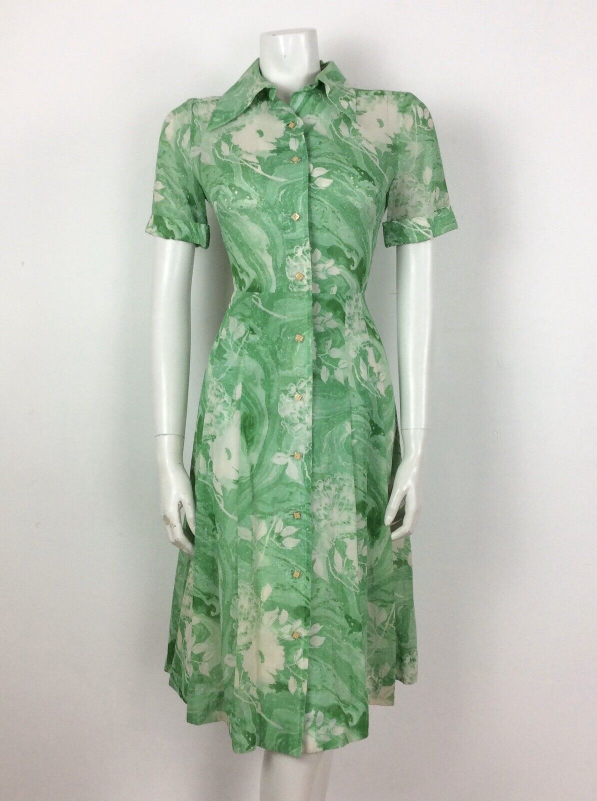 VINTAGE 60s 70s GREEN WHITE SWIRL PSYCHEDELIC SHIRT TEA DRESS 10 12