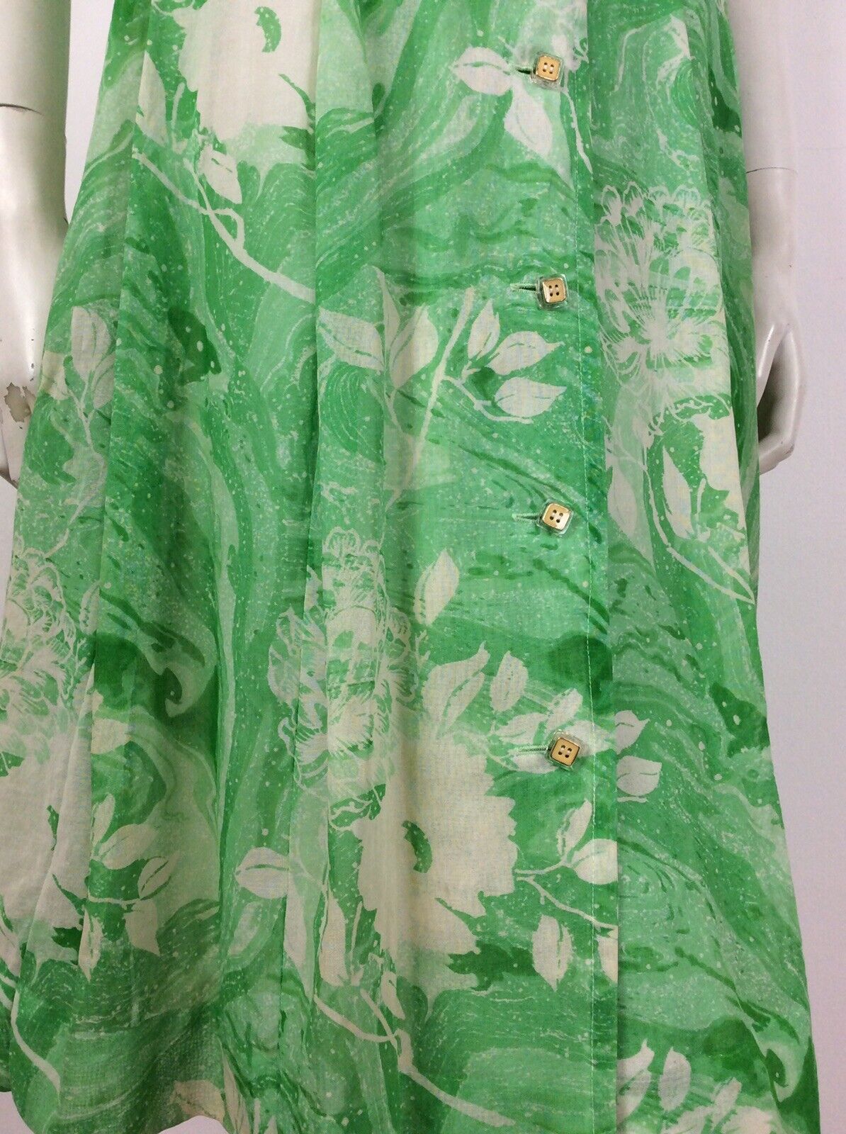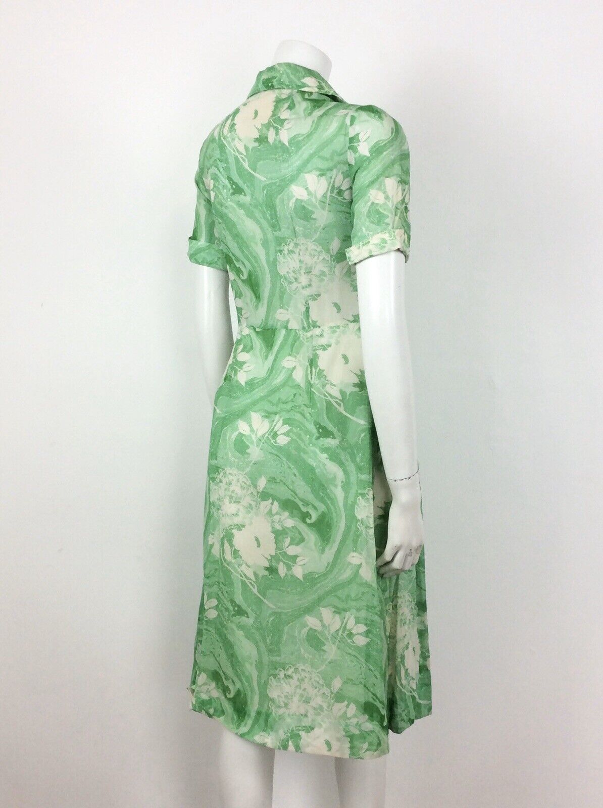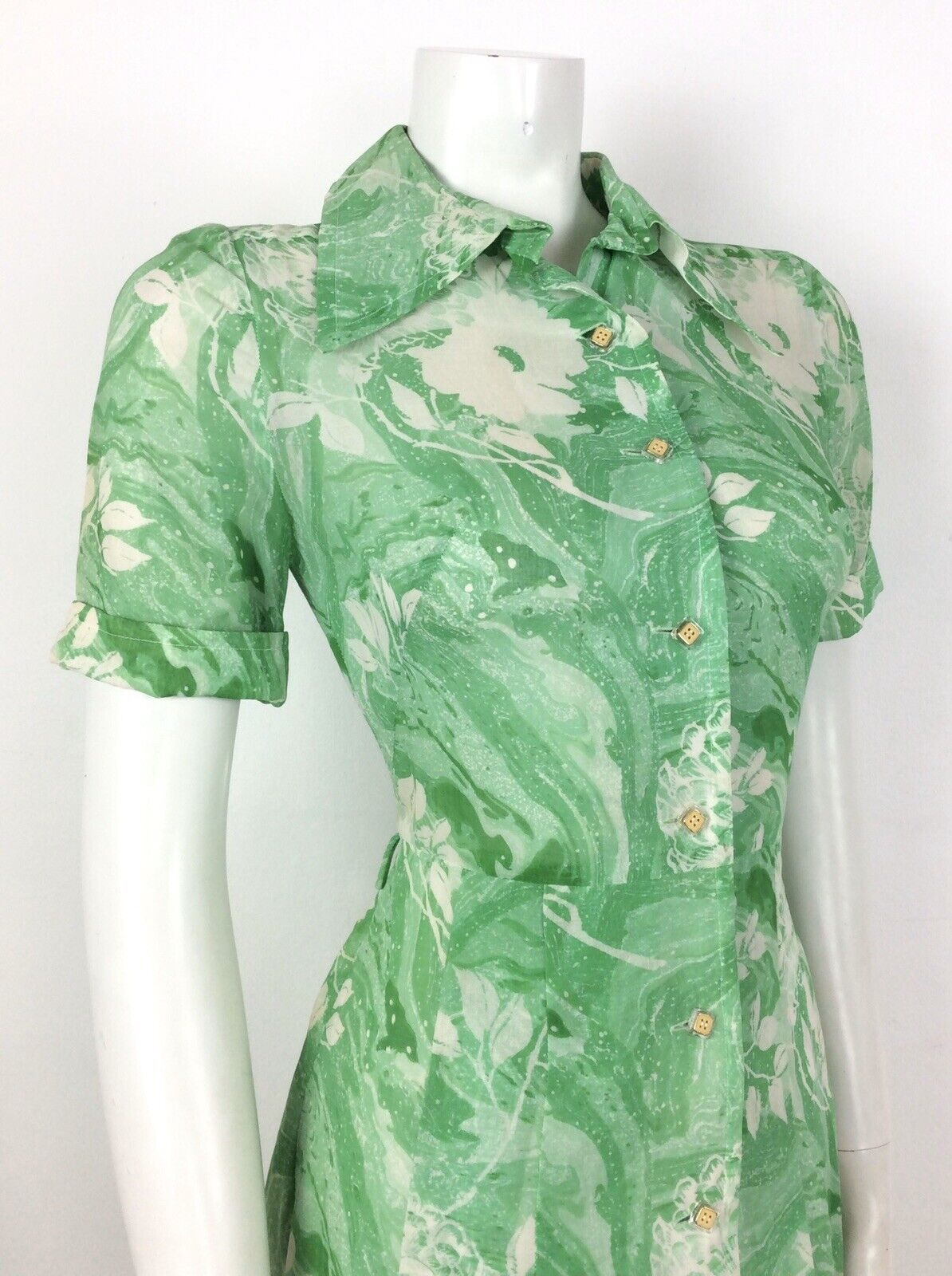 VINTAGE 60s 70s GREEN WHITE SWIRL PSYCHEDELIC SHIRT TEA DRESS 10 12