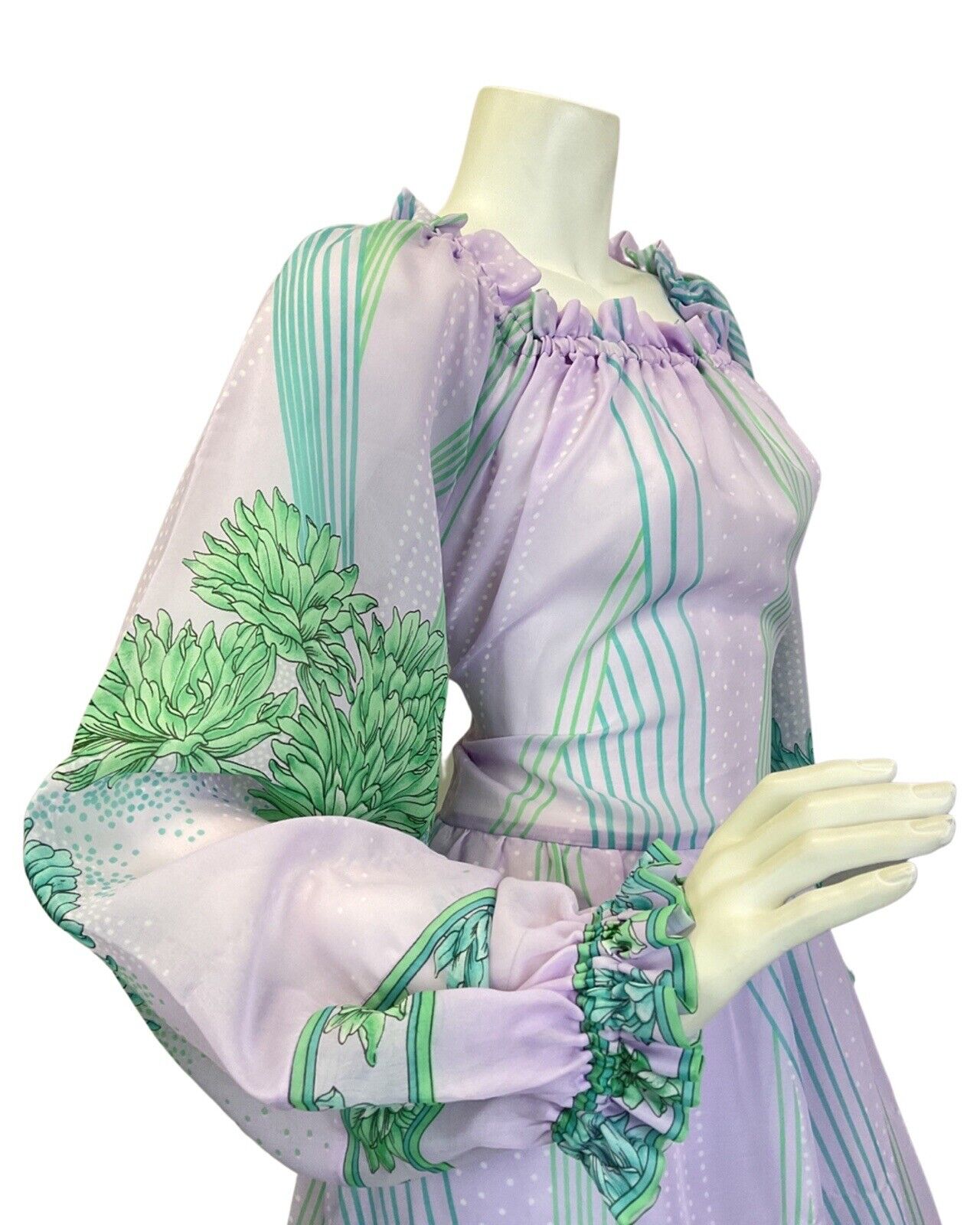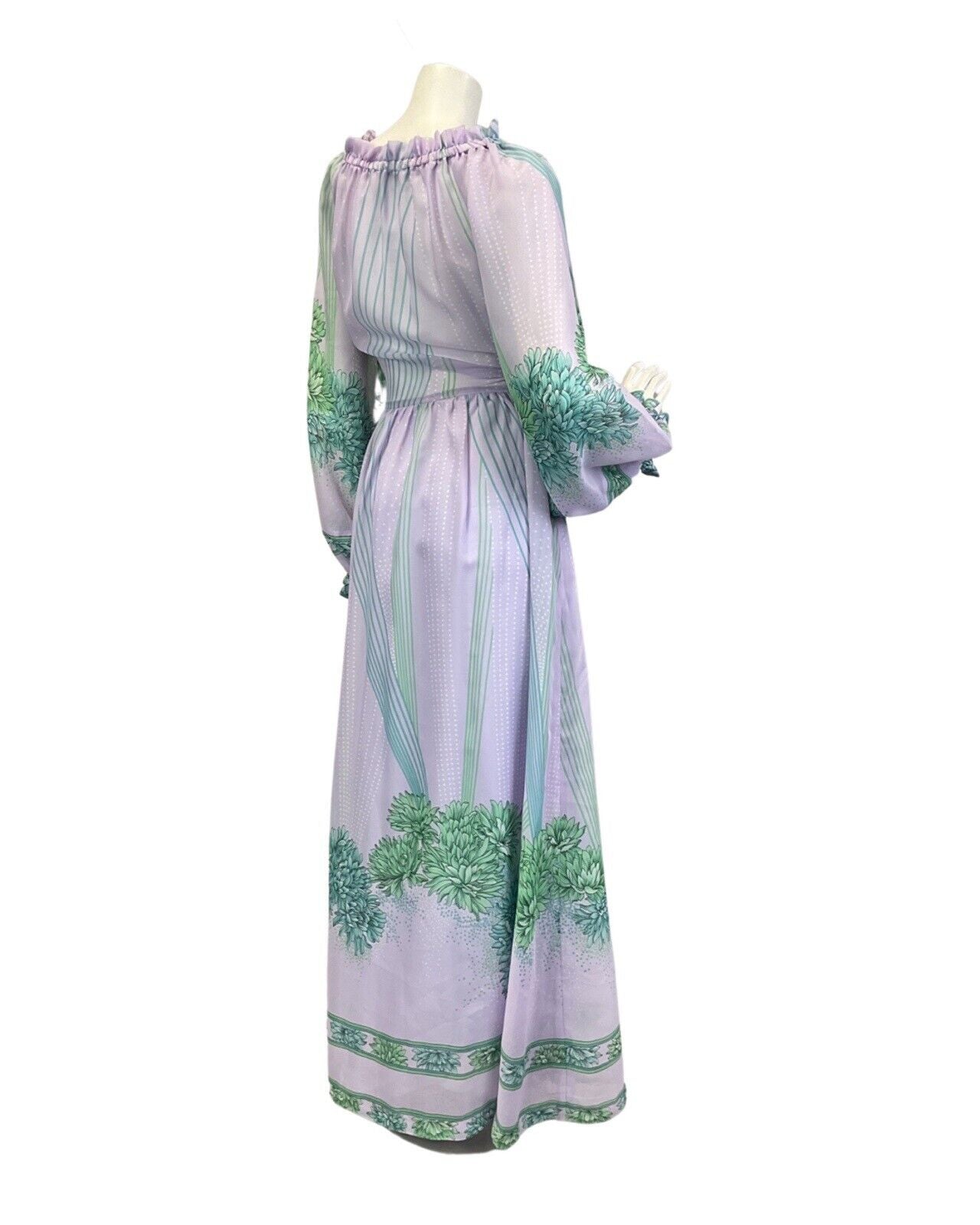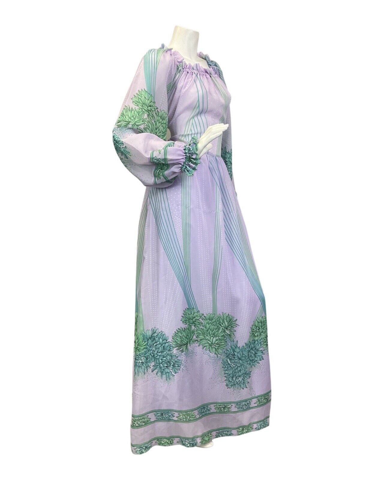 VINTAGE 60s 70s LILAC GREEN BLUE FLORAL BOHO PRAIRIE SUMMER MAXI DRESS 10 12