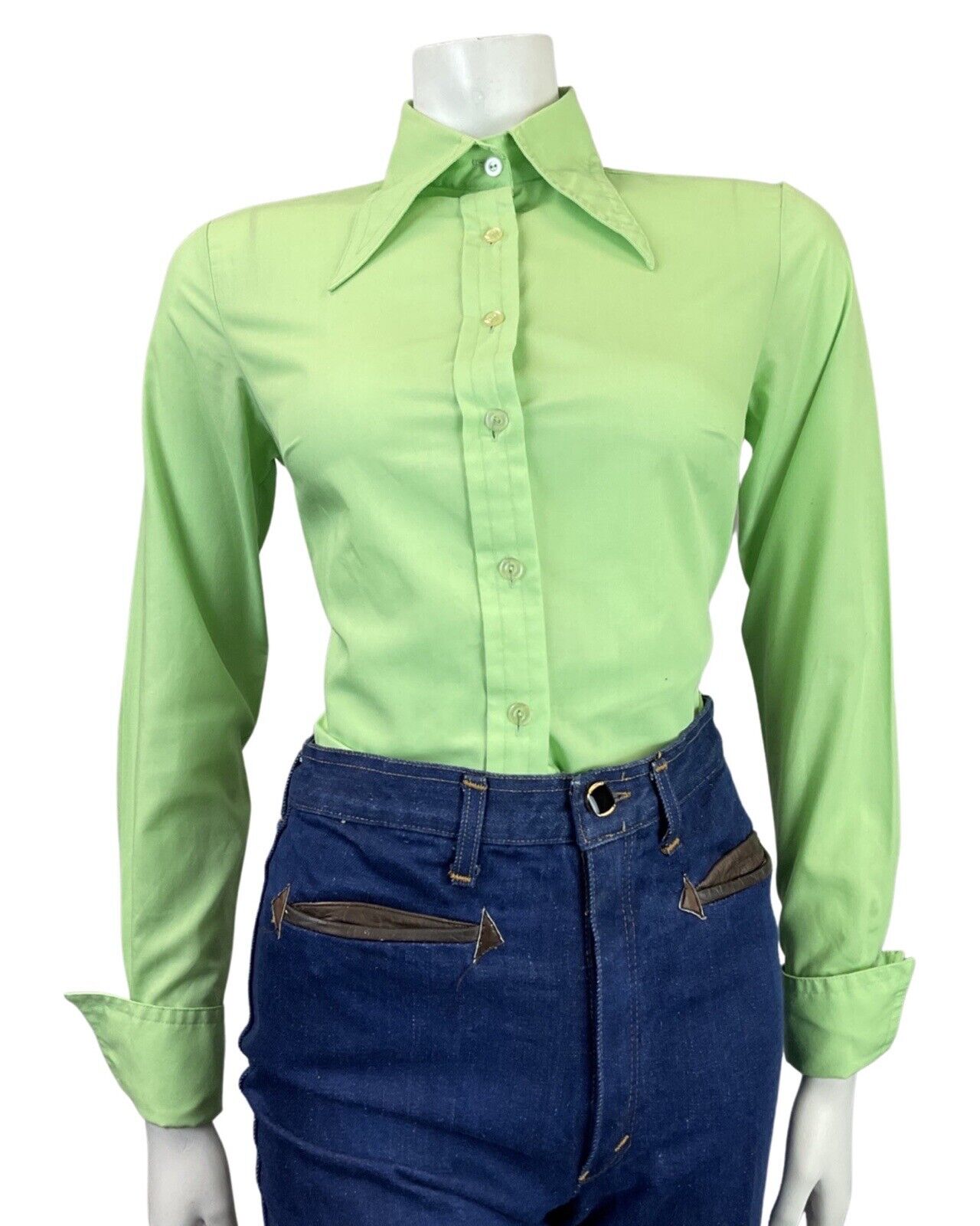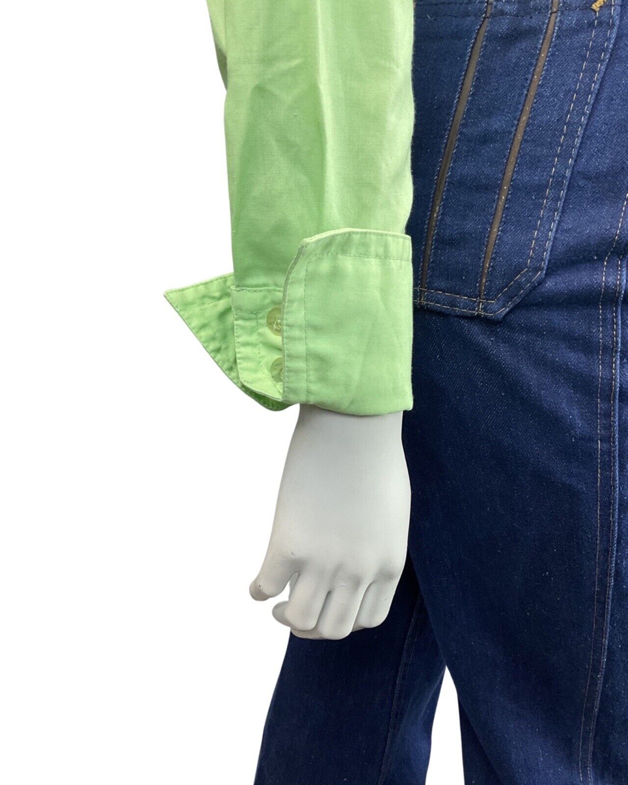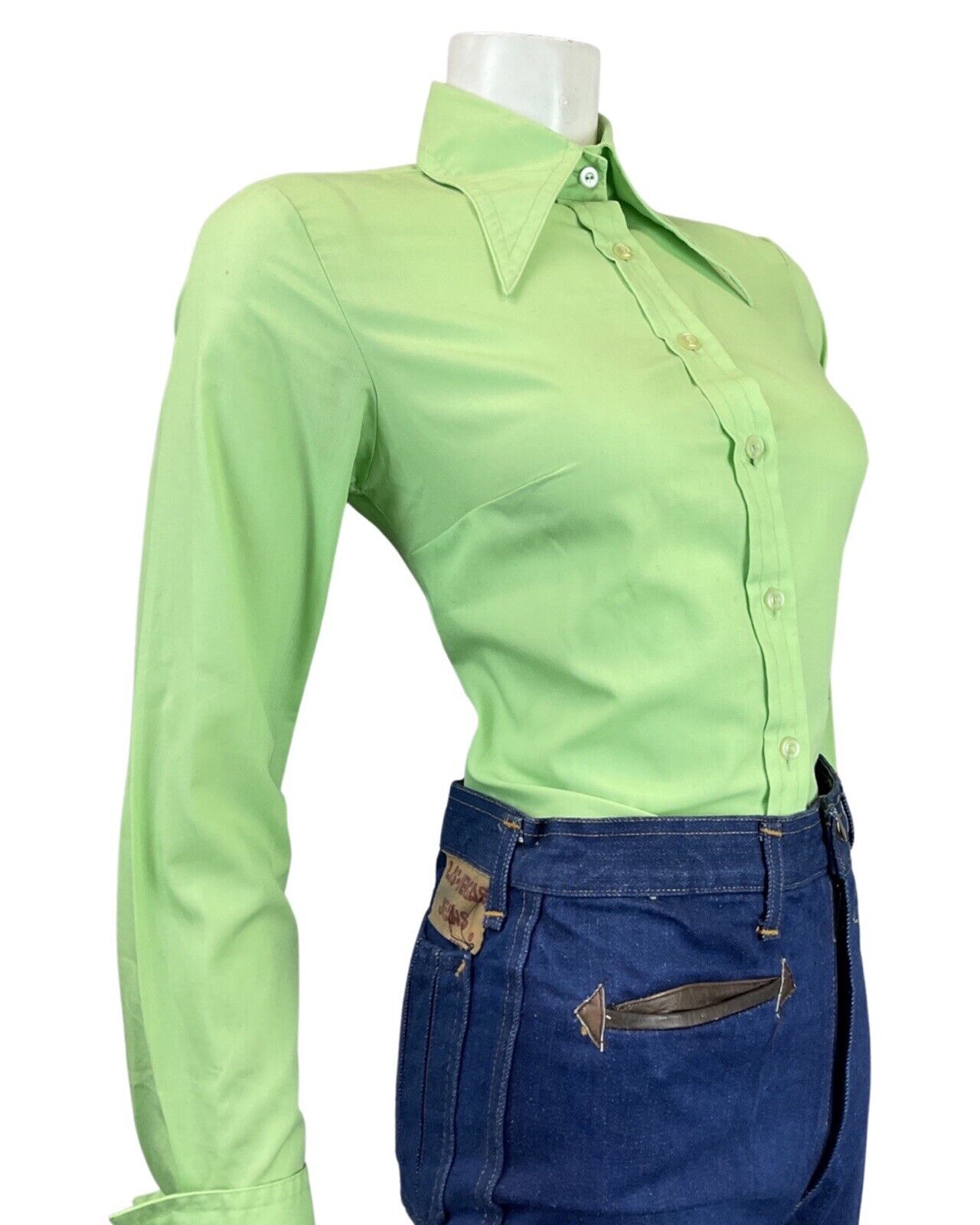 VINTAGE 60s 70s LIME GREEN MOD FRENCH CUFF DAGGER COLLAR SHIRT 10