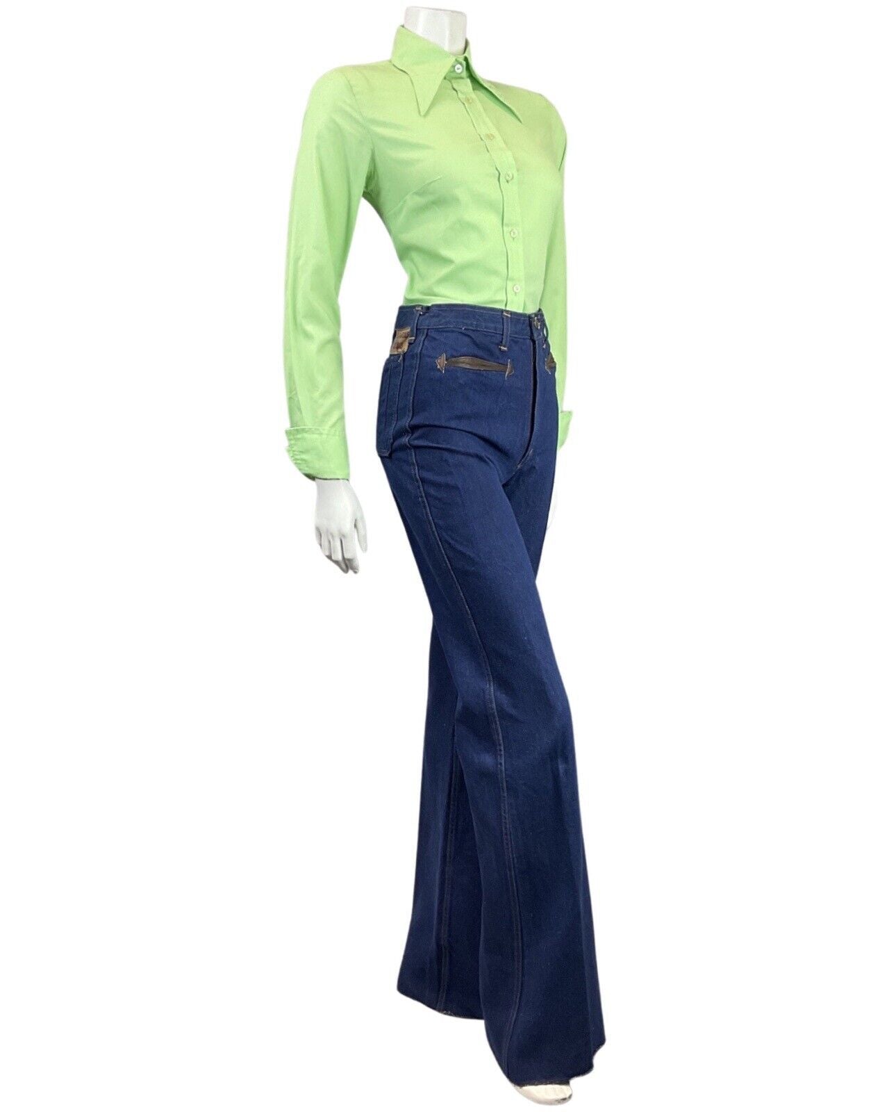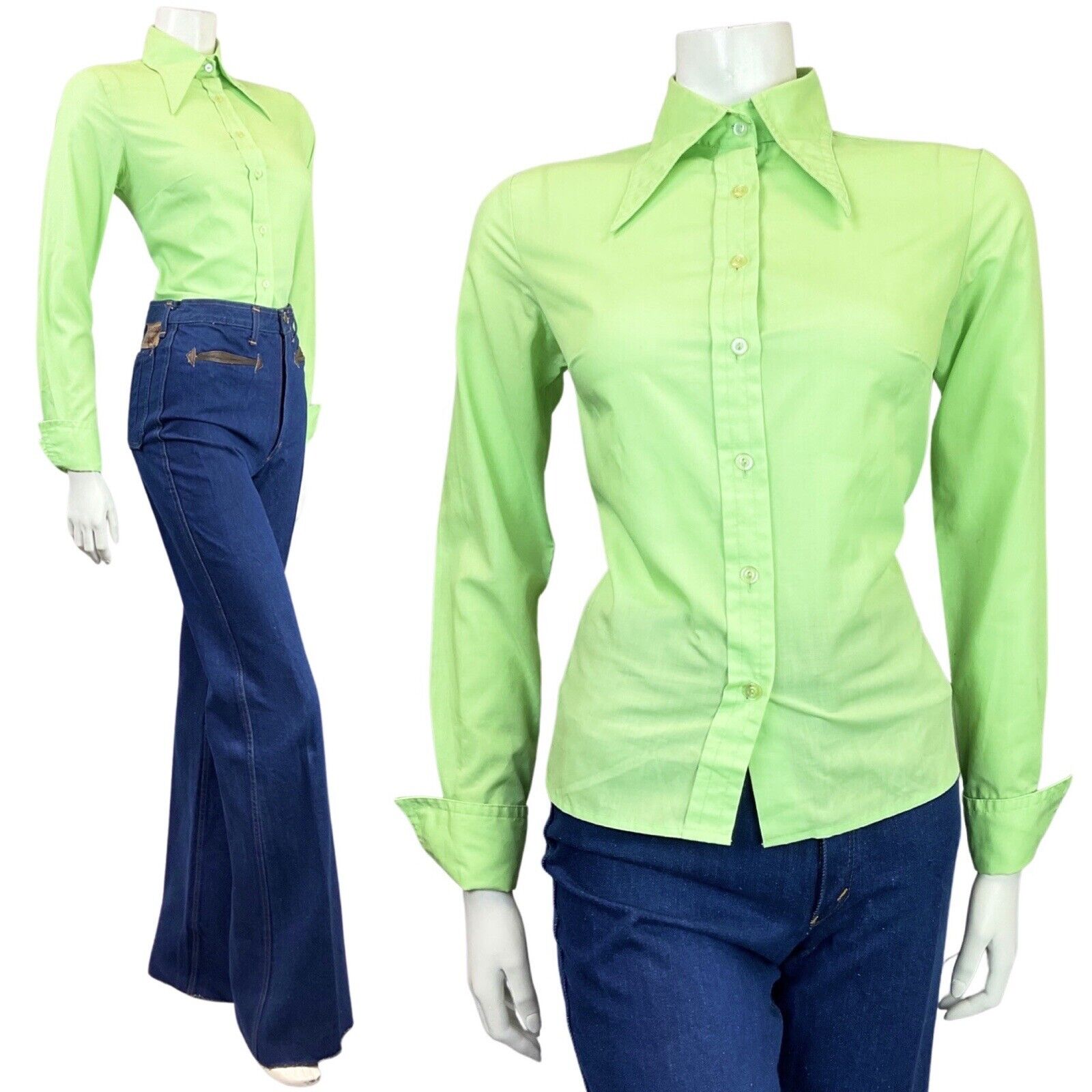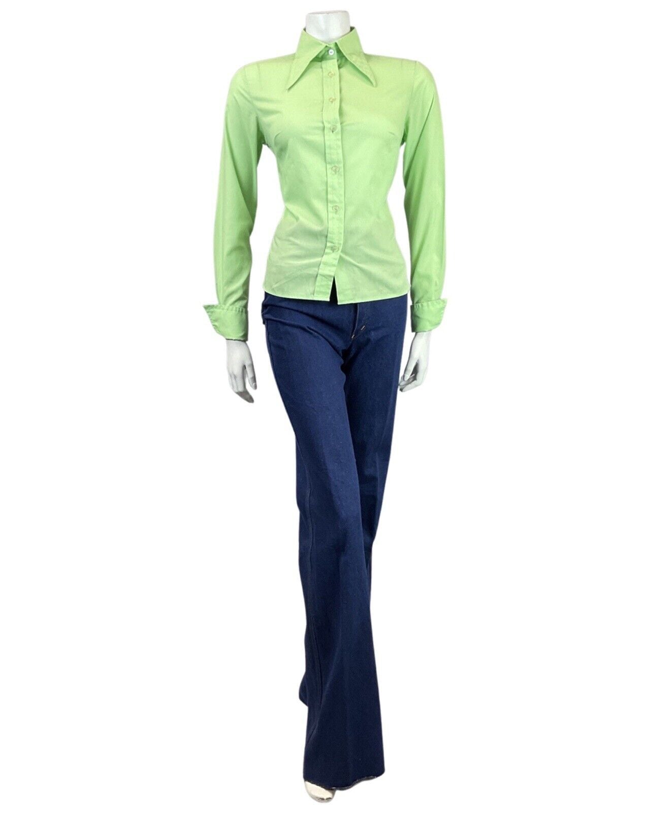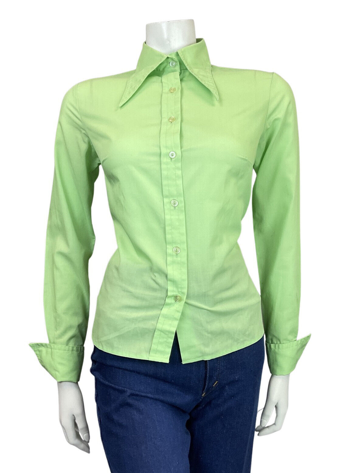 VINTAGE 60s 70s LIME GREEN MOD FRENCH CUFF DAGGER COLLAR SHIRT 10