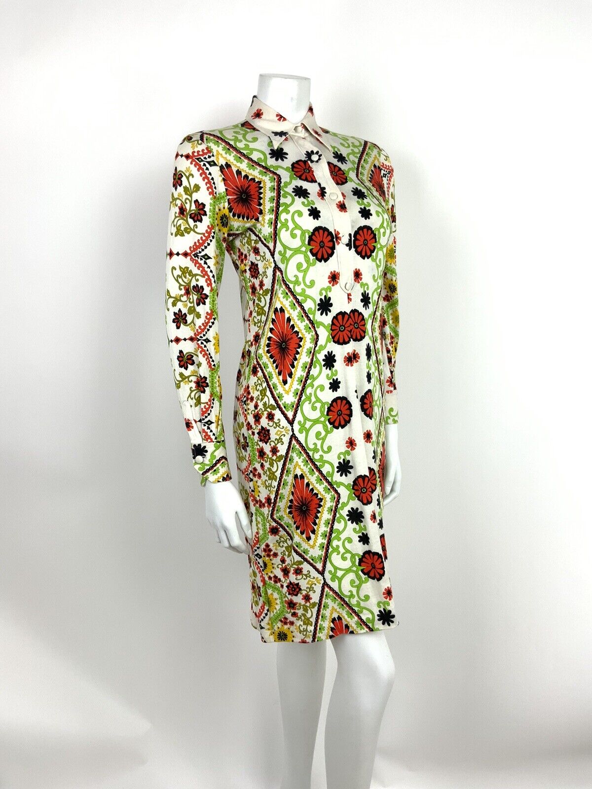 VINTAGE 60s 70s LIME GREEN ORANGE BLACK YELLOW WHITE PSCHEDELIC DRESS 8 10