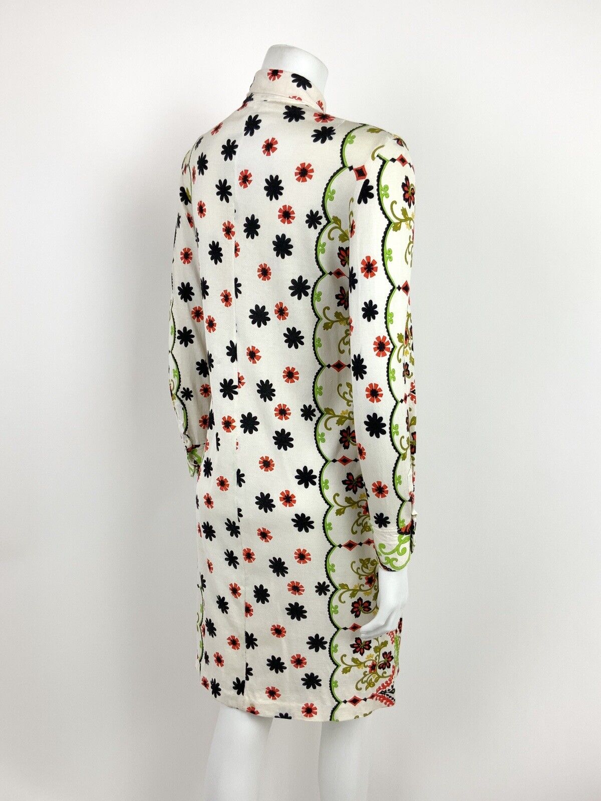 This is an amazing vintage shirt dress made from a soft polyester fabric with a good amount of stretch to it. This dress would best fit: 10 please check your measurements against the ones provided below, Bust: 37" Waist: 34" Hips: 40" Length: 35" PLEASE NOTE: This garment has been measured flat and doubled for bust (armpit to armpit), waist and hip measurements, we measure the length down the back of the dress, measurements may differ slightly due to dress styles and fabrics. We ignore any existing size labels as vintage brands differed so much. Items shown on our mannequin may be clipped to fit. This garment is true vintage so please be aware there may be some signs of wear as expected from a garment of this age. We do not list stains to area likes linings that are hidden or things that can bearly be seen without close inspection. These can include pin holes, small marks, light piling. We hand pick our items to make sure they are in great condition and fully wearable and we reject anything of poor condition. The majority of our items are 40-70 years old. If you think we've missed something significant please get in touch, we are only human and we lose transaction fees on returns so we don't skip things on purpose. CHECK OUT OUR OTHER ITEMS, WE LIST EVERY WEEK! |