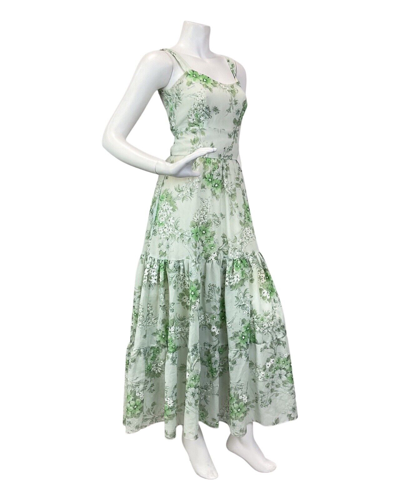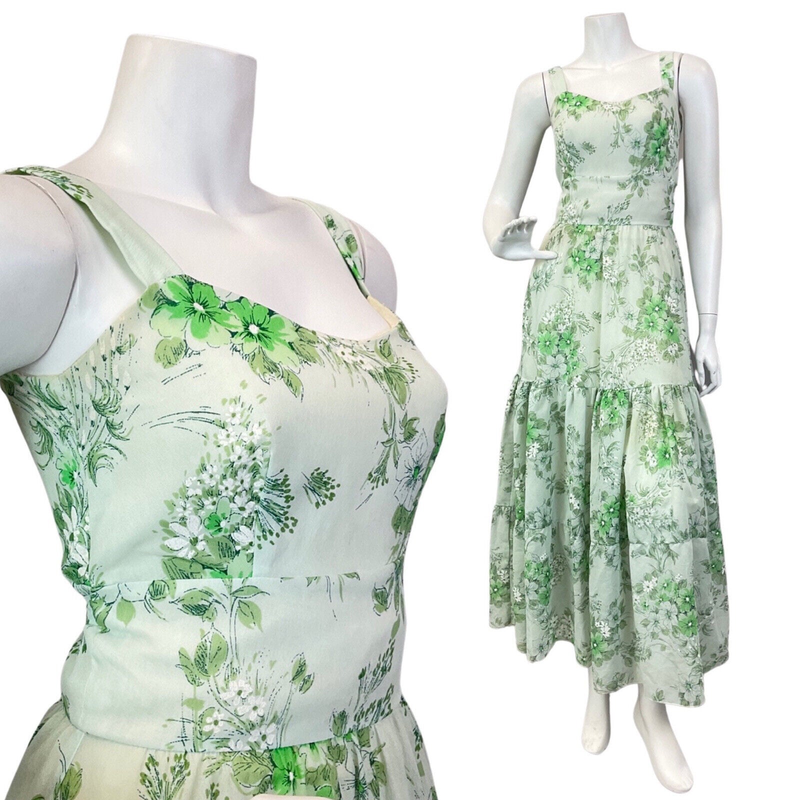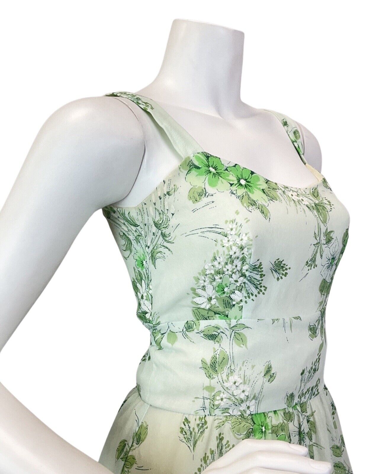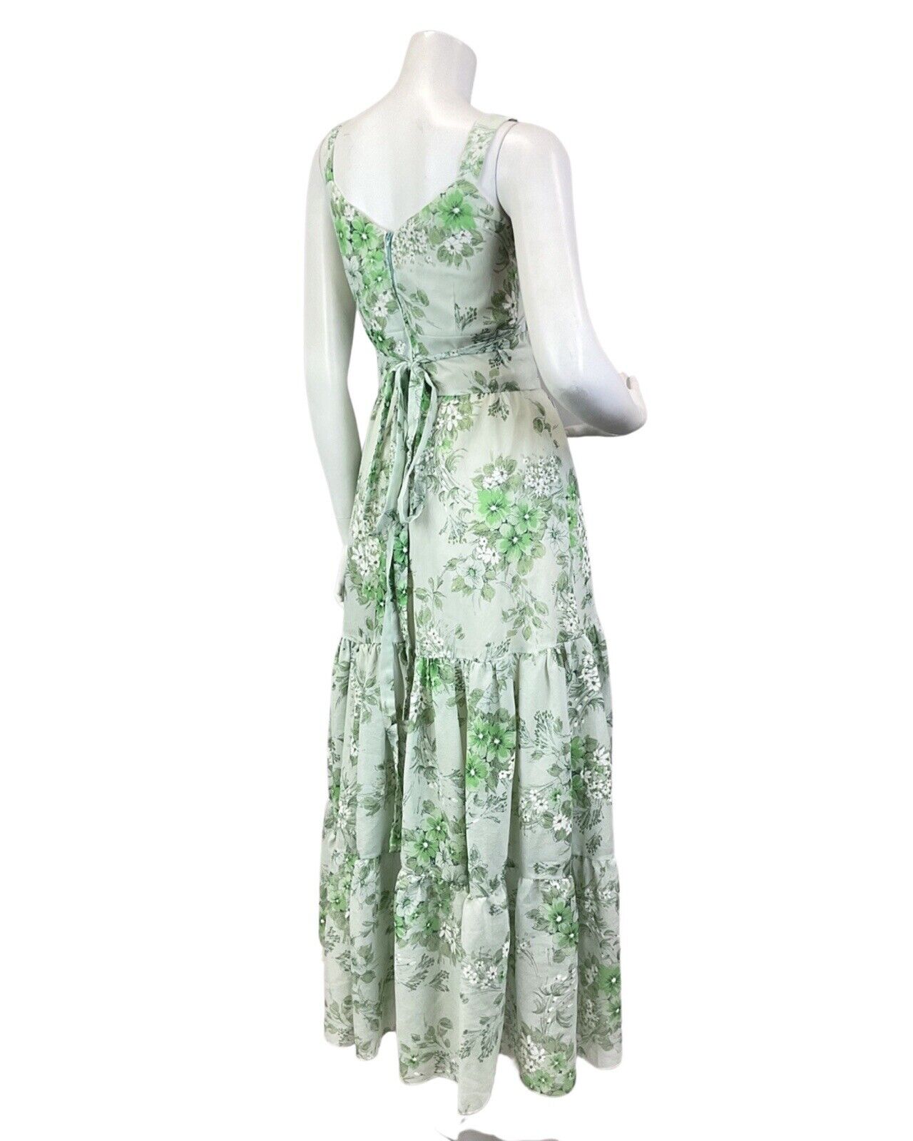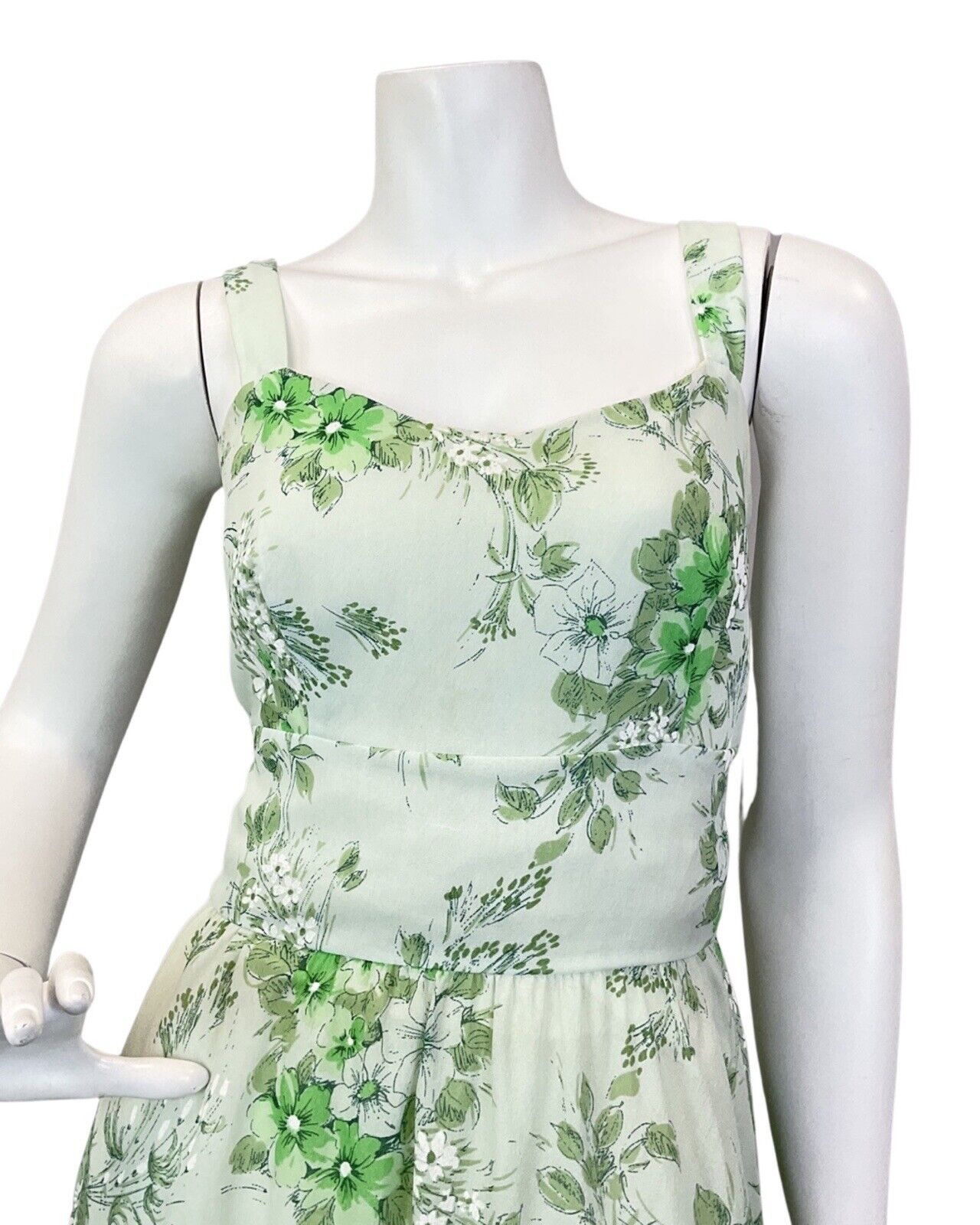 VINTAGE 60s 70s MINT GREEN FLORAL BOHO STRAPPY SUMMER MAXI DRESS 4