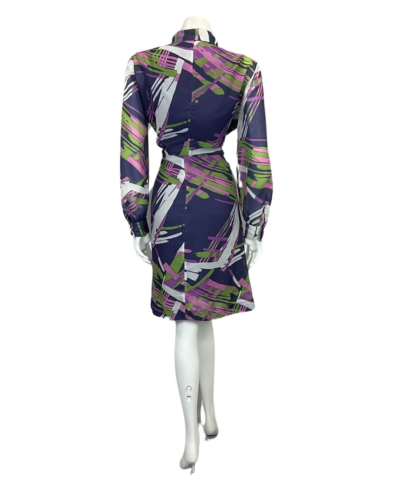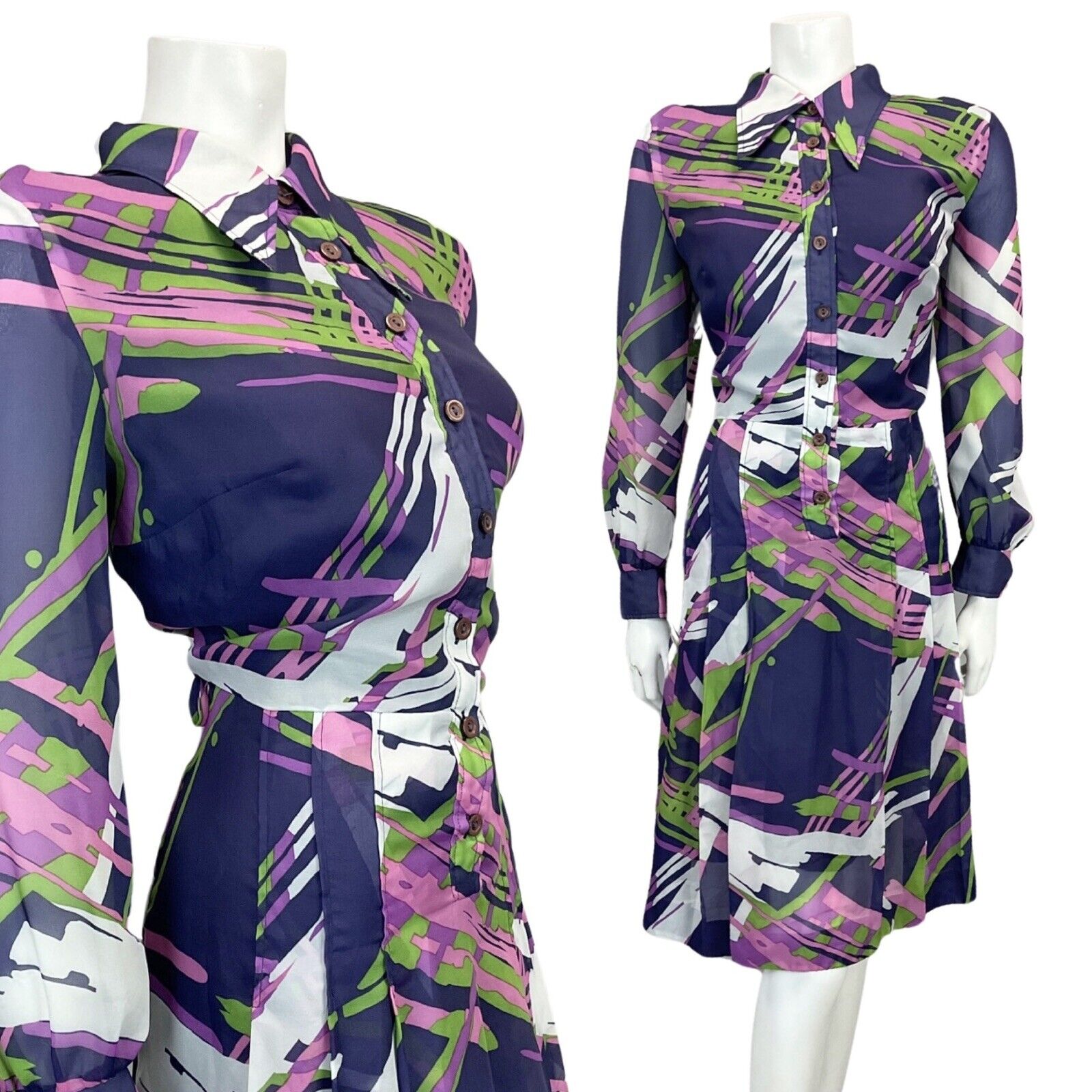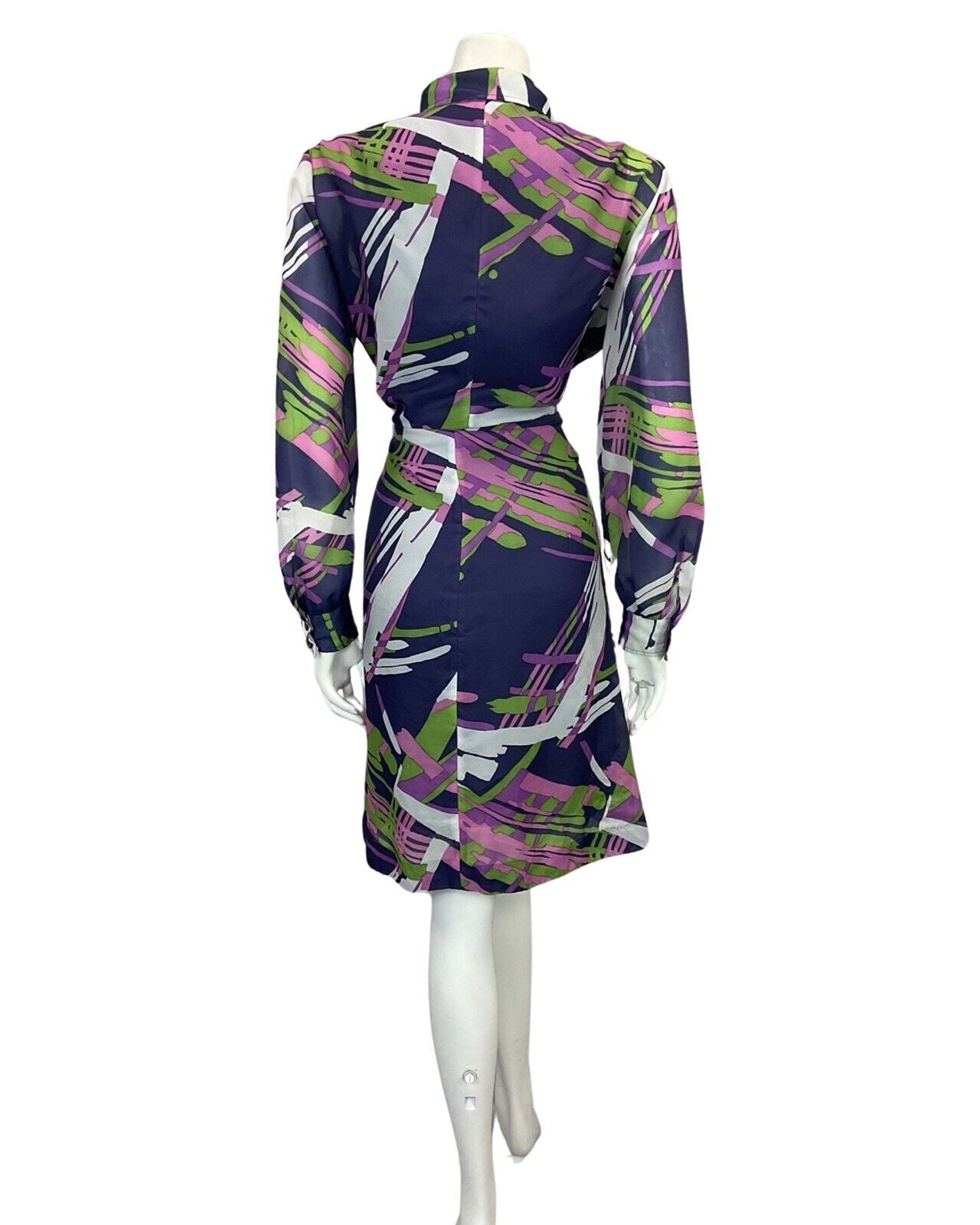 VINTAGE 60s 70s NAVY BLUE GREEN PURPLE PLEATED MIDI MOD DRESS 16