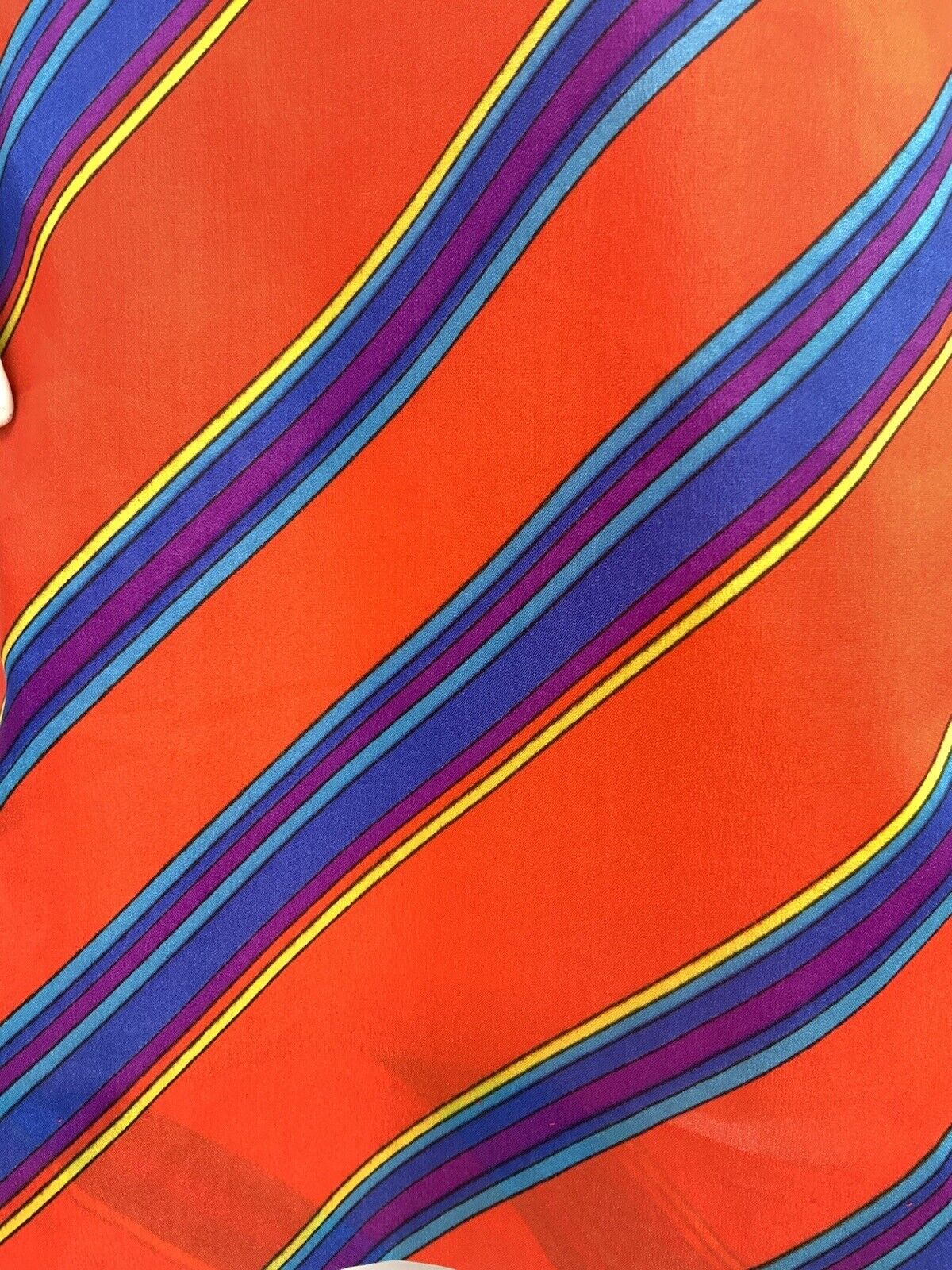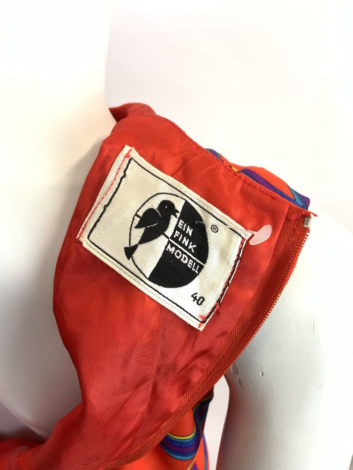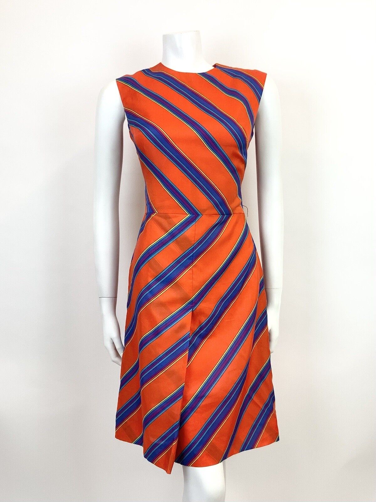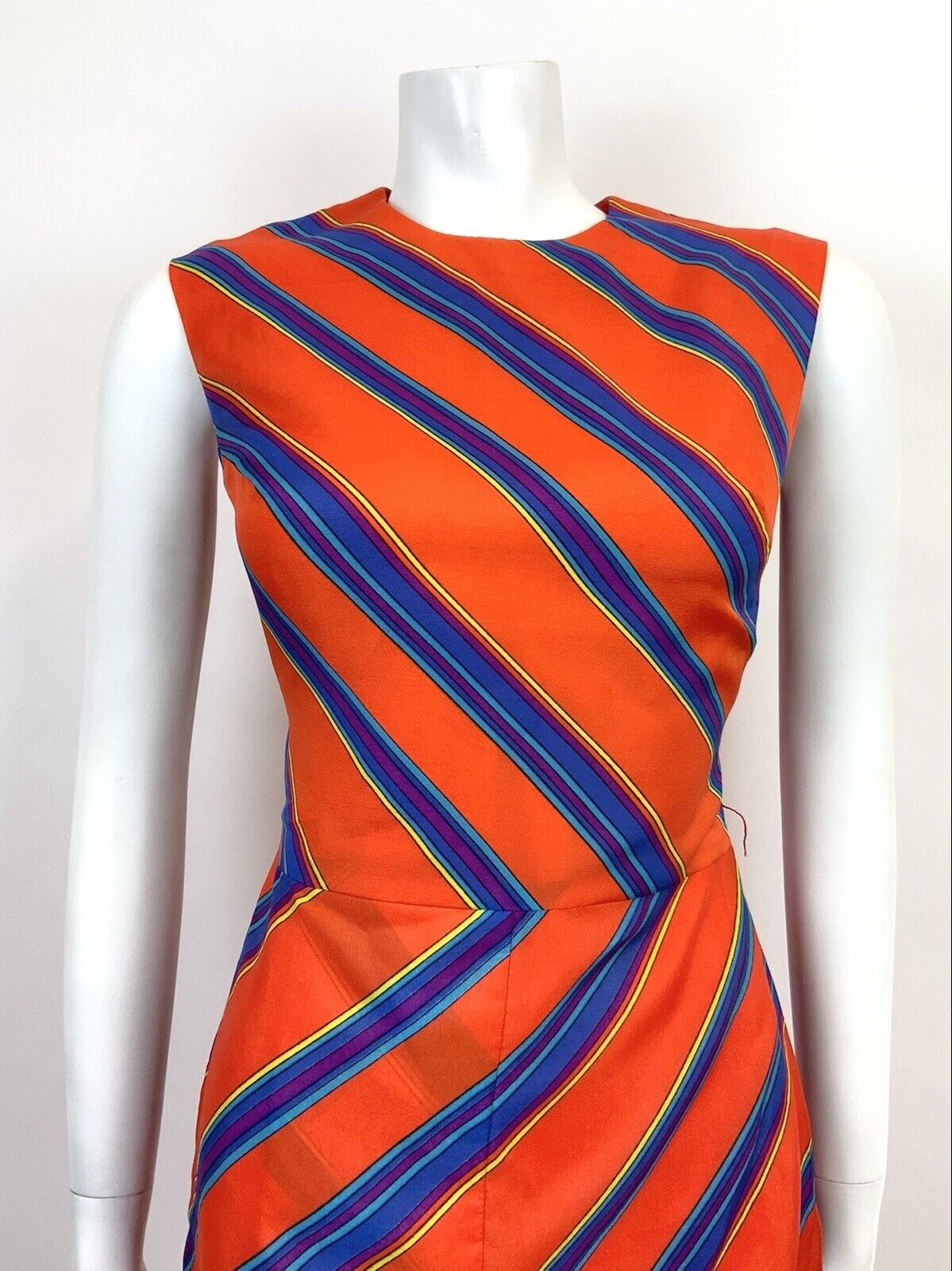 VINTAGE 60s 70s ORANGE BLUE PURPLE STRIPED GEOMETRIC SLEEVELESS MOD DRESS 10