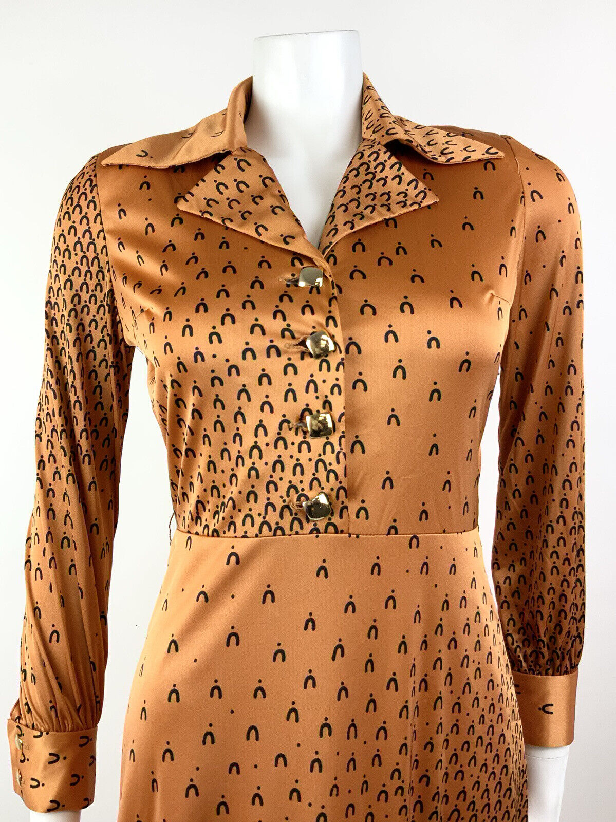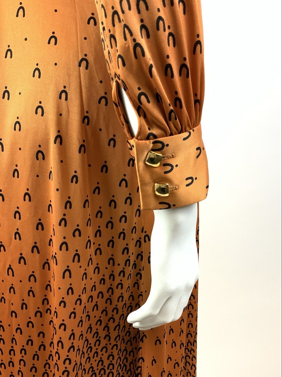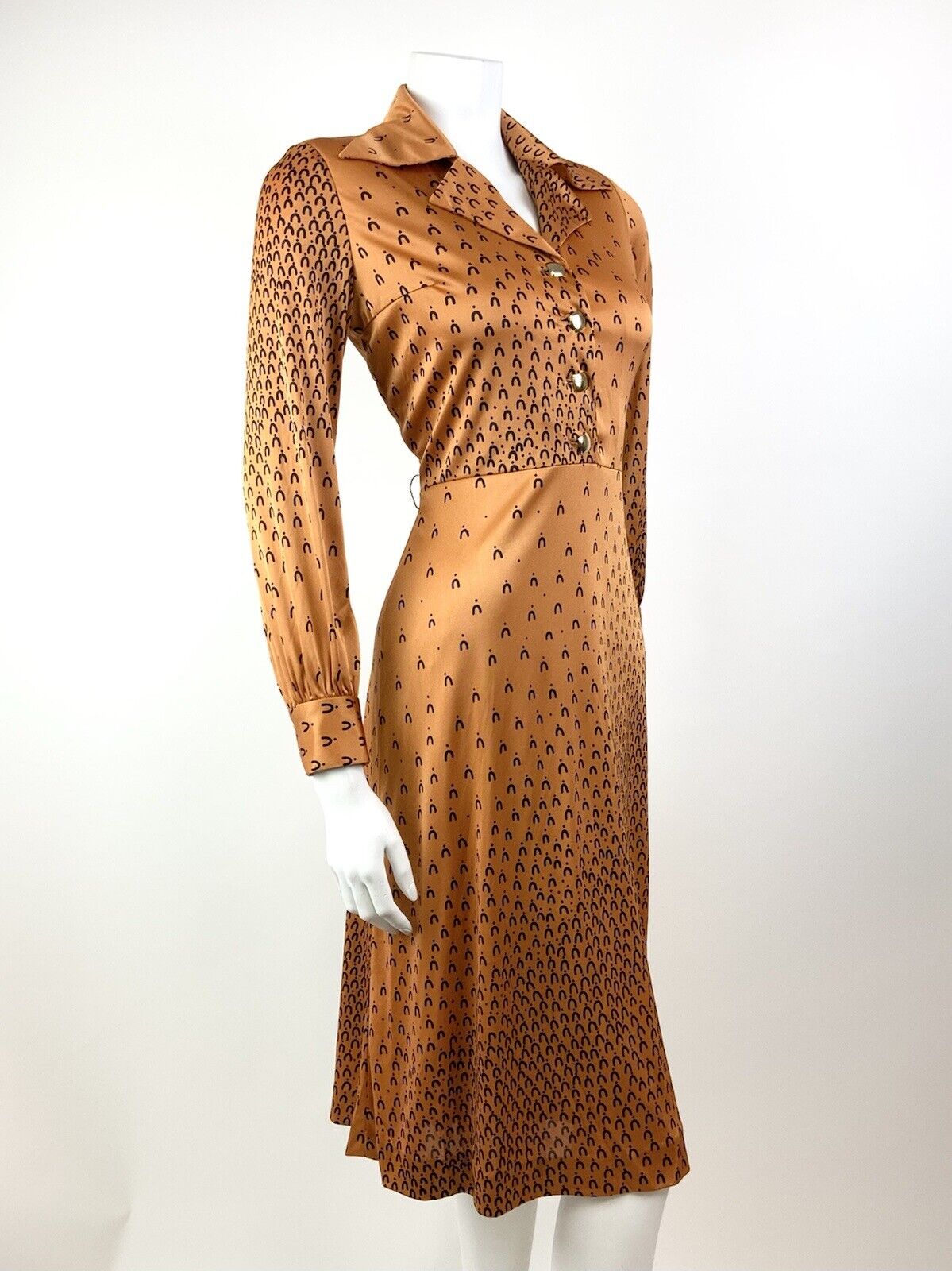 VINTAGE 60s 70s ORANGE BRONZE BLACK GEOMETRIC MOD DAGGER SHIRT DRESS 8 10