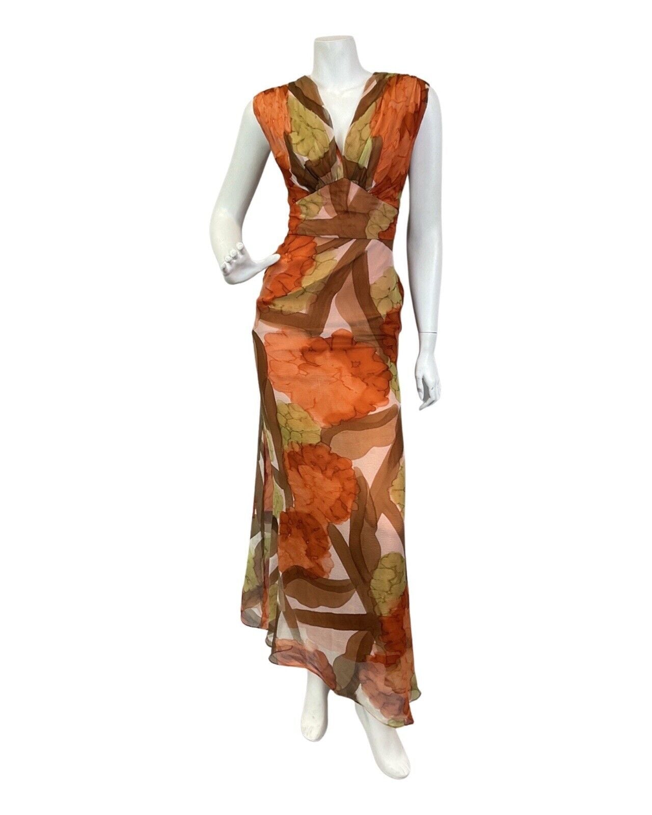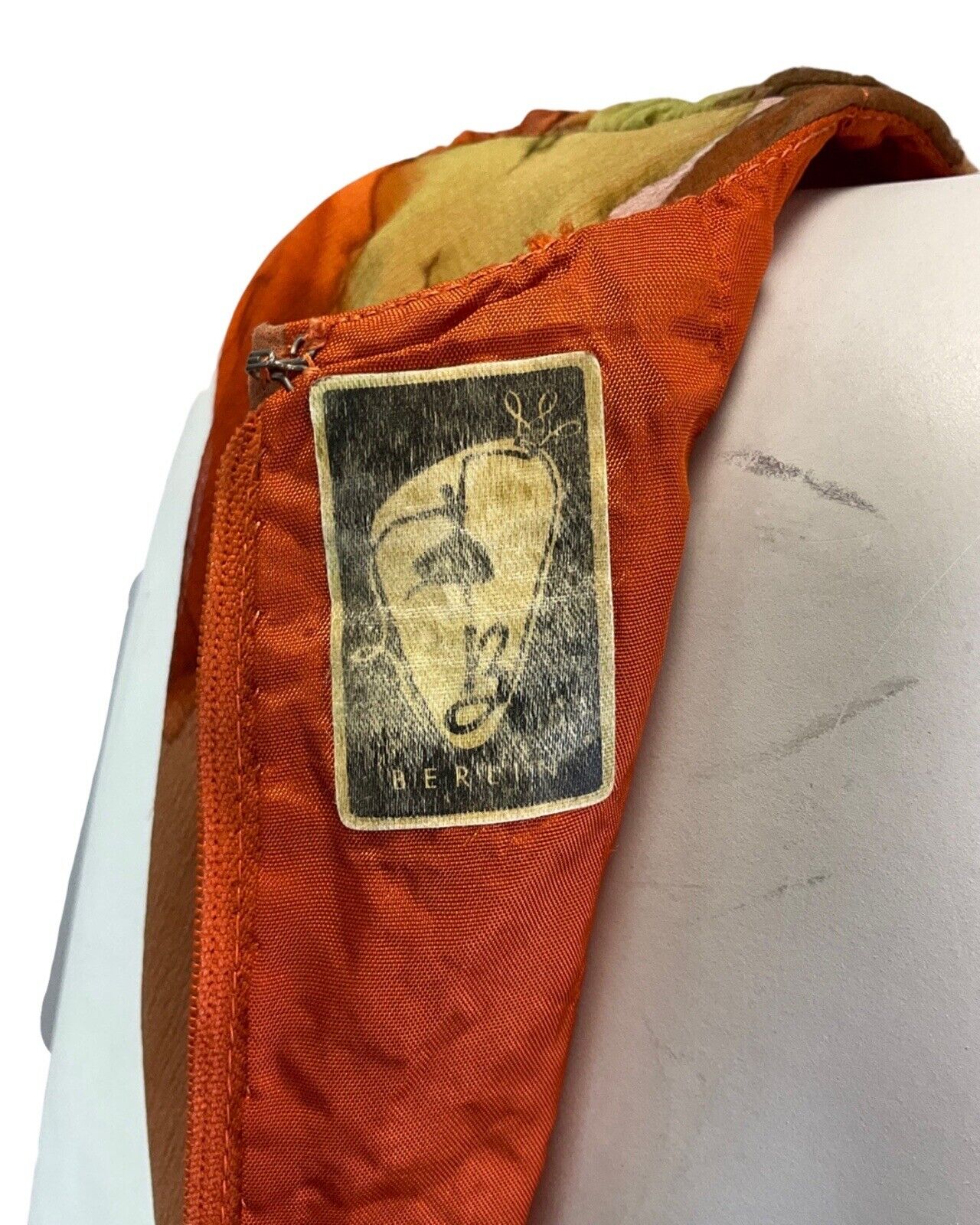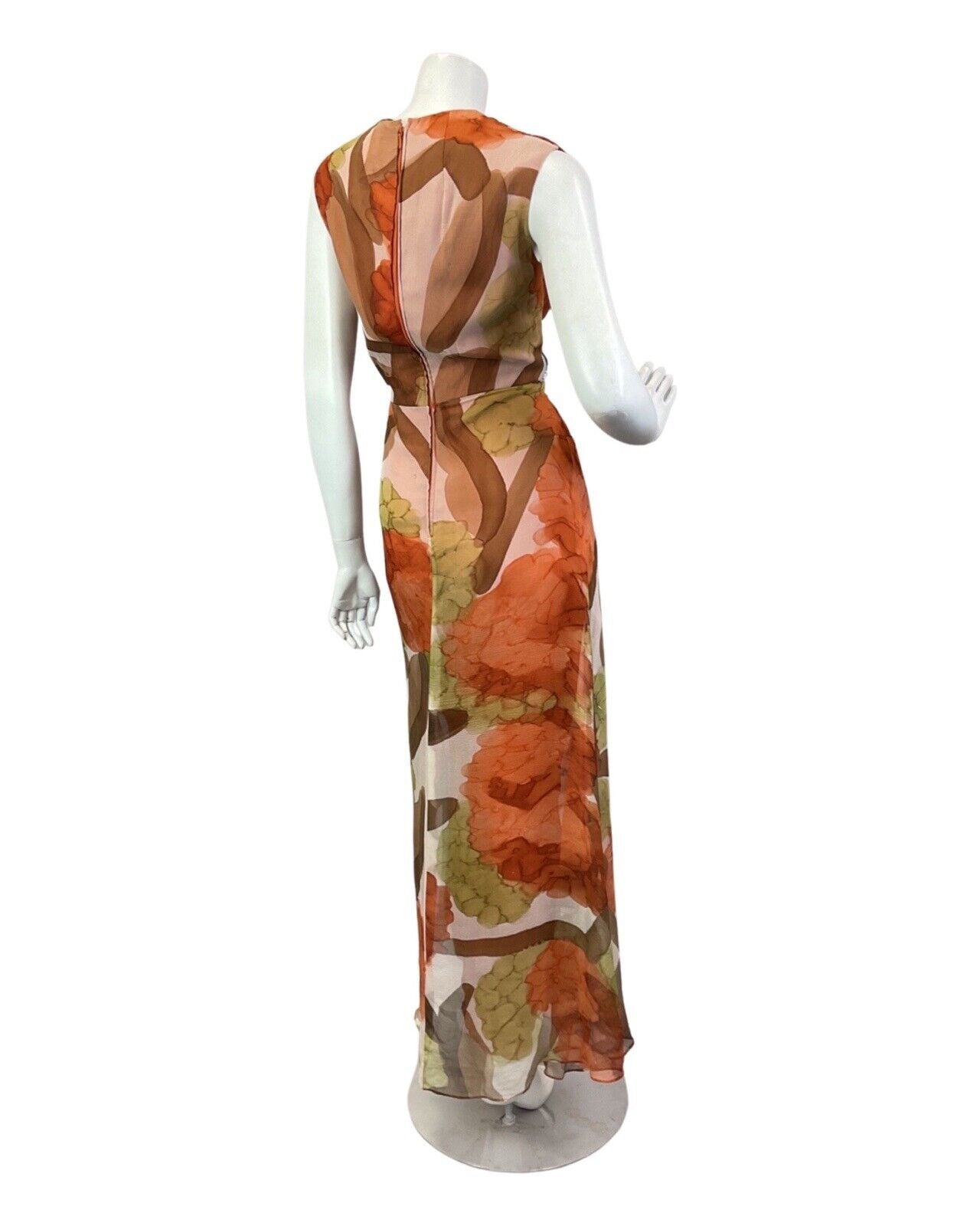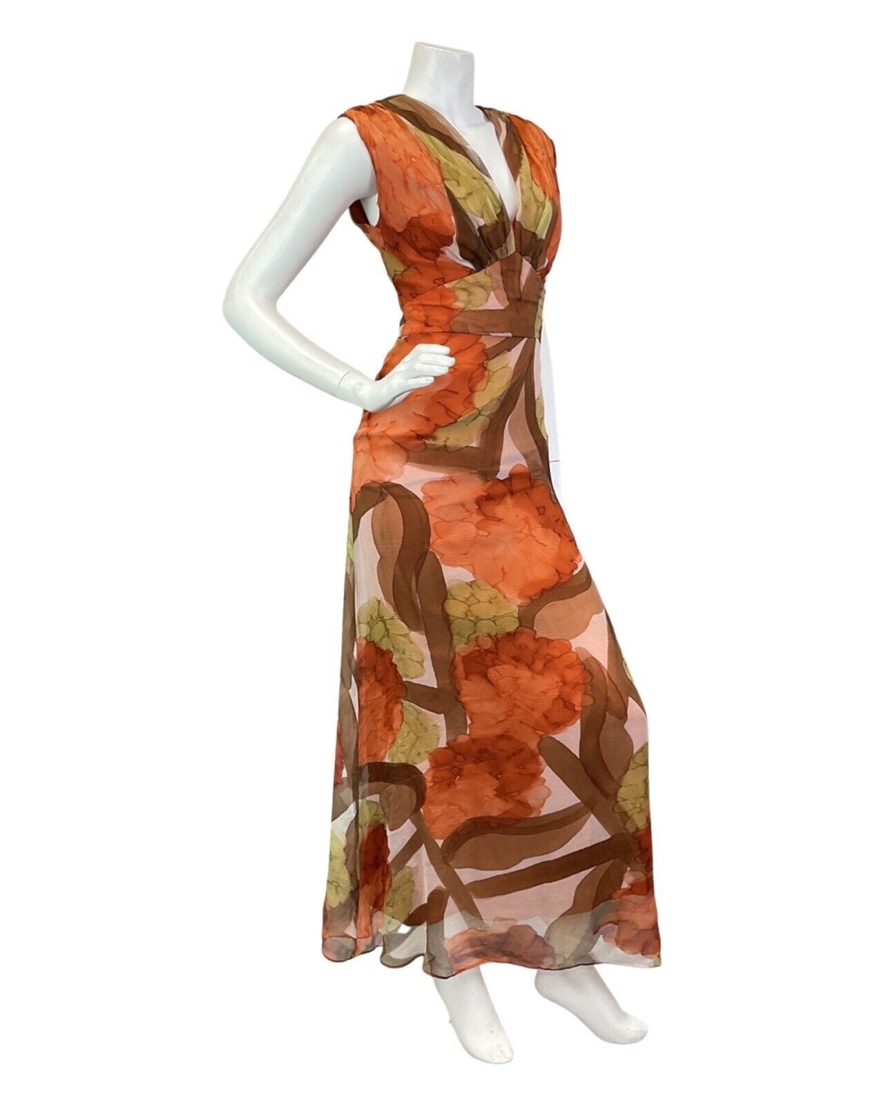 VINTAGE 60s 70s ORANGE BROWN GREEN PSYCHEDELIC ABSTRACT SUMMER MAXI DRESS 10