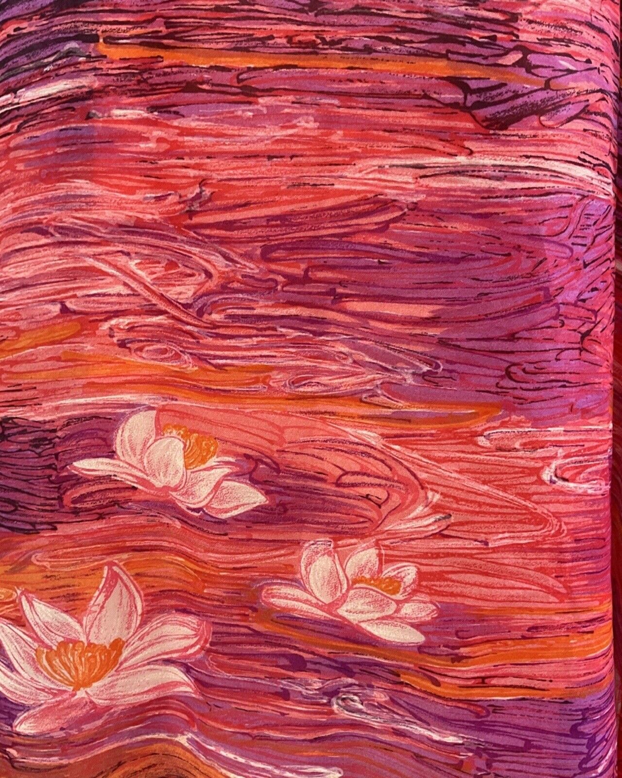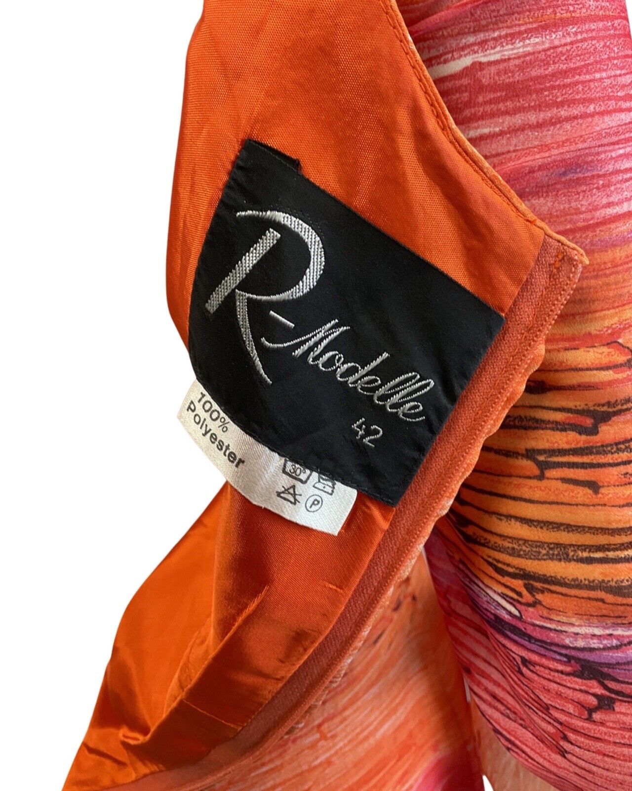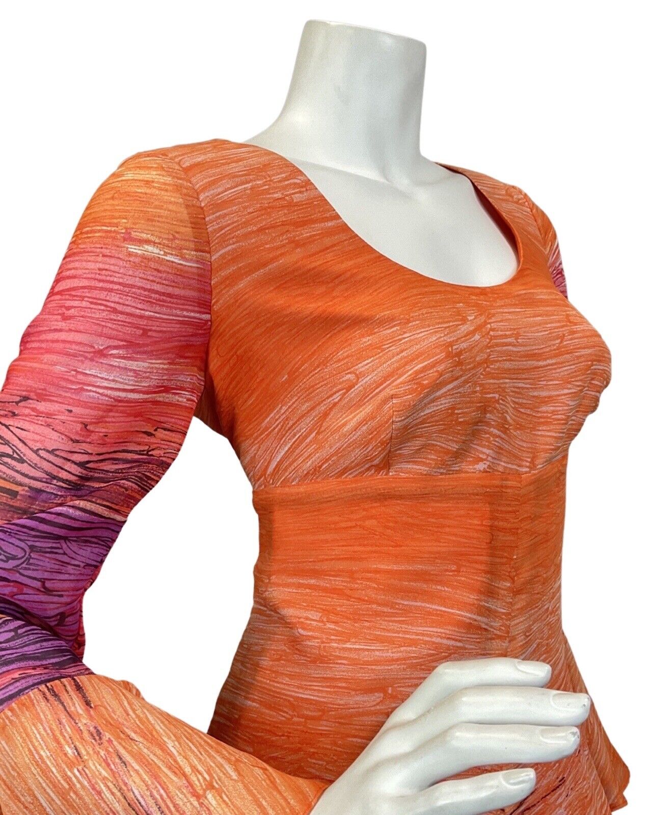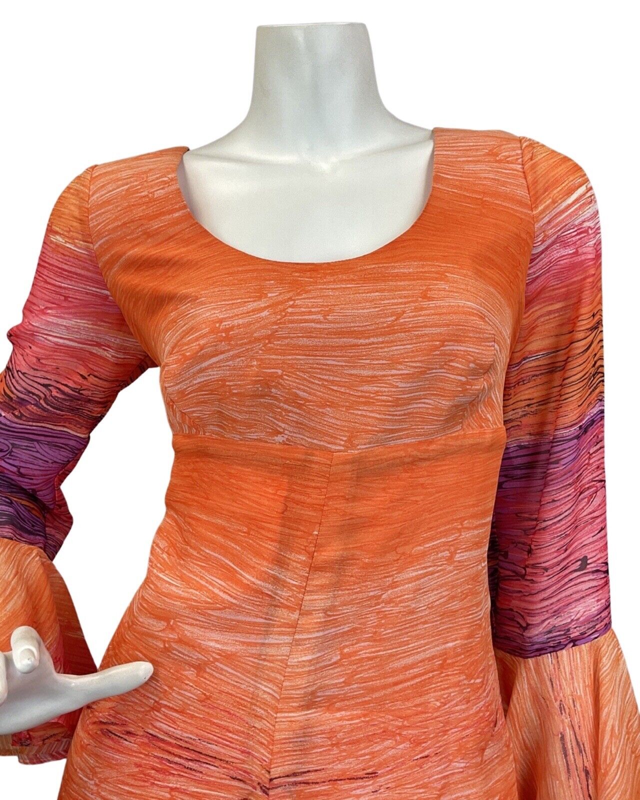 VINTAGE 60s 70s ORANGE PURPLE PINK STRIPED WATERLILY MAXI DRESS 12 14