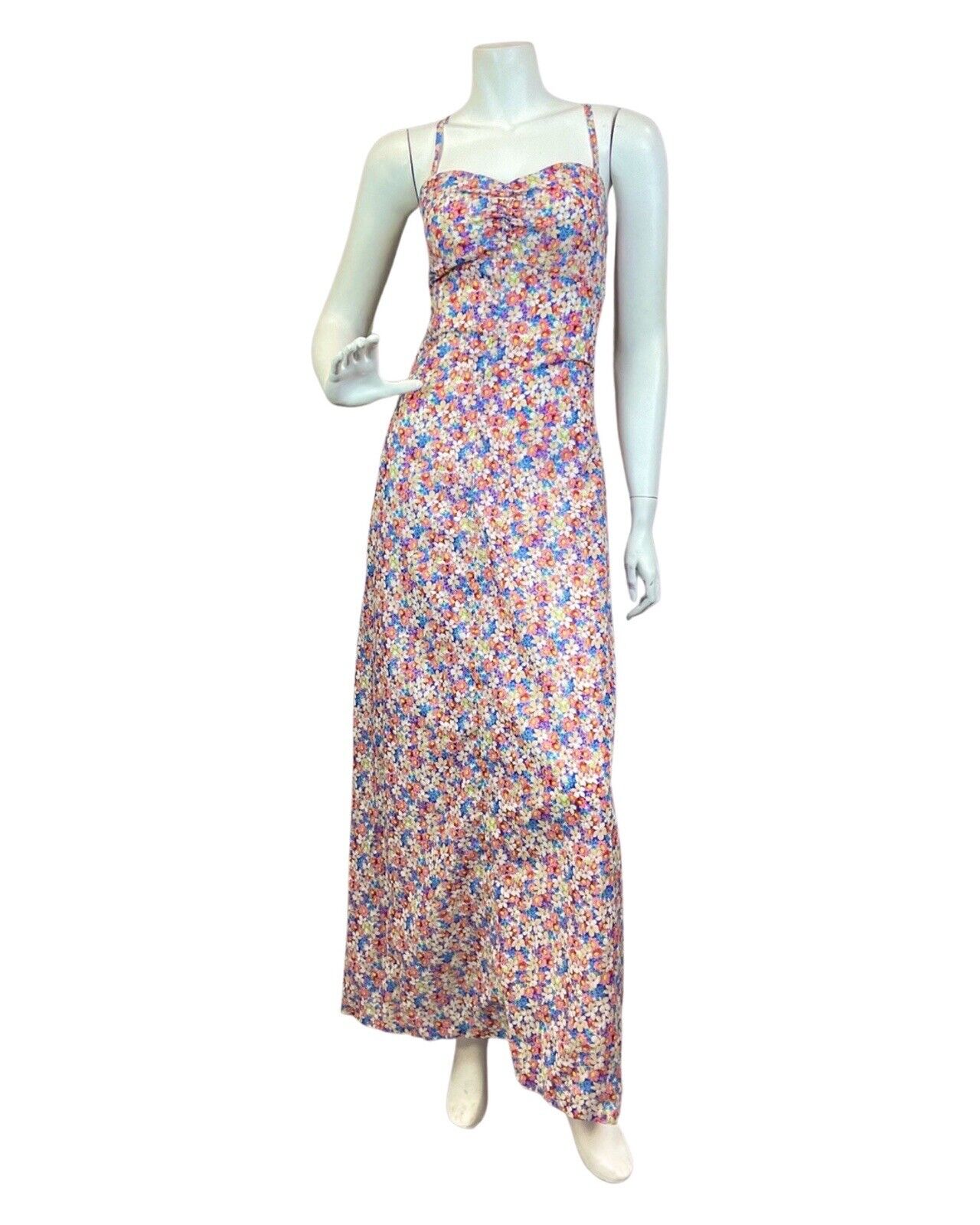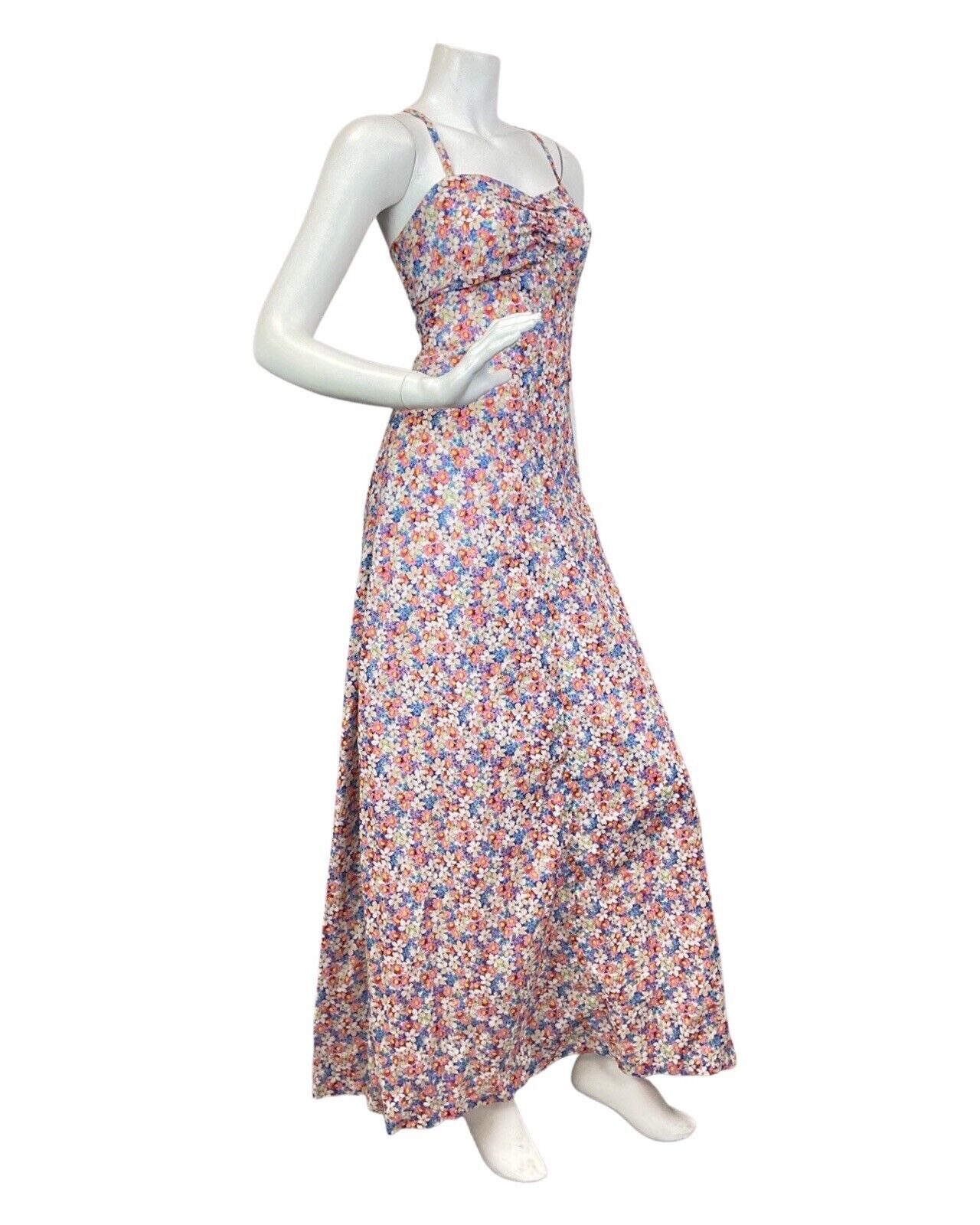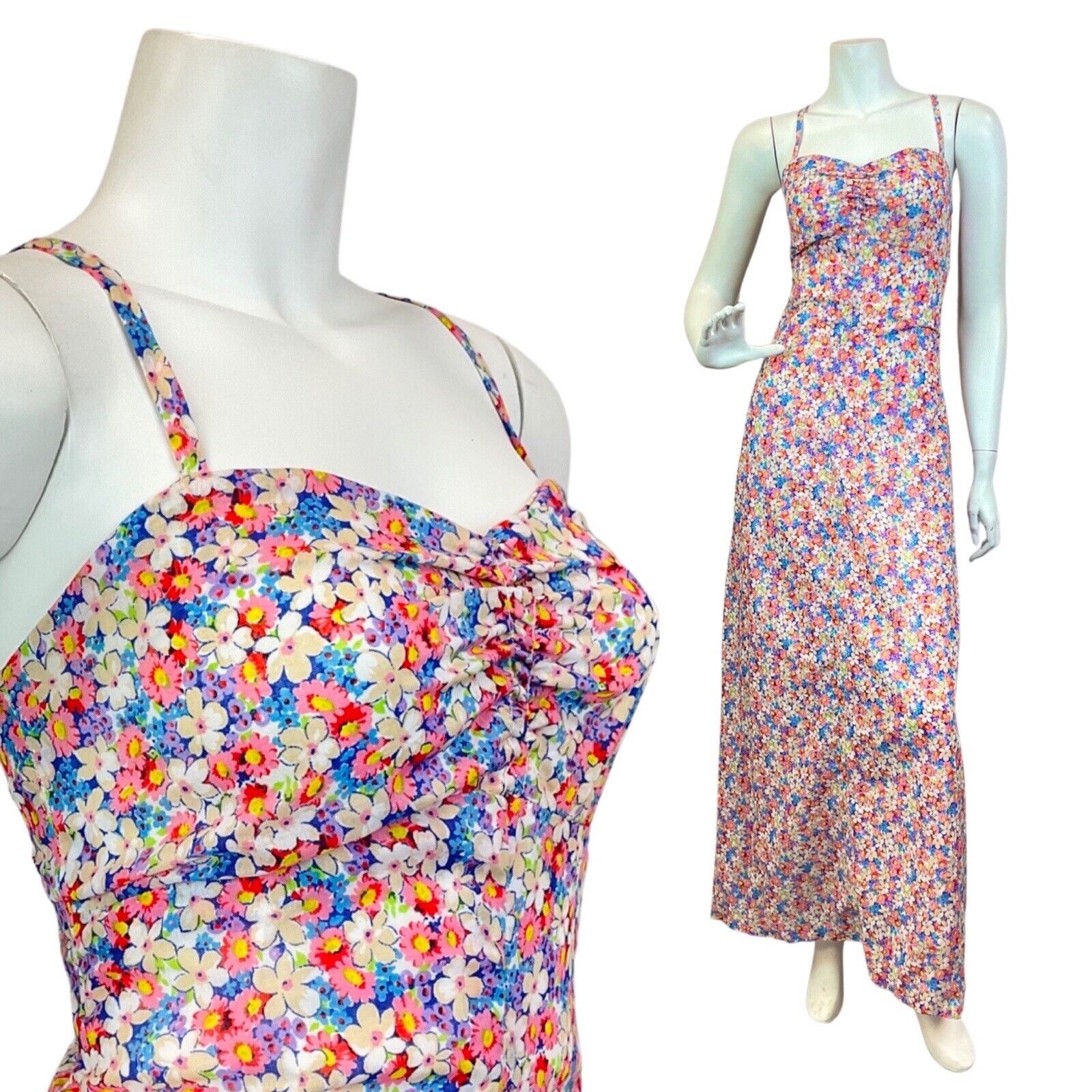 VINTAGE 60s 70s PINK BLUE GREEN DITSY GARDEN FLOWER STRAPPY SUMMER MAXI DRESS 8