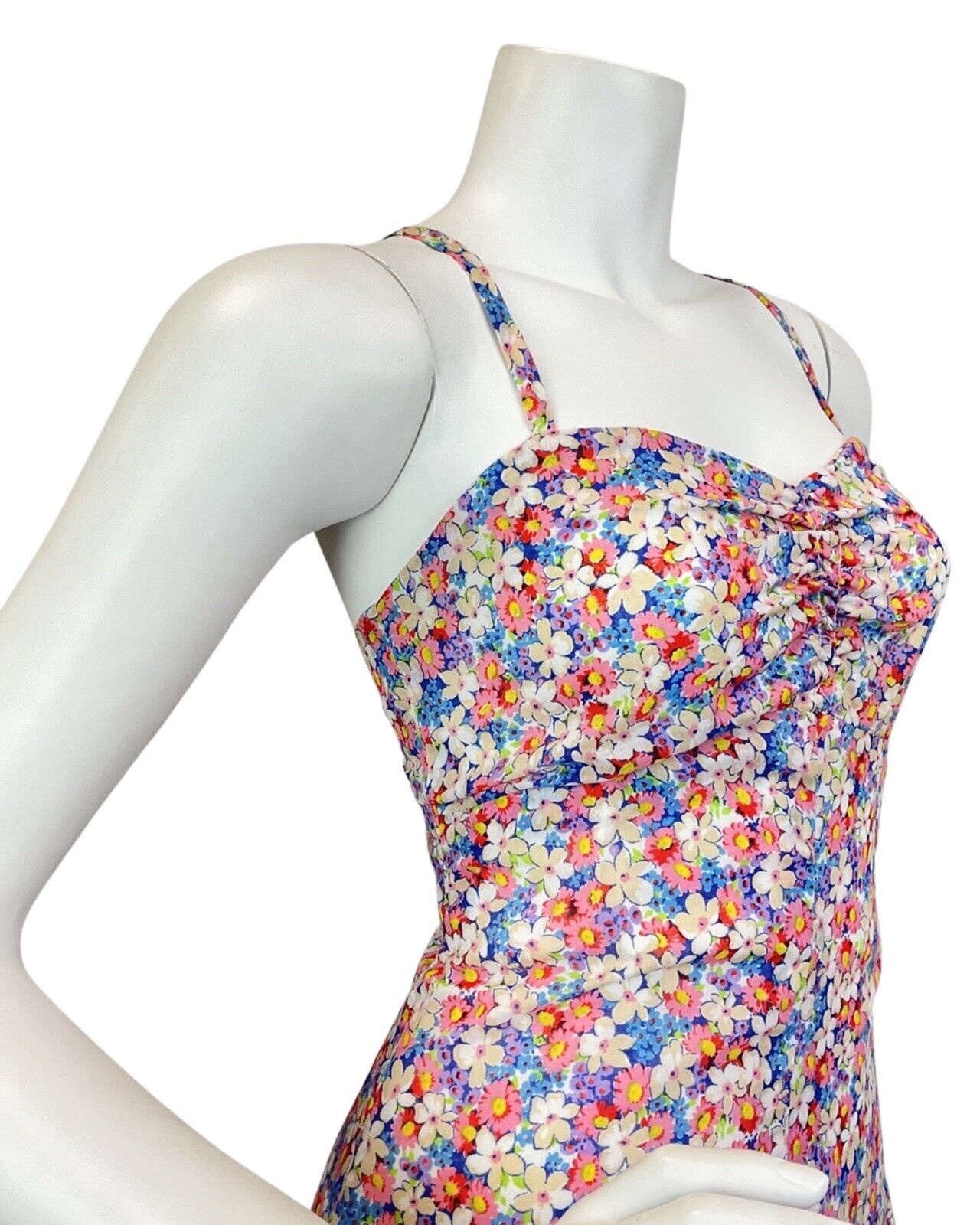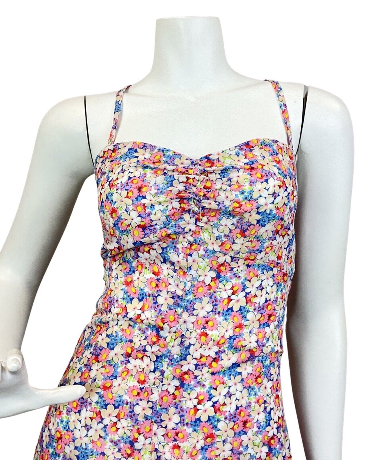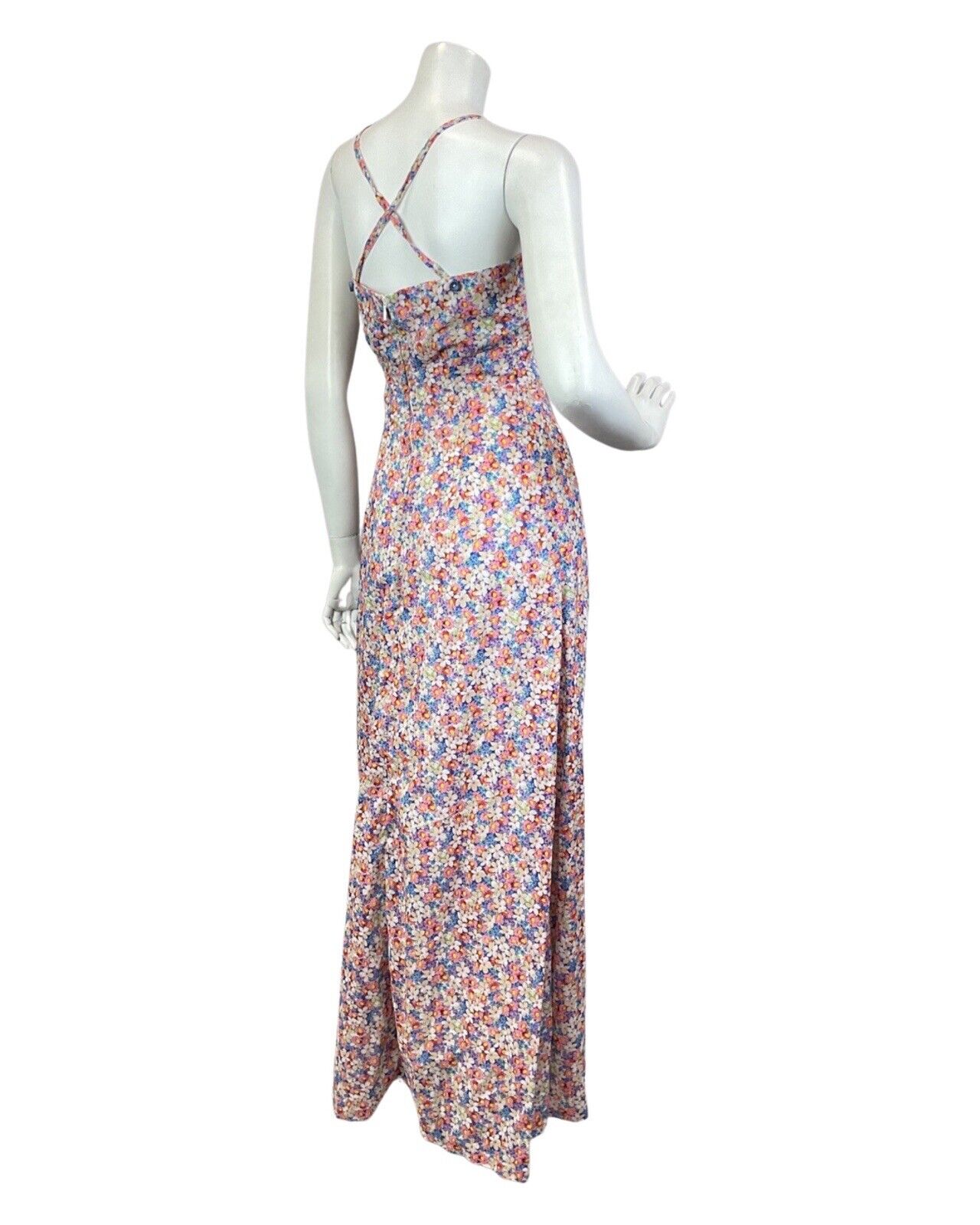 VINTAGE 60s 70s PINK BLUE GREEN DITSY GARDEN FLOWER STRAPPY SUMMER MAXI DRESS 8