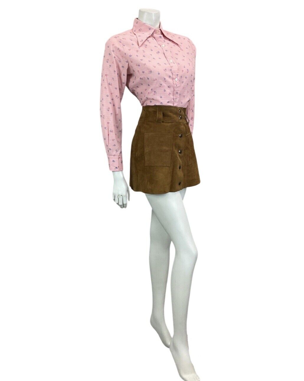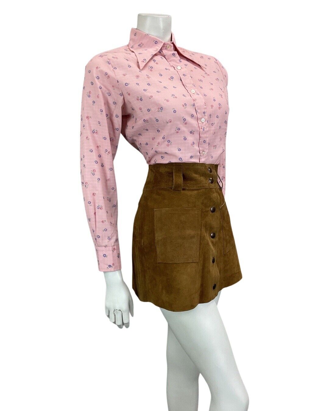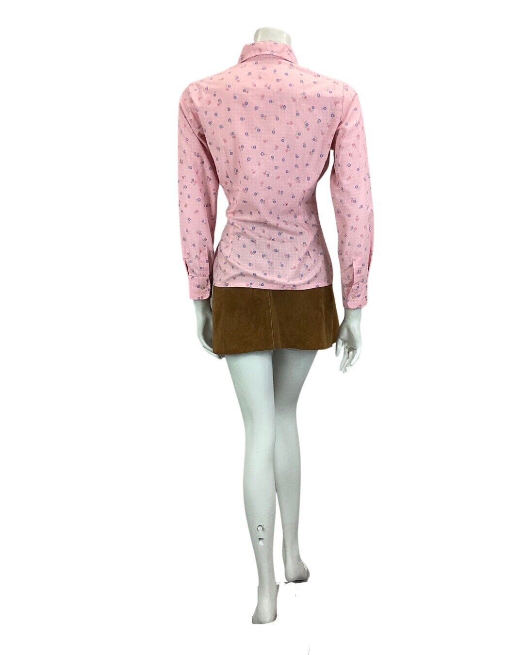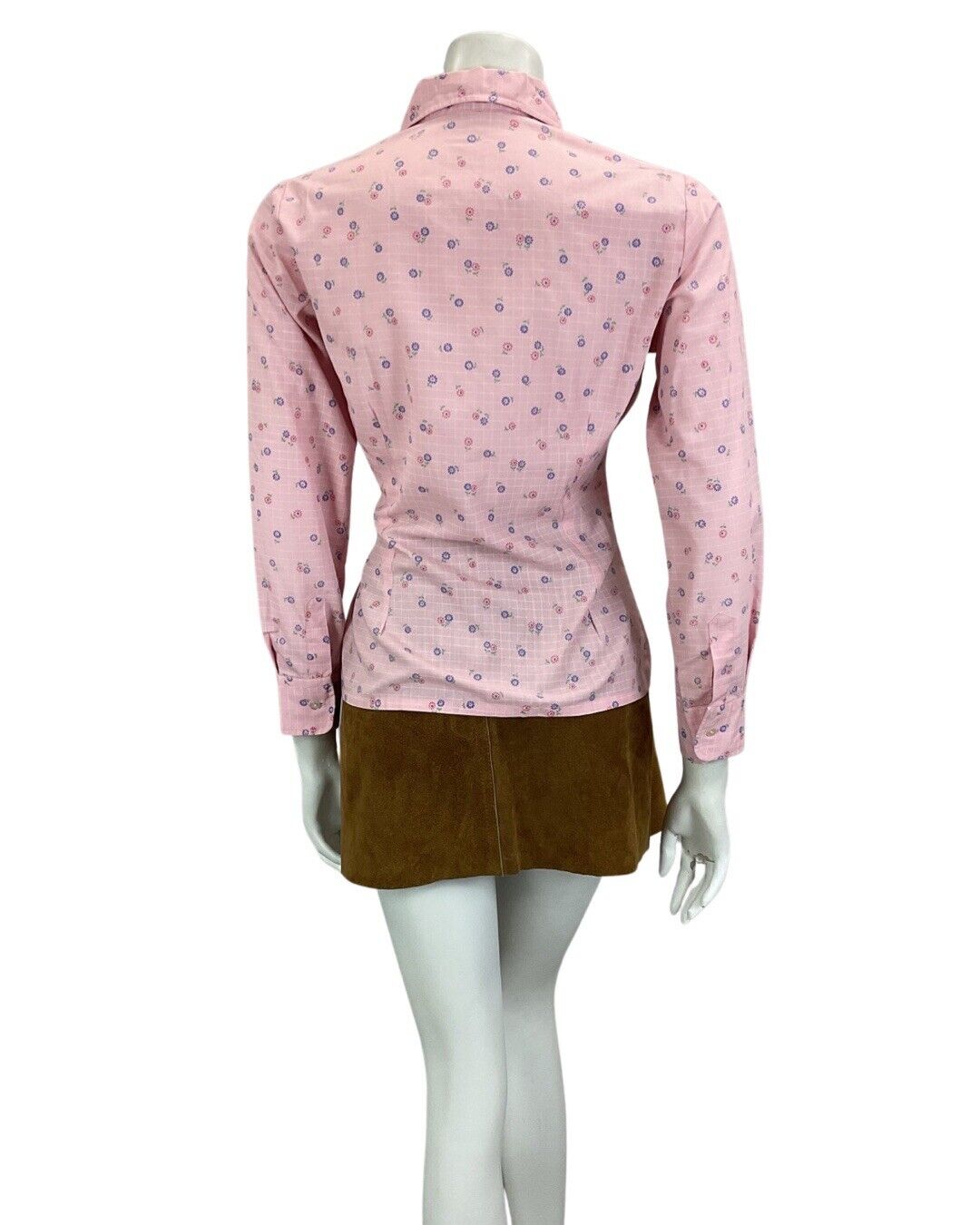 VINTAGE 60s 70s PINK BLUE RED FLORAL DAISY PRINT DAGGAR COLLAR SHIRT 12