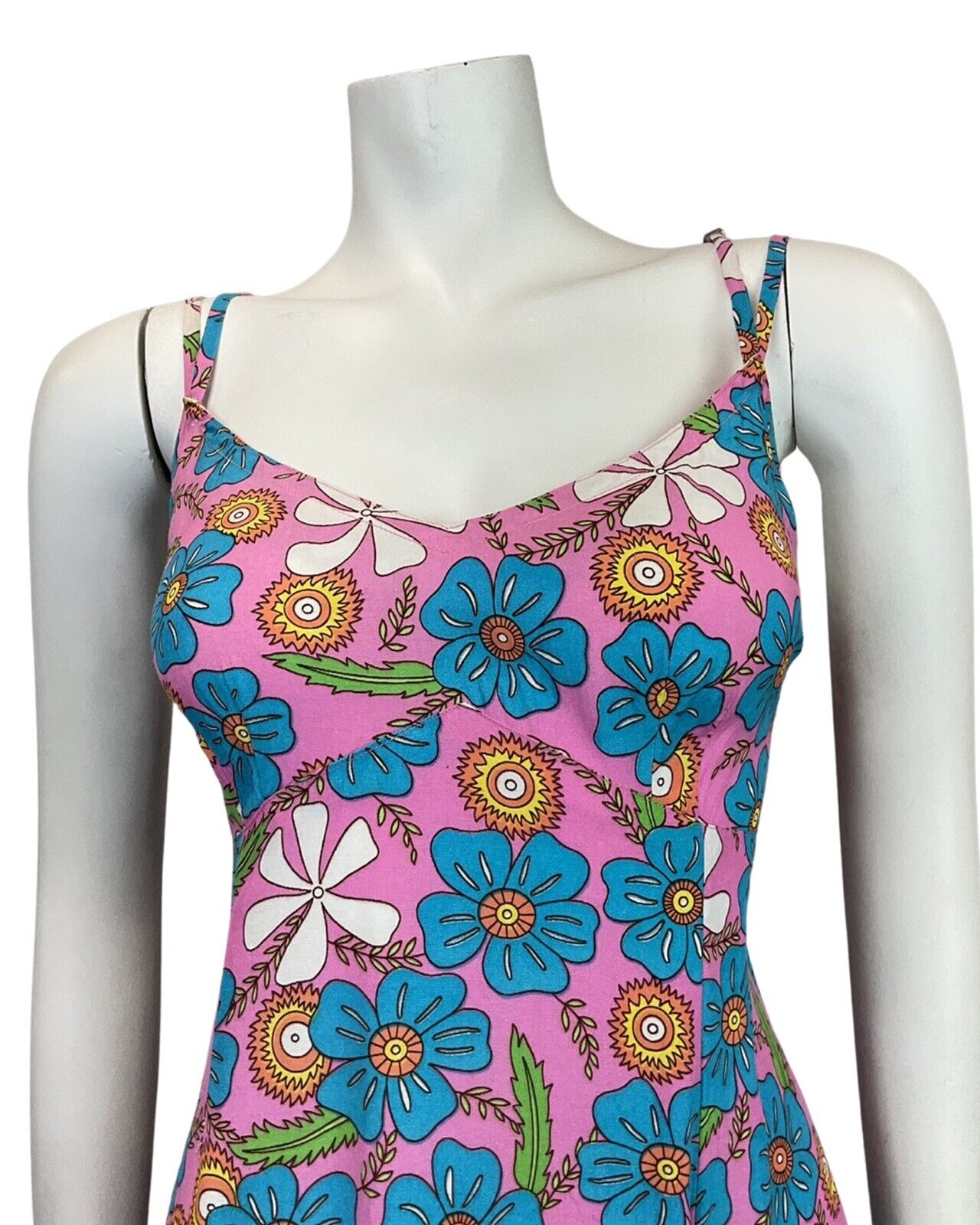 VINTAGE 60s 70s PINK BLUE WHITE HAWAIIAN FLORAL STRAPPY SUN DRESS 12 14