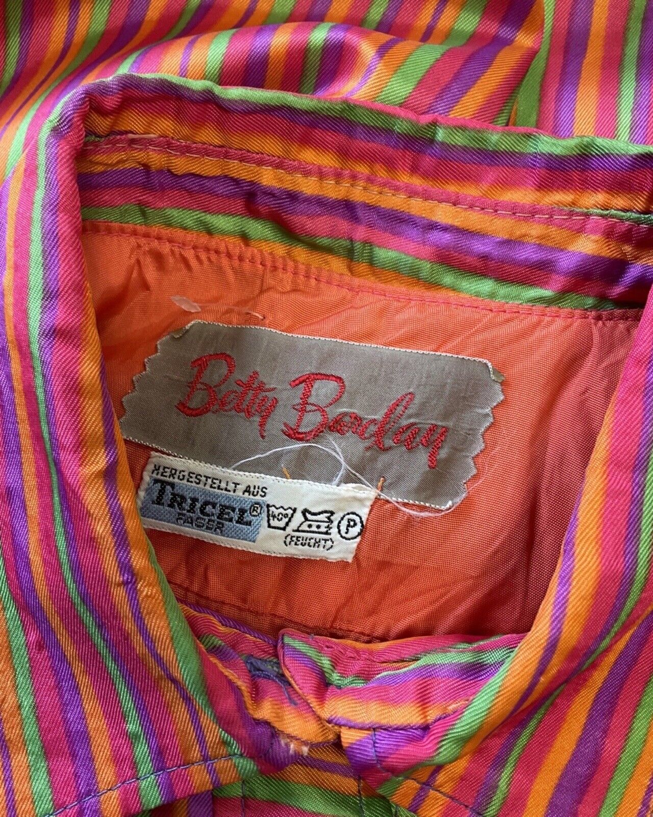 This is a gorgeous vintage Betty Barclay shirt dress made from a light-weight synthetic fabric with no stretch and a fitted pink lining throughout. This dress would best fit: 12 please check your measurements against the ones provided below, Bust: 38" Waist: 39" Hips: 39" Length: 36.5" PLEASE NOTE: This garment has been measured flat and doubled for bust (armpit to armpit), waist and hip measurements, we measure the length down the back of the dress, measurements may differ slightly due to dress styles and fabrics. We ignore any existing size labels as vintage brands differed so much. Items shown on our mannequin may be clipped to fit. This garment is true vintage so please be aware there may be some signs of wear as expected from a garment of this age. We do not list stains to area likes linings that are hidden or things that can barely be seen without close inspection. These can include pin holes, small marks, light piling. We hand pick our items to make sure they are in great condition and fully wearable and we reject anything of poor condition. The majority of our items are 40-70 years old. If you think we've missed something significant please get in touch, we are only human and we lose transaction fees on returns so we don't skip things on purpose. CHECK OUT OUR OTHER ITEMS, WE LIST EVERY WEEK! |
