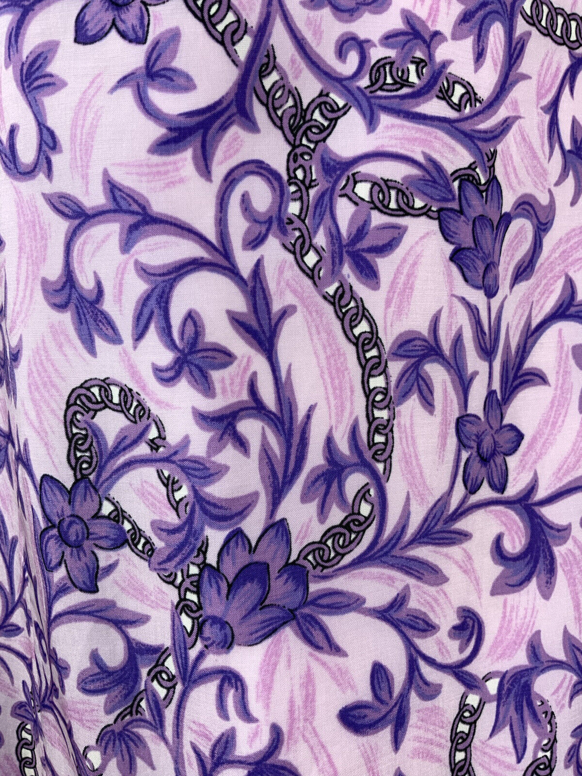 VINTAGE 60s 70s PINK PURPLE BLACK ACANTHUS FLORAL CHAIN WING COLLAR DRESS 14