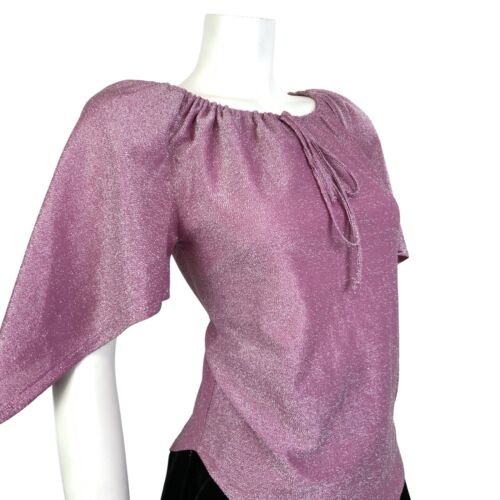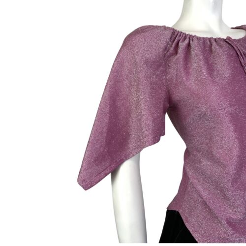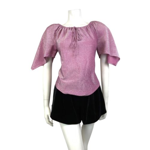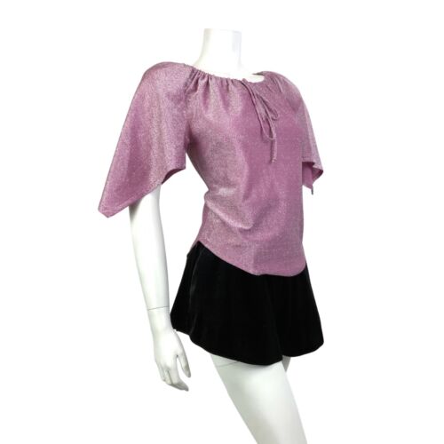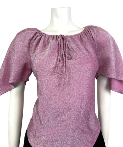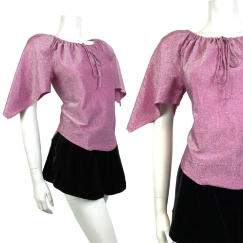 VINTAGE 60s 70s PINK SILVER LUREX HANDKERCHIEF SLEEVE DISCO PARTY TOP 10 12