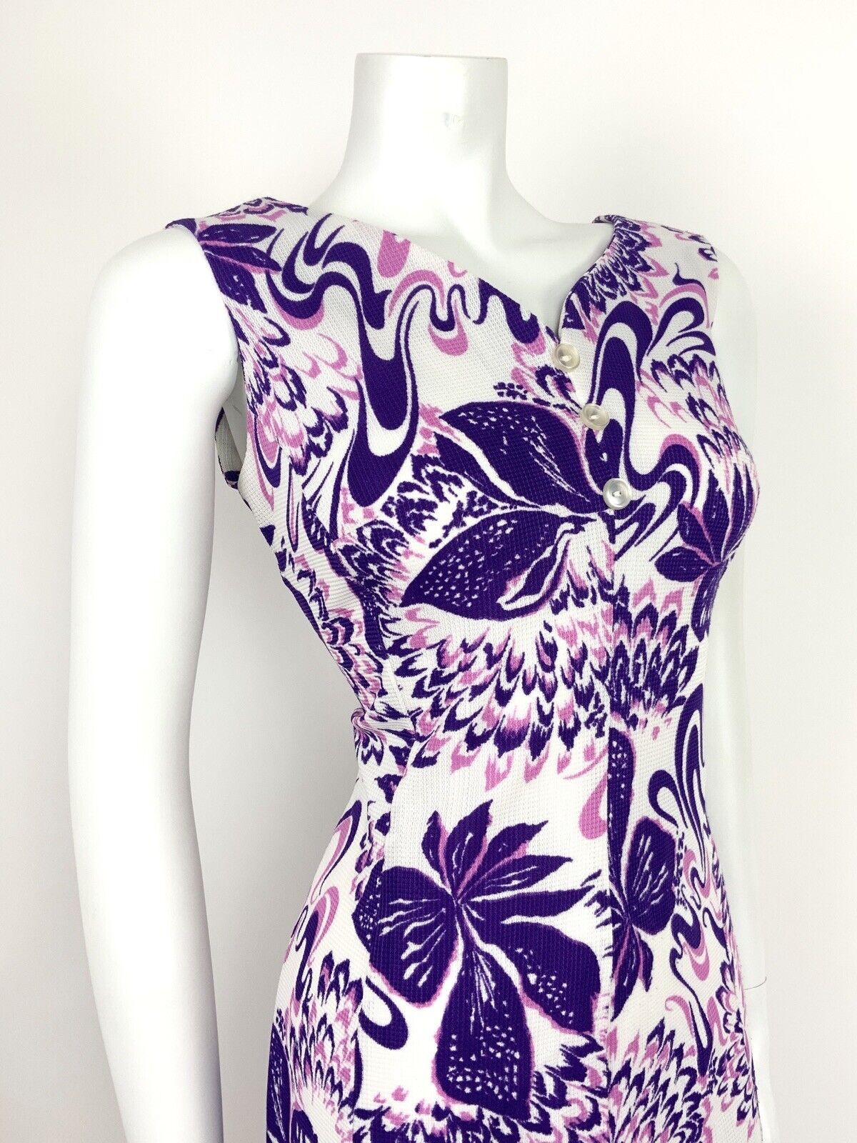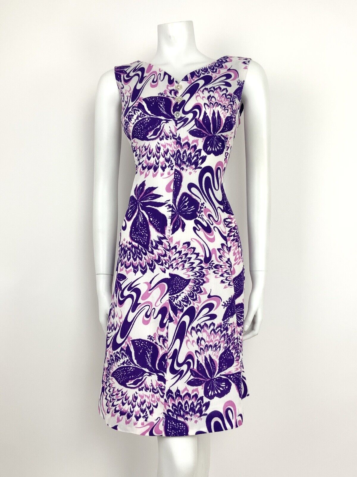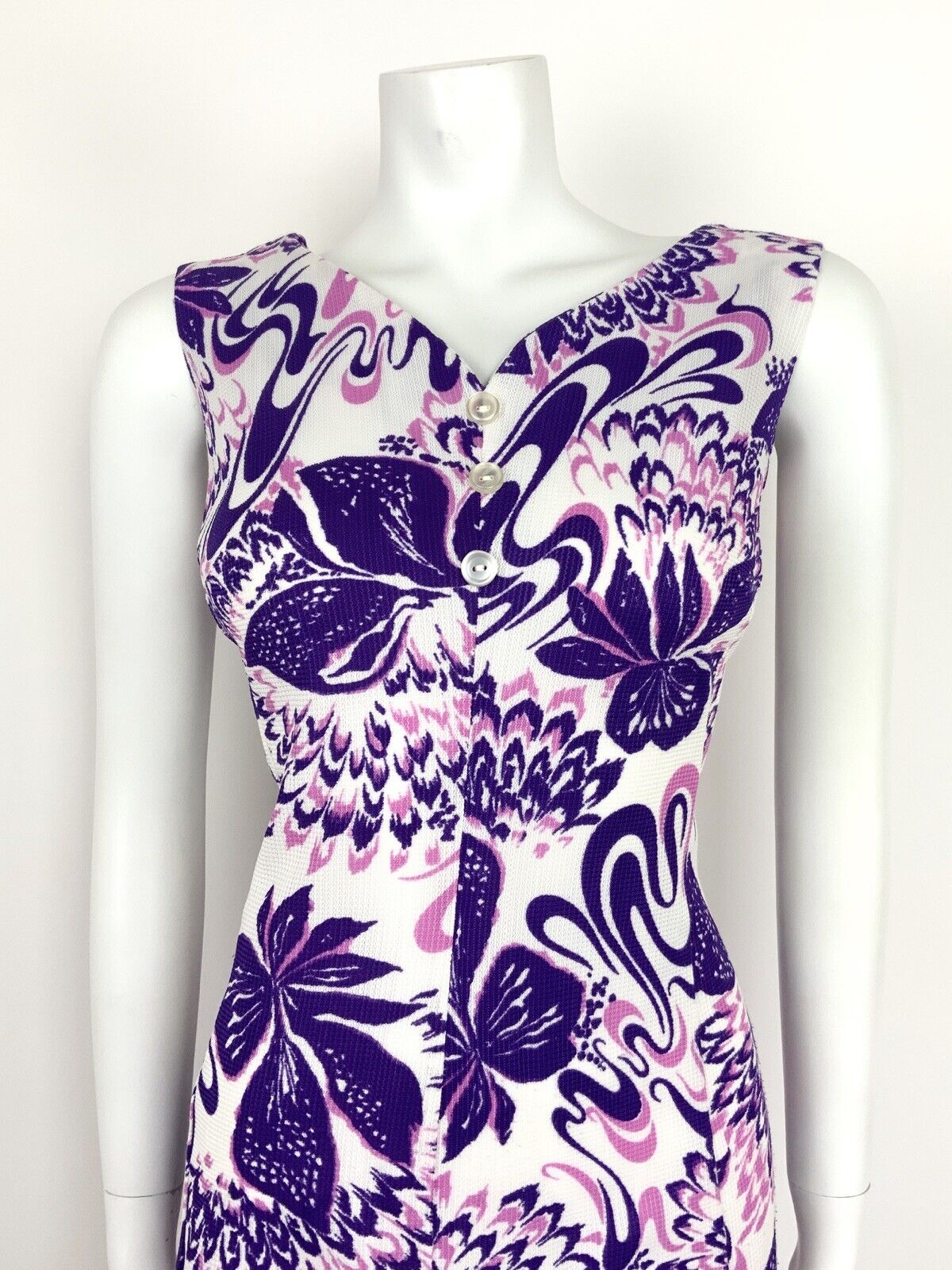 VINTAGE 60s 70s PSYCHEDELIC FLORAL PURPLE PINK WHITE SWEETHEART SUMMER DRESS 16