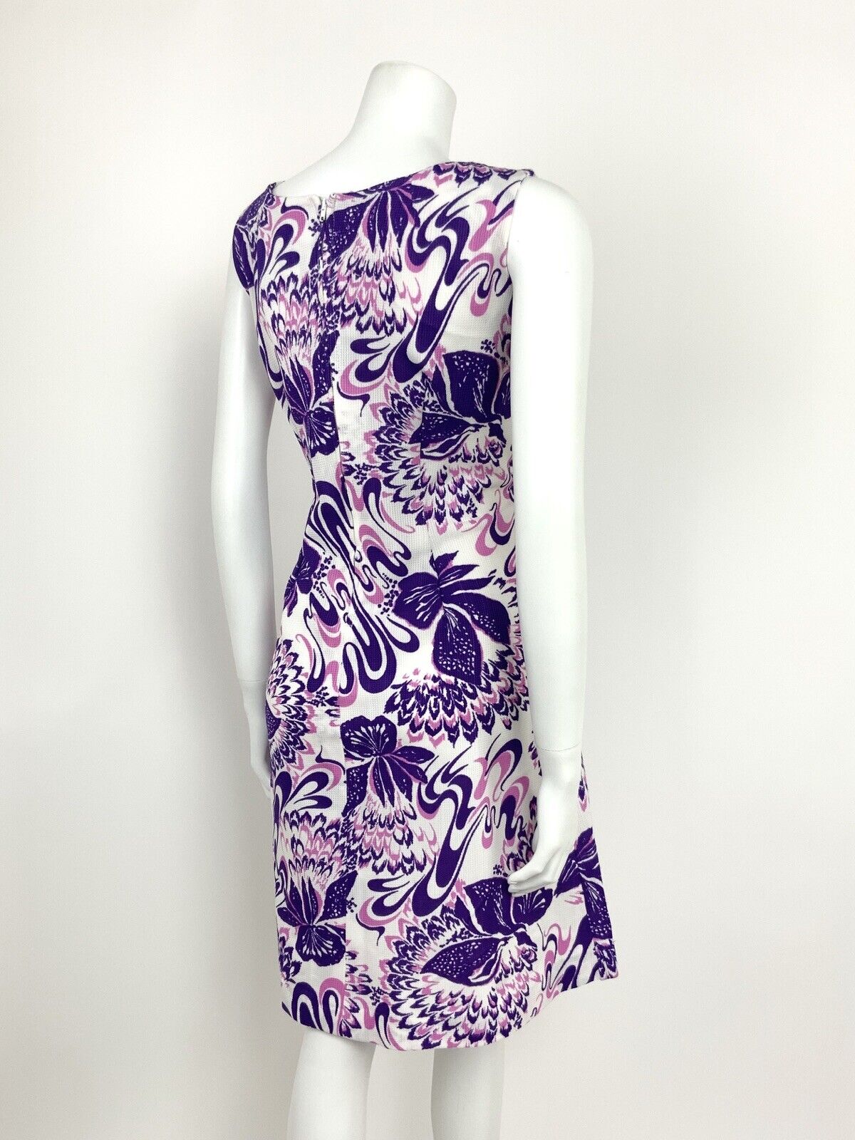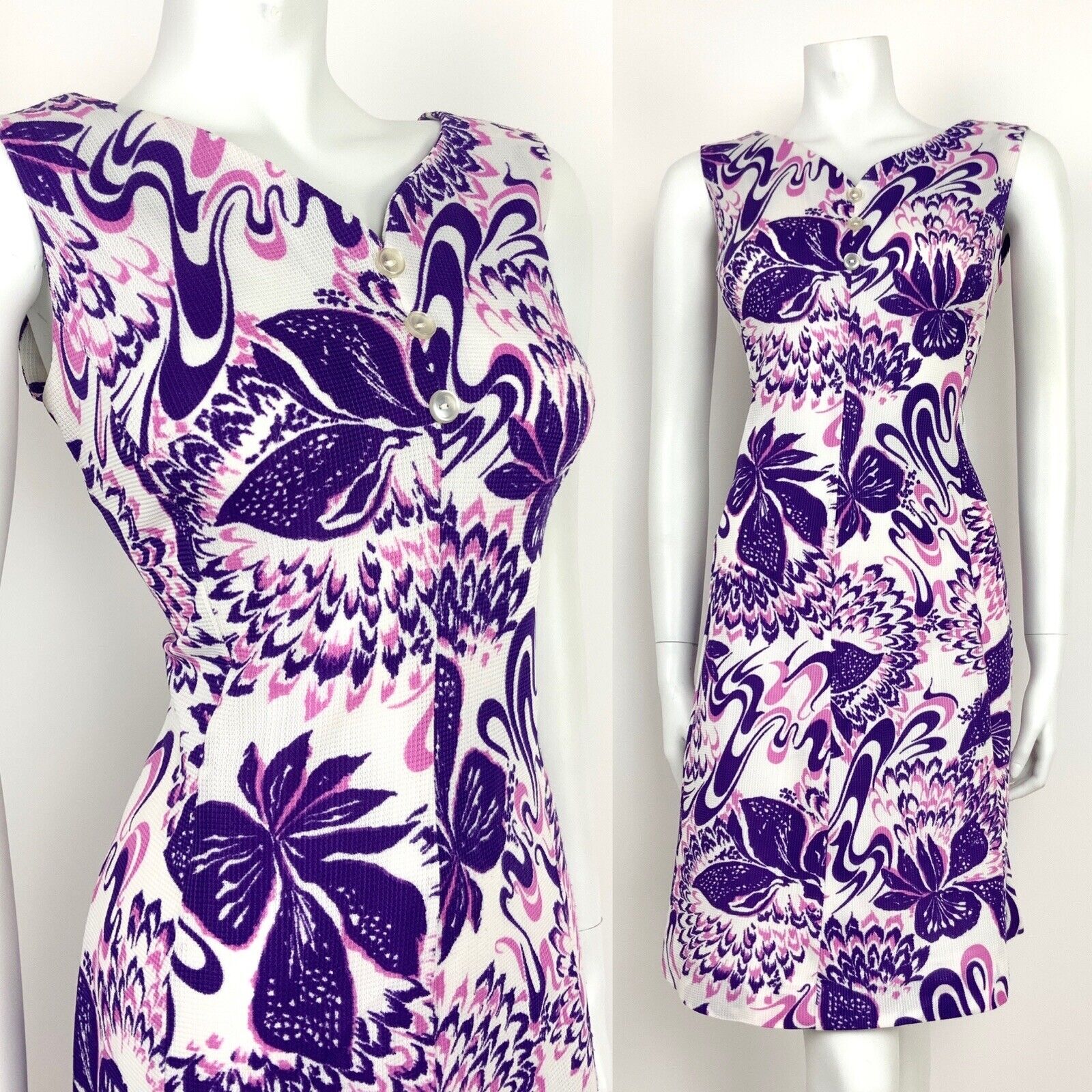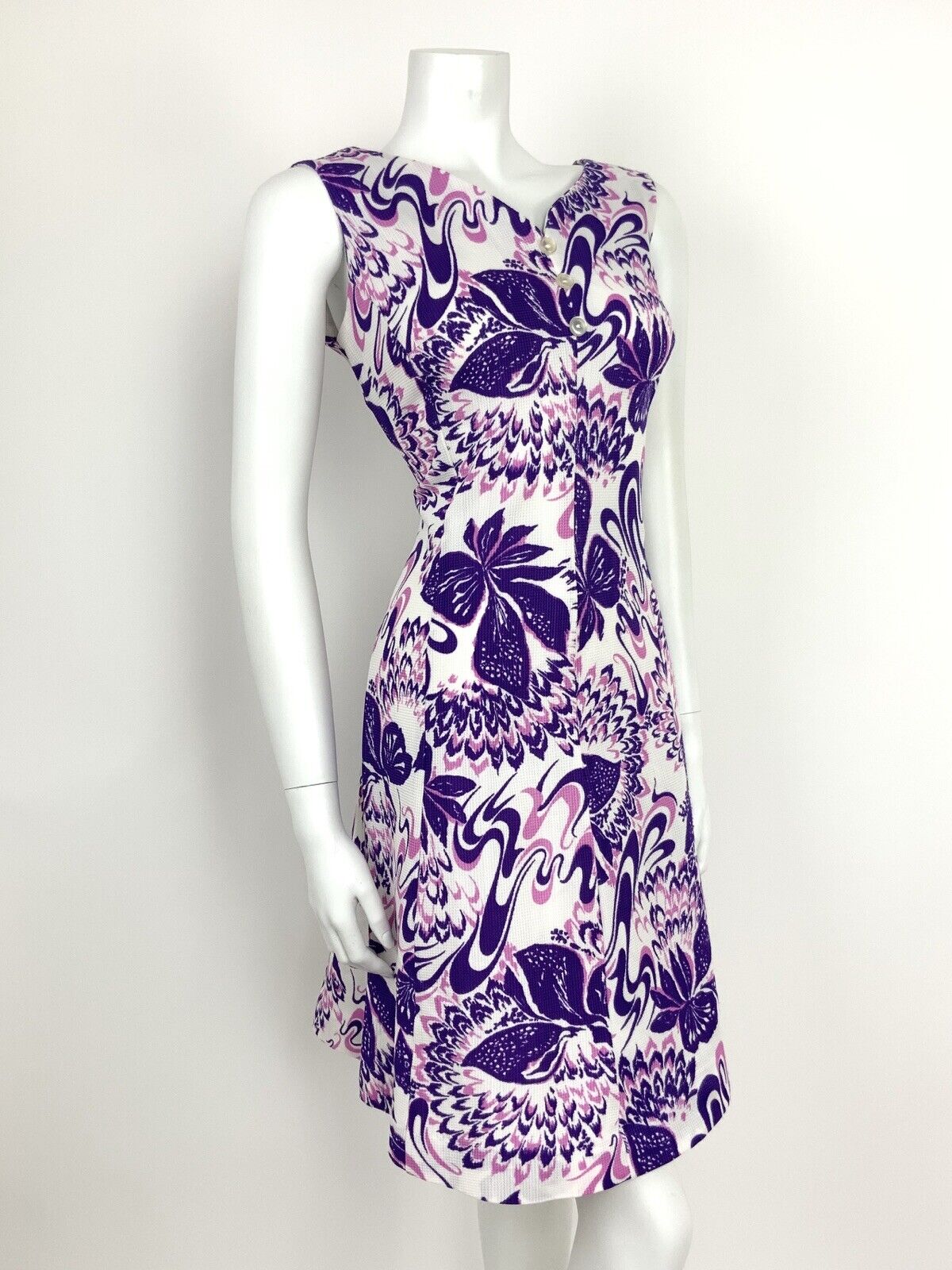 VINTAGE 60s 70s PSYCHEDELIC FLORAL PURPLE PINK WHITE SWEETHEART SUMMER DRESS 16
