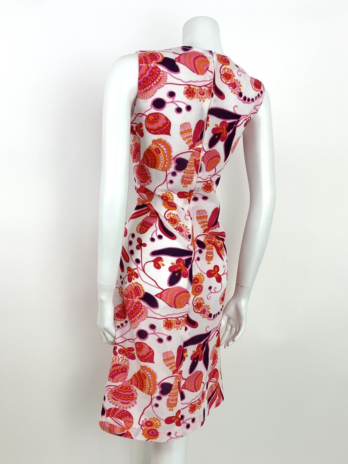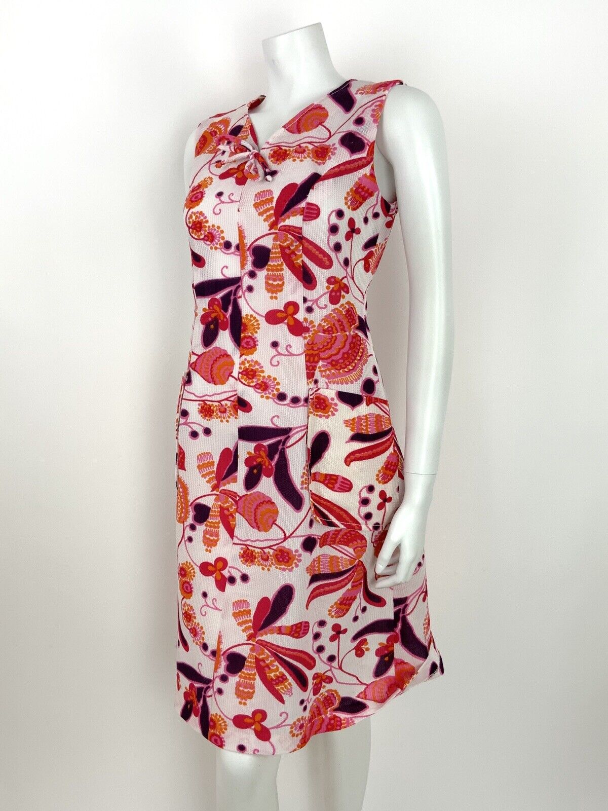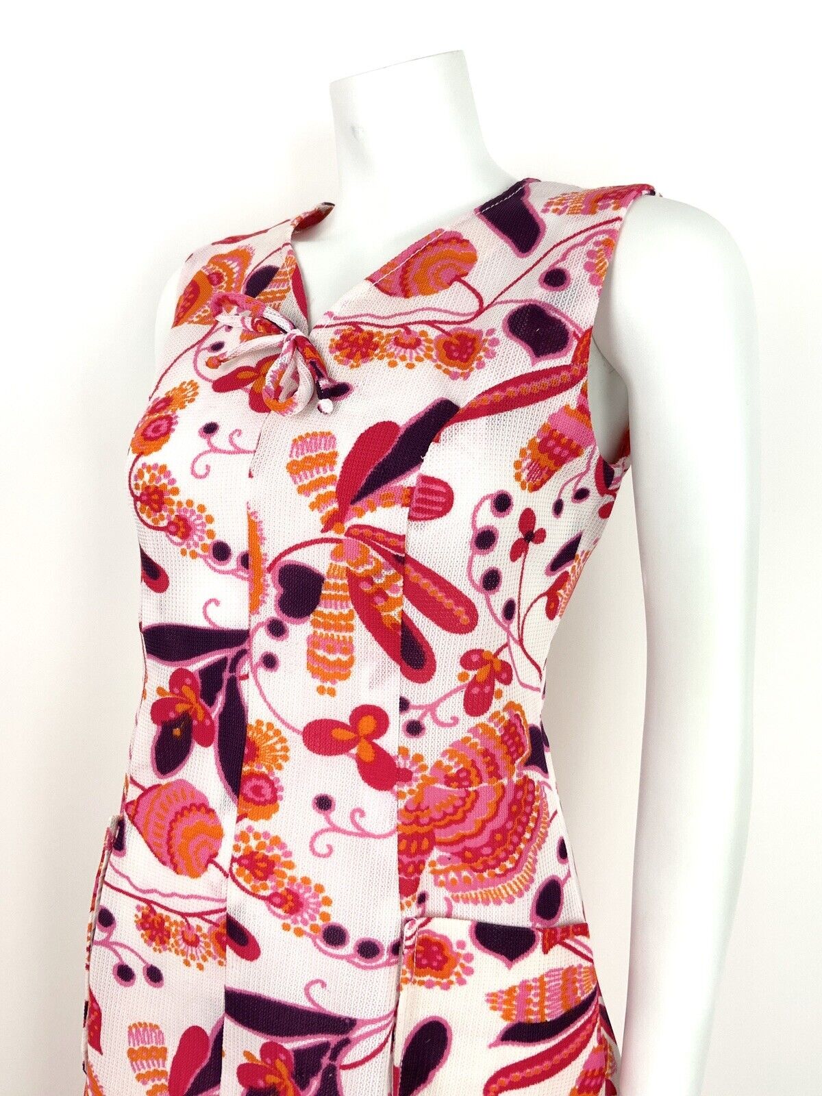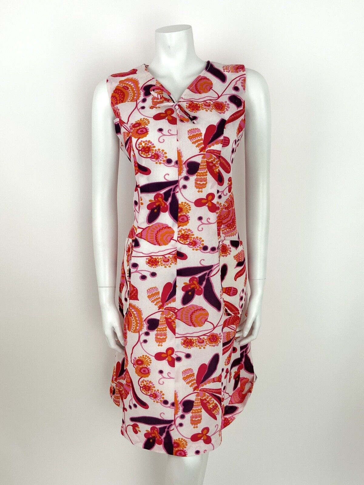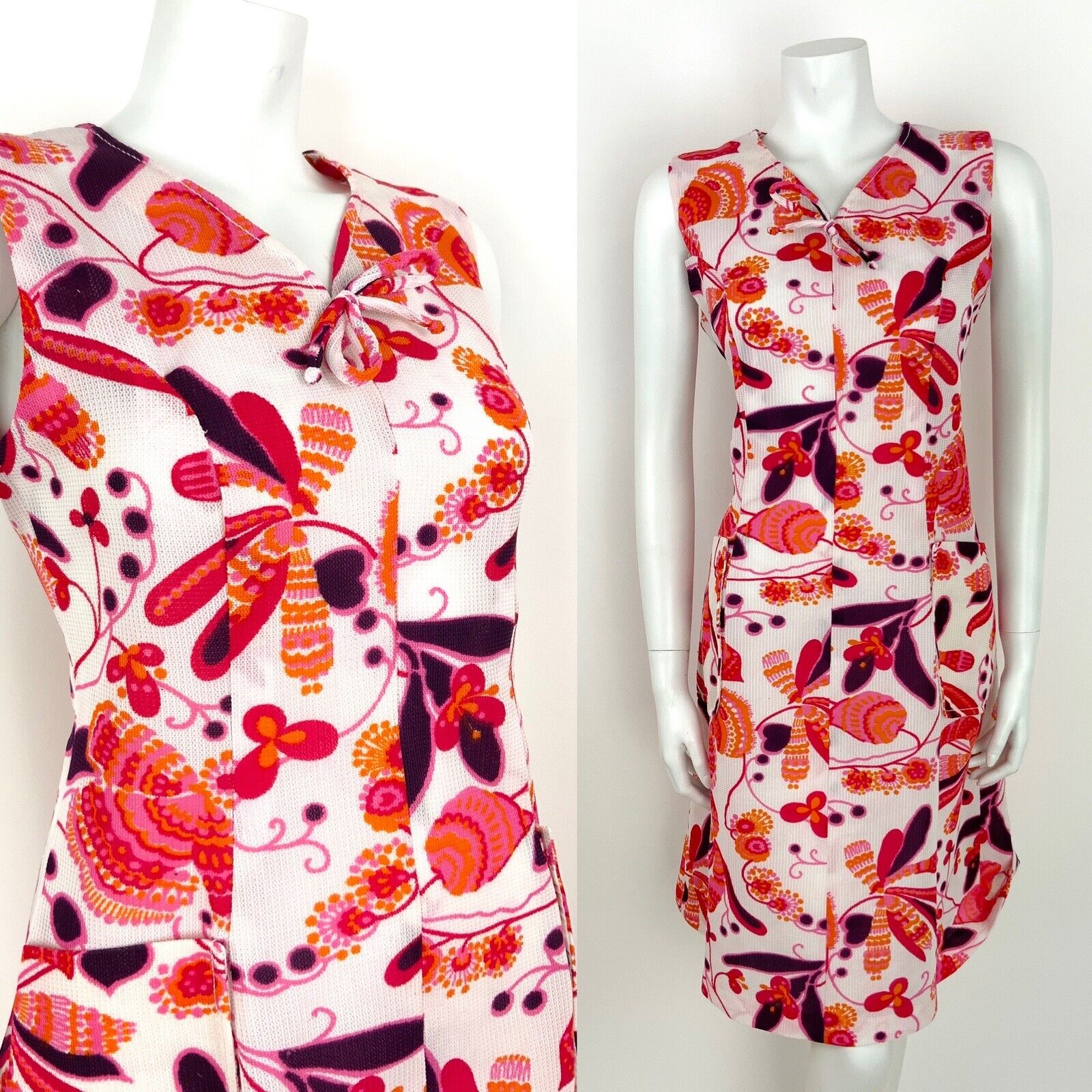 VINTAGE 60s 70s PSYCHEDELIC FLORAL SUMMER DRESS WHITE RED PINK PURPLE 10 12