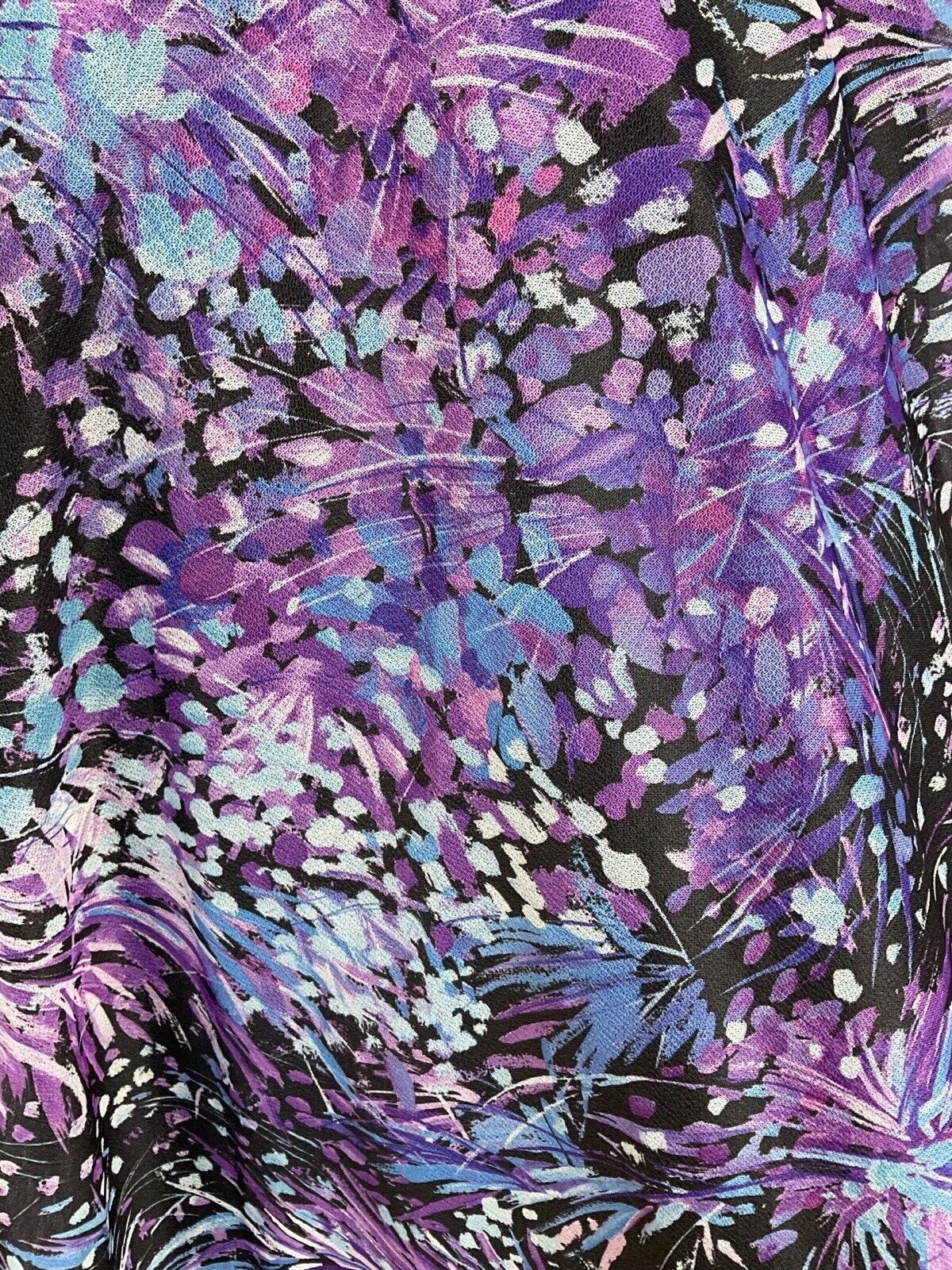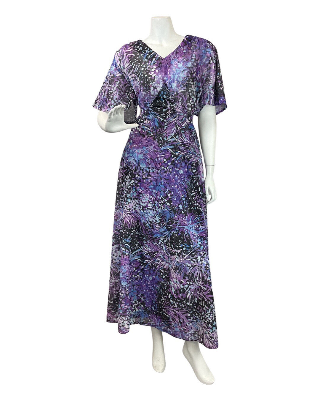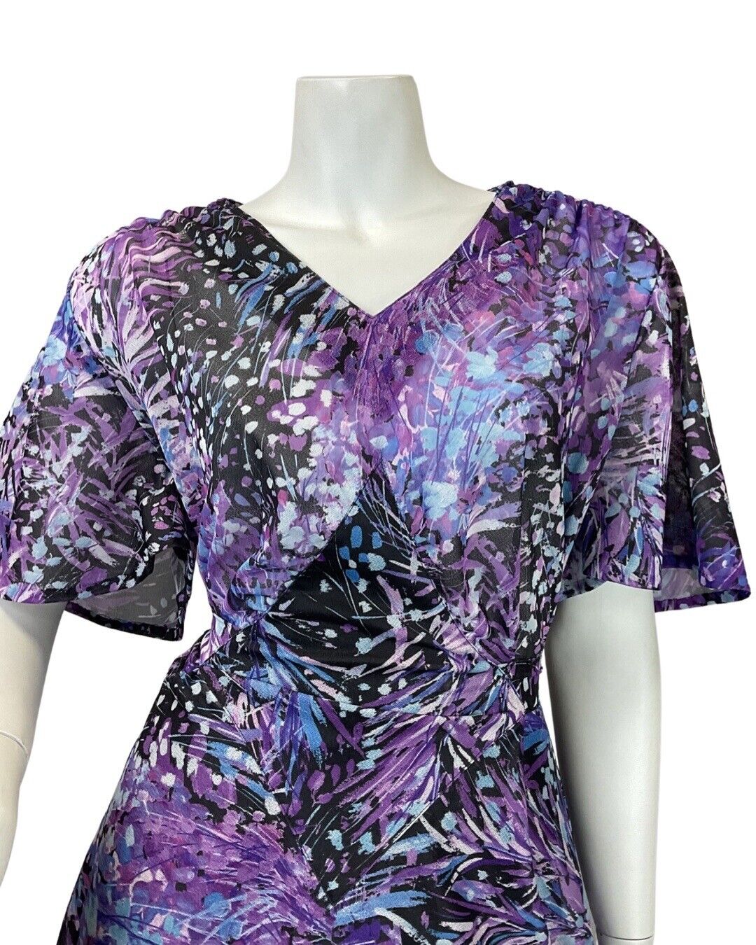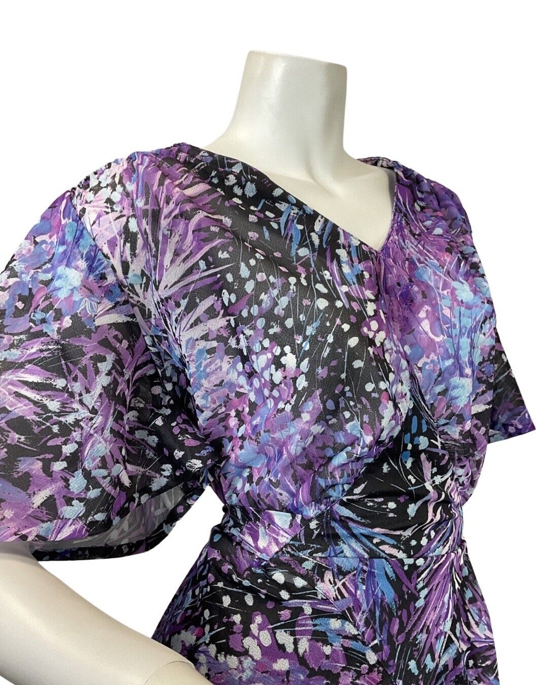 VINTAGE 60s 70s PURPLE BLUE BLACK PSYCHEDELIC FLORAL SHEER MAXI DRESS 18 20